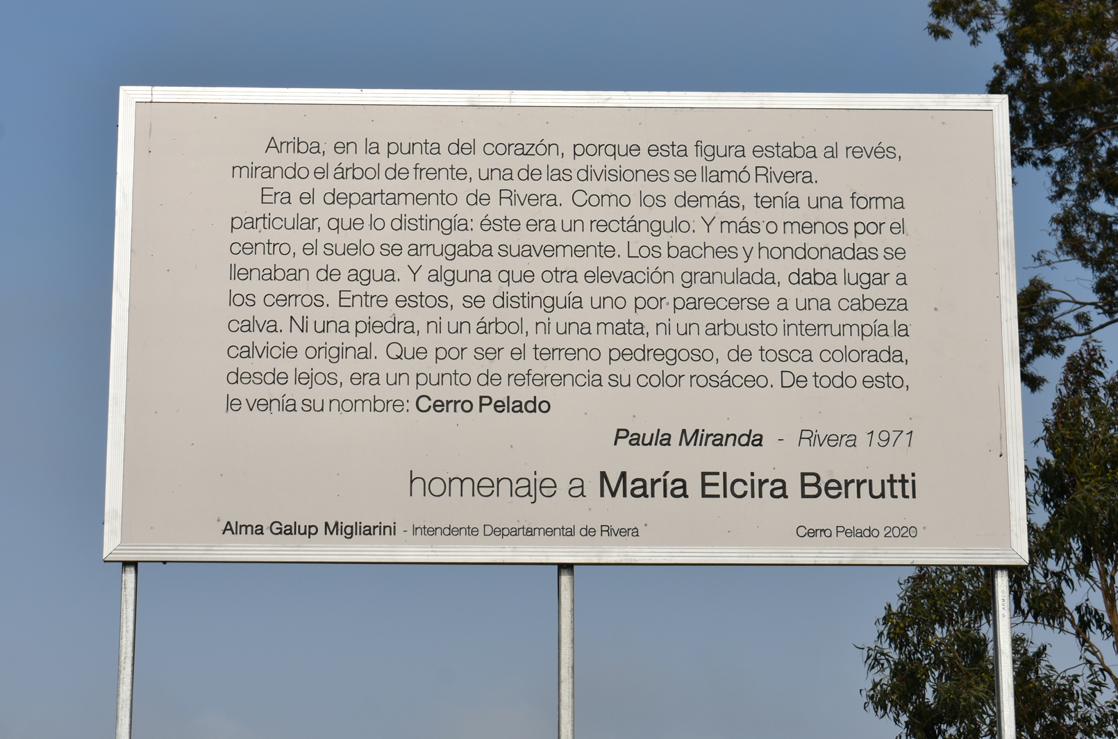 En la mañana del viernes 07 de agosto, en la comunidad de Cerro Pelado, la intendente departamental de Rivera, Alma Galup Migliarini, dejó oficialmente inaugurada las obras de la Plazoleta, donde se encuentra el eucalipto, un árbol llamado Efraín, que hace parte del libro “Cerro Pelado, solo para chicos” editado en el año 1971, de la docente María Elcira Berrutti (1923 – 2010), bajo el seudónimo de Paula Miranda.