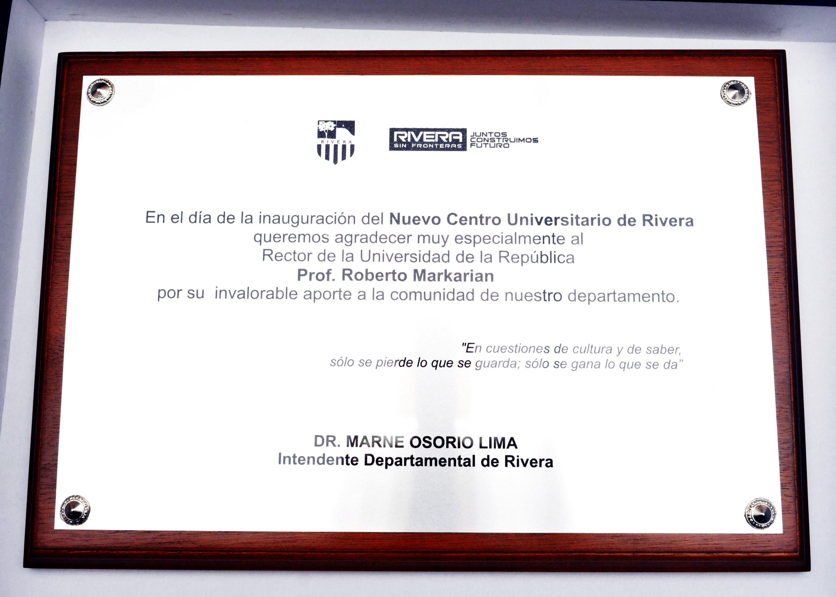 A la inauguración acudieron autoridades nacionales y departamentales, entre ellos, el Rector de la Universidad, Dr Roberto Markarián y el Intendente de Rivera, Dr. Marne Osorio, quienes se encargaron de cortar la cinta de inauguración y de descubrir la placa recordatoria.