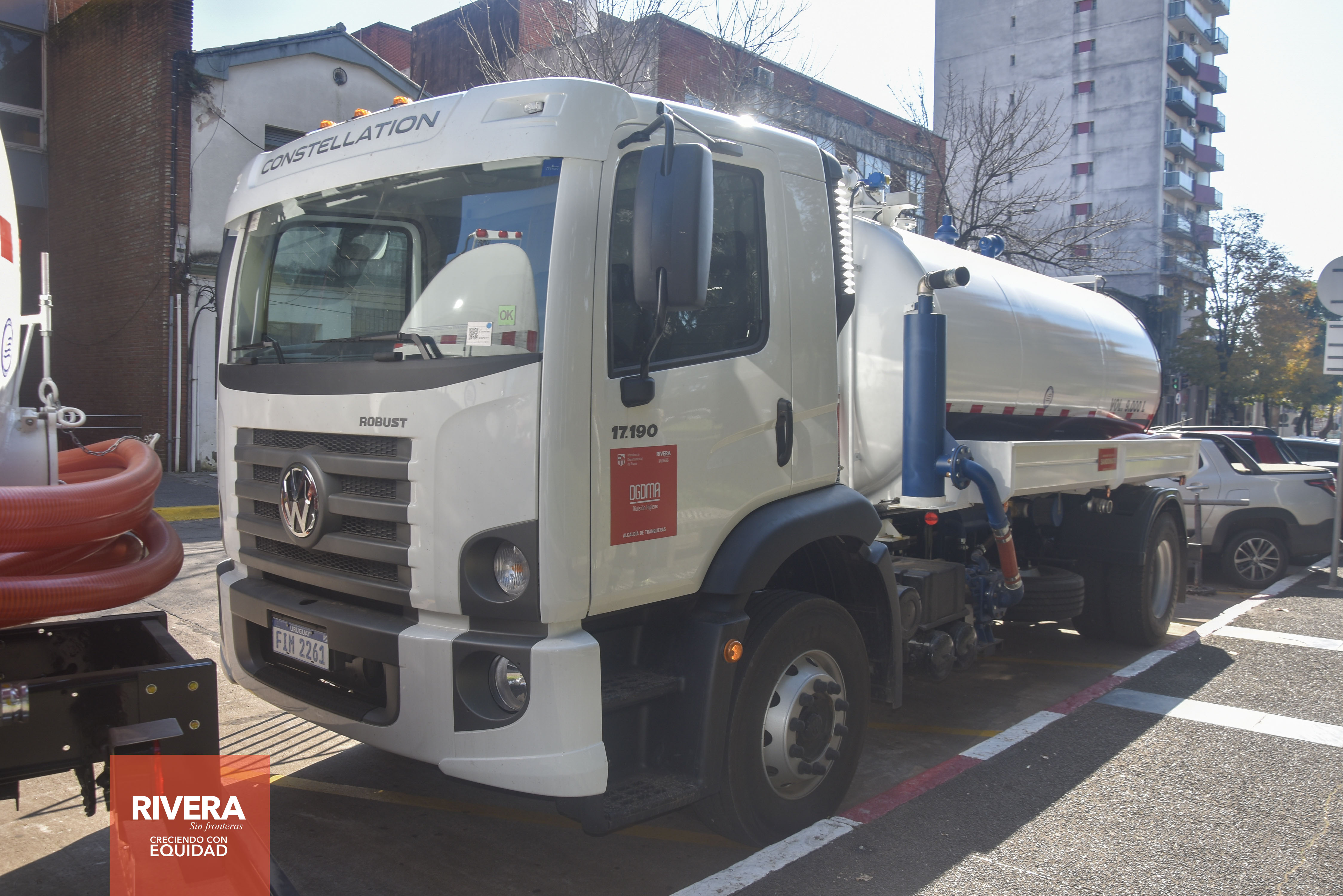 Sobre el medio día de hoy, el intendente de Rivera, Cr. Richard Sander Darín, acompañado por el sec. Gral. De la IDR, Arq. José Mazzoni Gollardía, hizo la entrega oficial de 2 vehículos 0 km, camión con barométrica capacidad para 9000 litros, que serán utilizados por las alcaldías de Tranqueras y de Minas de Corrales respectivamente.