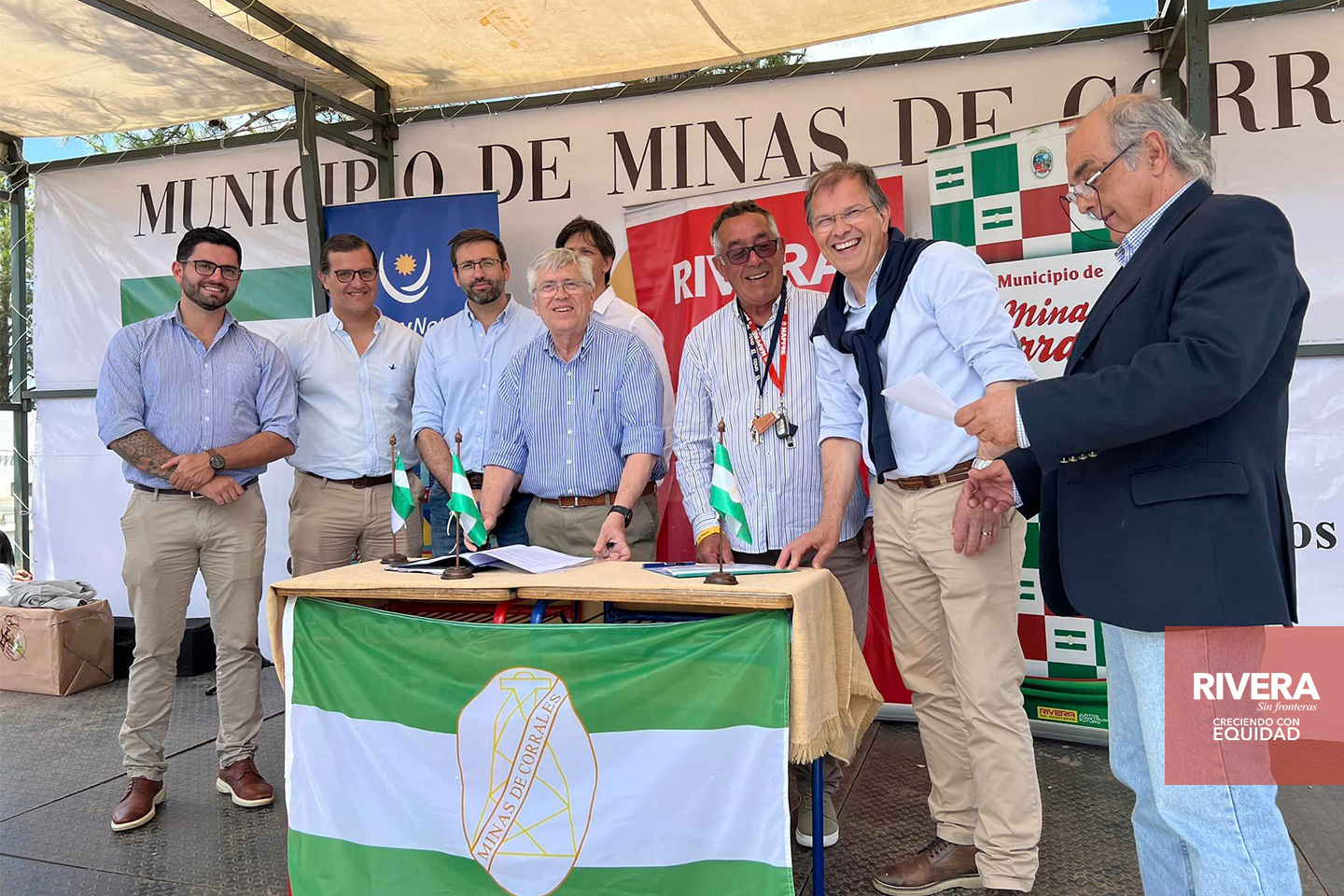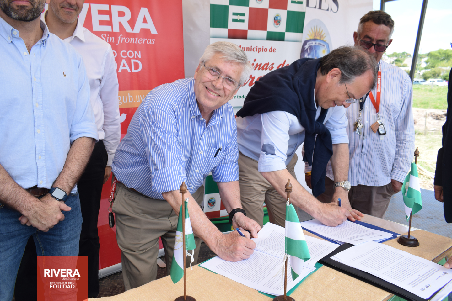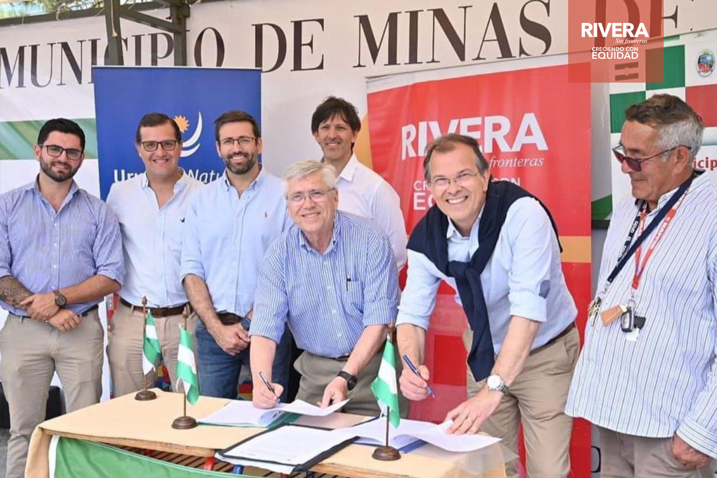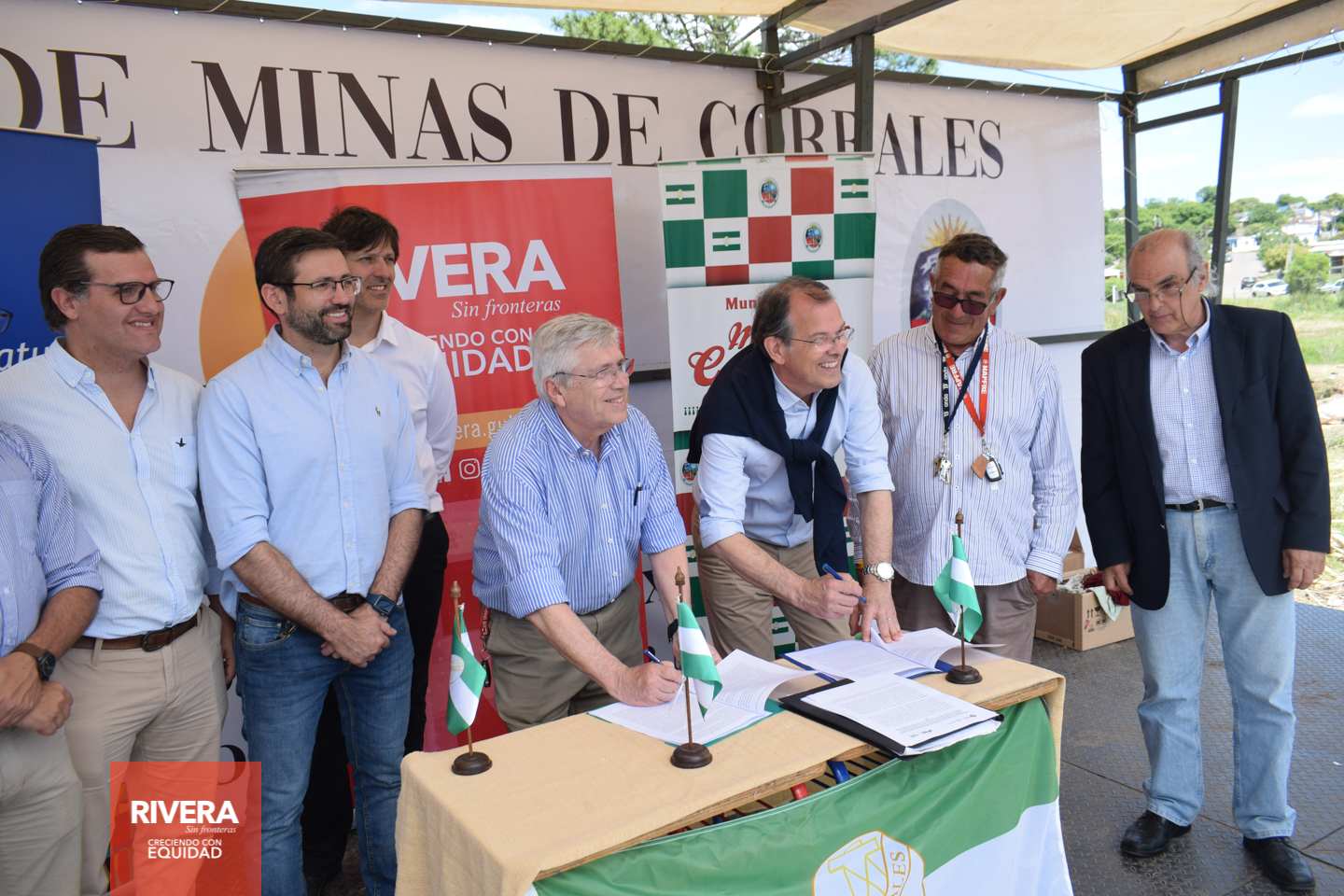 El convenio se firmó en Minas de Corrales con la presencia del Sr. Ministro de Turismo, el Sr. Intendente de Rivera y el Sr. Alcalde de Minas de Corrales.