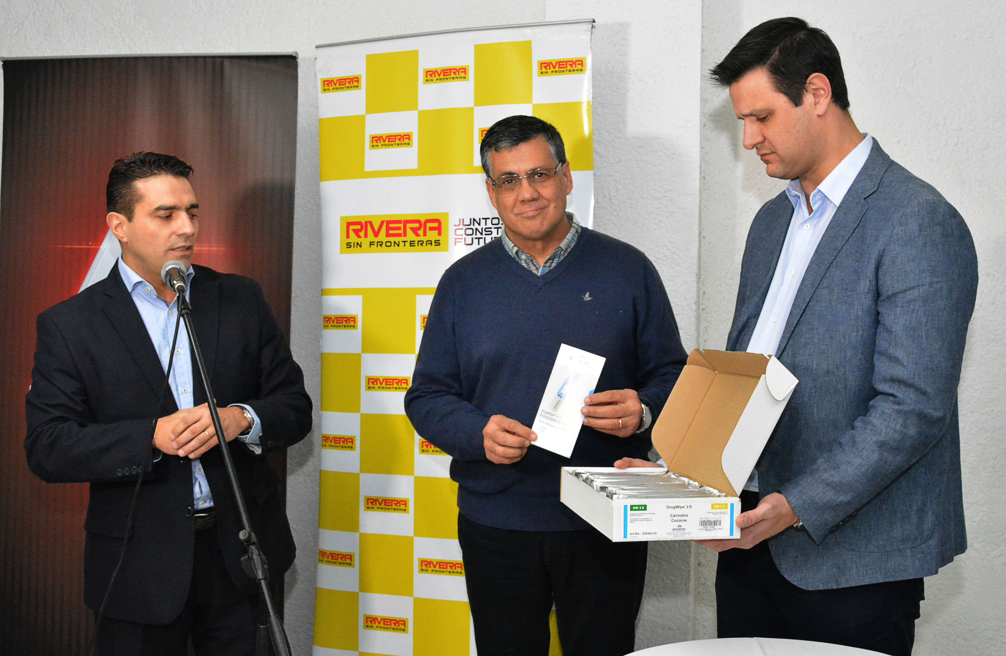 En la jornada de éste 17 de julio, el intendente departamental Dr. Marne Osorio, recibió por parte de la empresa Porto Seguros – que trabajará juntamente a Automotora Horizonte-, una importante cantidad de kits con reactivos para detectar drogas psicoactivas, en personas que estén conduciendo en esa situación por el departamento.