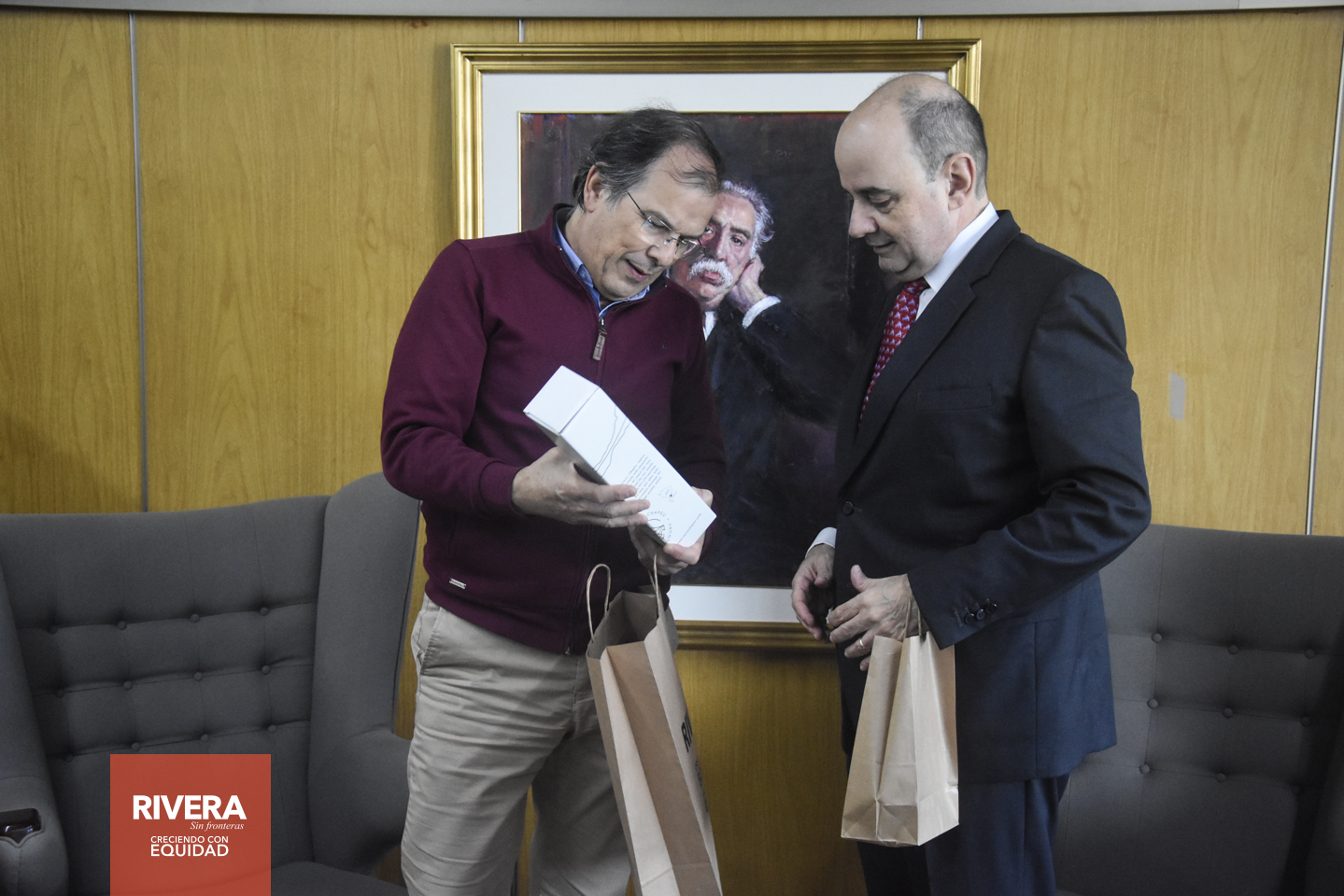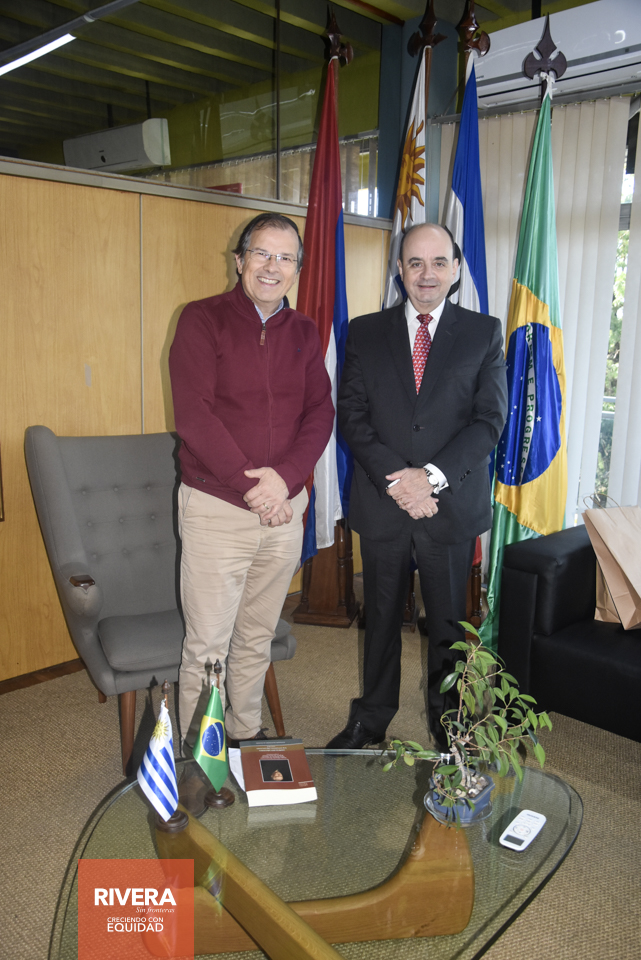 En horas de la mañana el Sr. Intendente Departamental de Rivera, Cr. Richard Sander Darín; recibió en su despacho al Sr. Embajador de Brasil, Marcos Leal Raposo Lopes, quien vino acompañado por la Sra. Cónsul de Brasil en Rivera, Ana Lélia y el vice Cónsul, Carlos de Olivera.