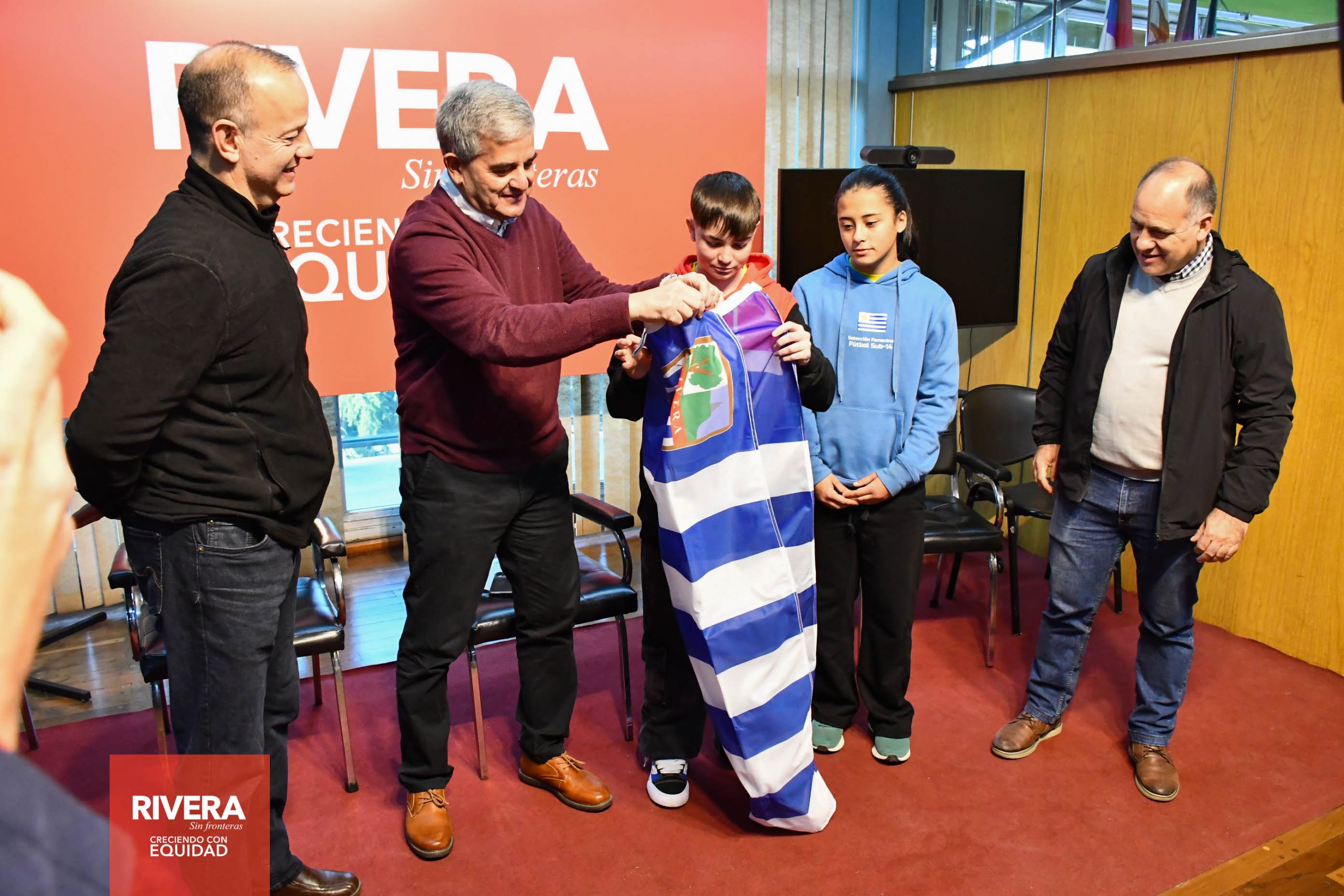 “Es un gusto para el gobierno departamental entregar la bandera departamental a las tres atletas que nos van a representar con la selección de Uruguay en la categoría Sub-14, en un torneo internacional en los Estados Unidos.