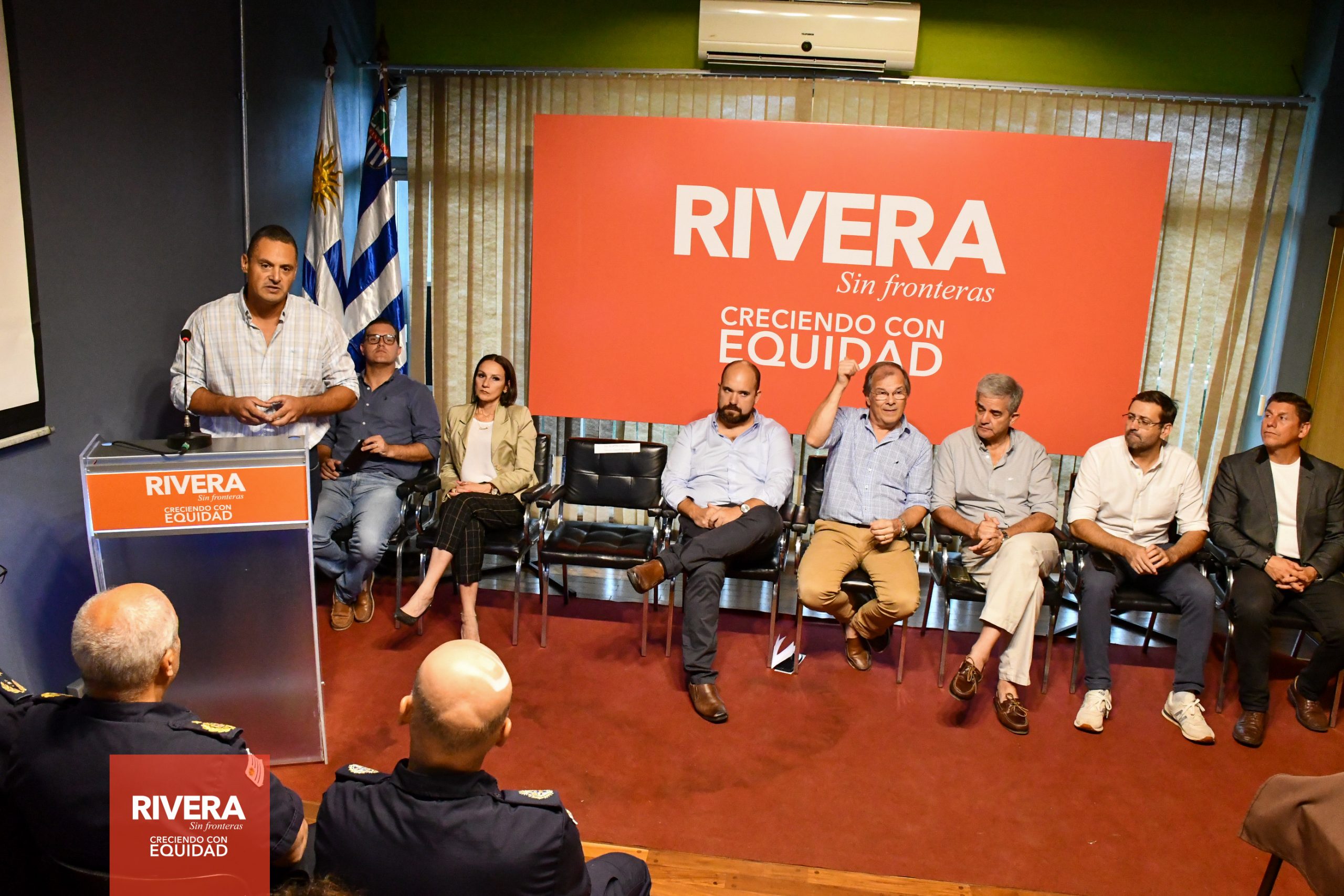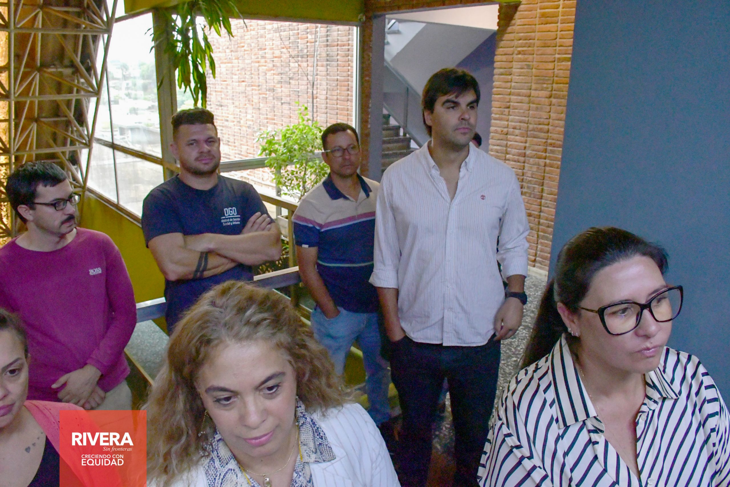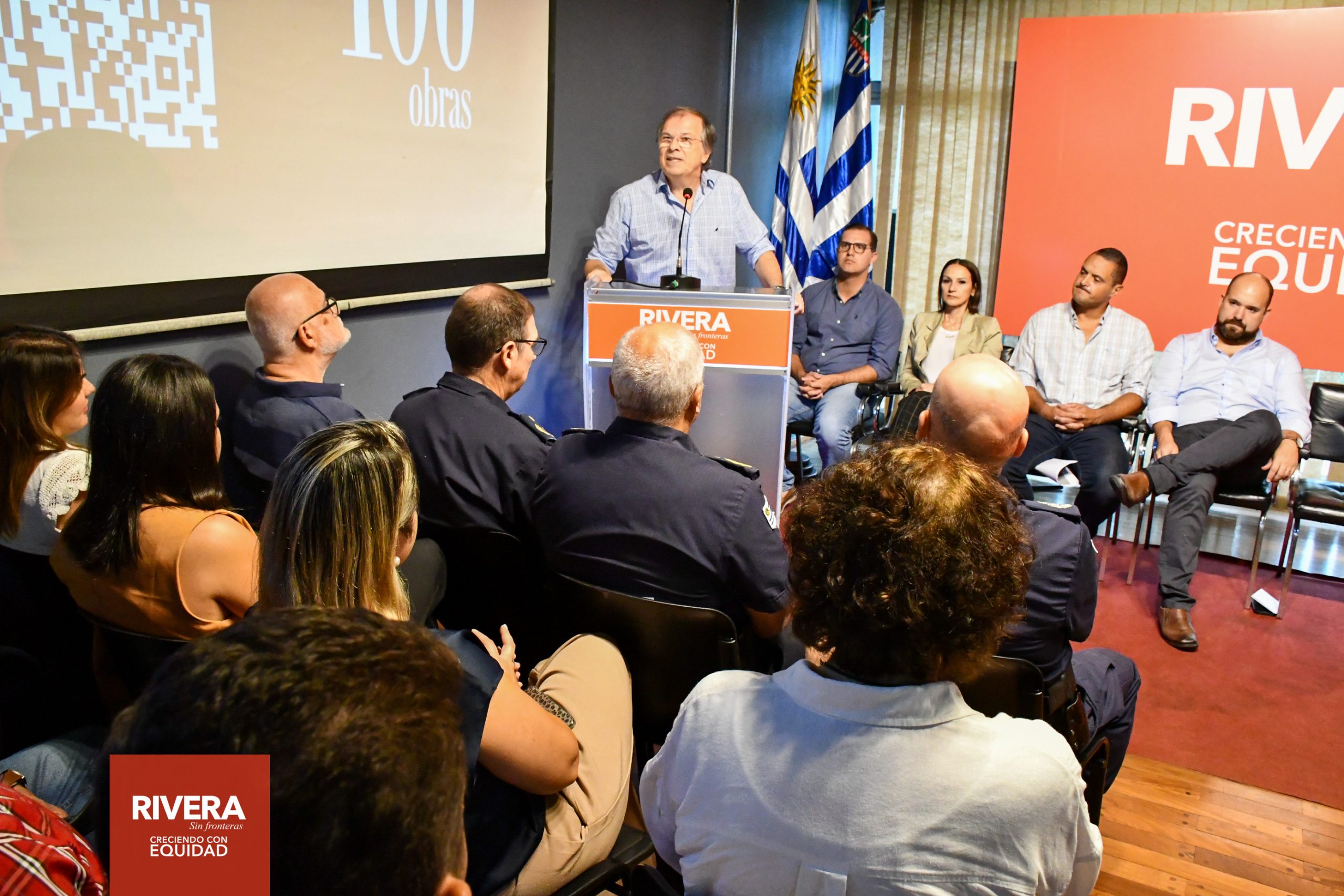 En la sala de conferencias del tercer piso de la Intendencia Departamental de Rivera se realizó una conferencia de prensa encabezada por el intendente Cr. Richard Sander Darín, acompañado por directores generales, el jefe de Policía, el presidente de la Junta Departamental, alcaldes, concejales y funcionarios municipales.