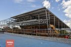 Seguidamente la comitiva se dirigió al Polideportivo Don Bosco donde la estructura de acero y hormigón va tomando forma y se puede apreciar desde las zonas altas de la ciudad. Con espacio para 1500 personas en las tribunas, el predio ofrece canchas con medidas oficiales para la práctica de 5 deportes, vestuarios con aire acondicionado y demás comodidades para los usuarios.
