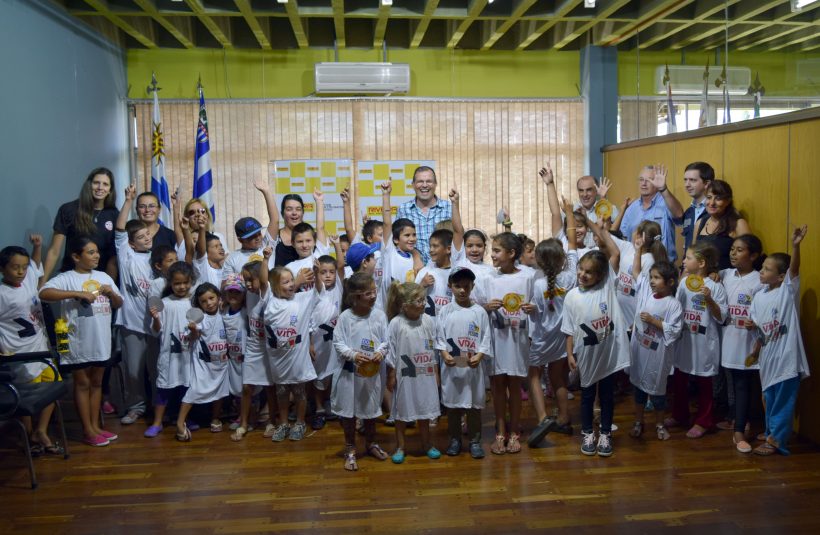 Aprovechando la visita a la intendencia, integrantes del equipo de Educación Vial, entregaron a los niños, camisetas y adhesivos alusivos al uso de cinturón de seguridad, chalecos de seguridad, y el uso del celular en el tránsito, enmarcado en el Proyecto de las charlas educativas sobre tránsito
