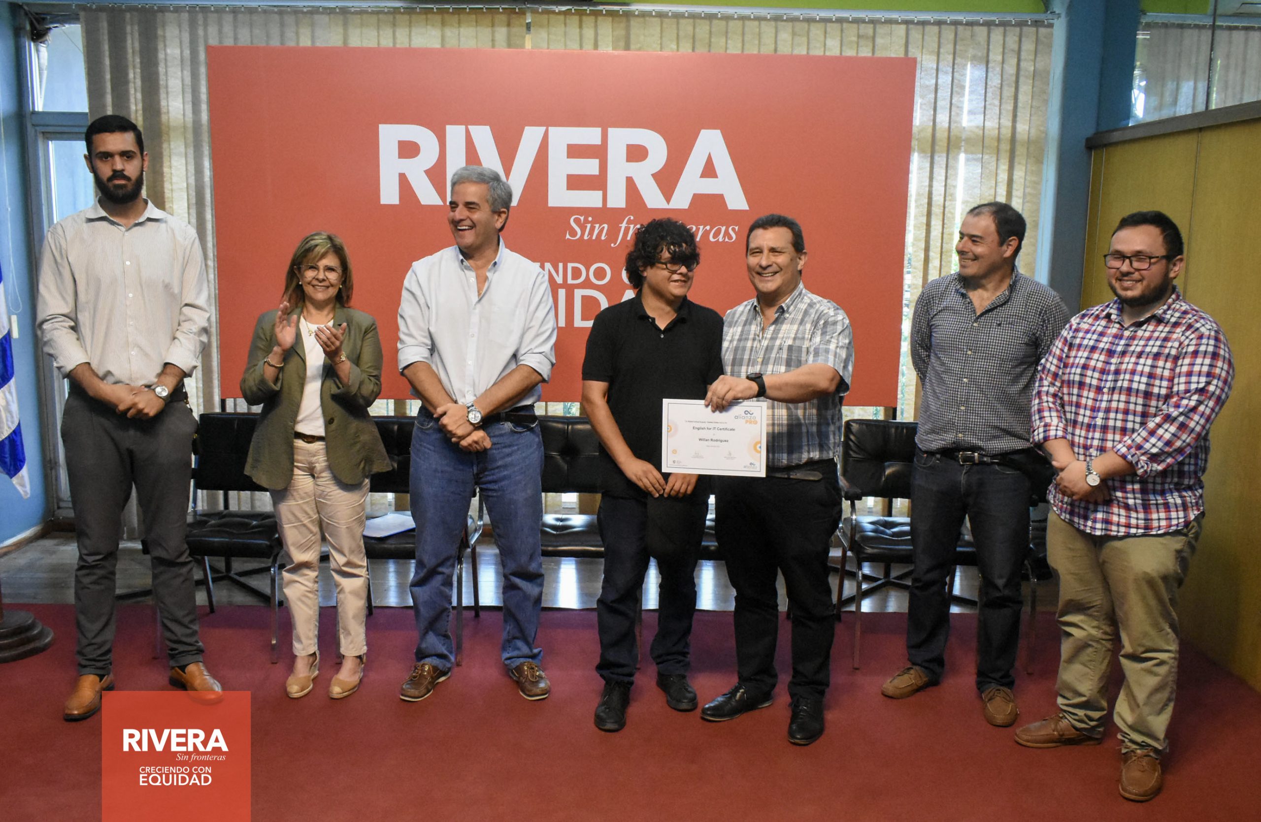 En la Sala de Conferencias de la Intendencia de Rivera se realizó el evento de entrega de certificados a jóvenes riverenses que han culminado con éxito un Curso Intensivo de Inglés, implementado en colaboración con Alianza Rivera, institución de enseñanza de la lengua inglesa con muchos años en Rivera.