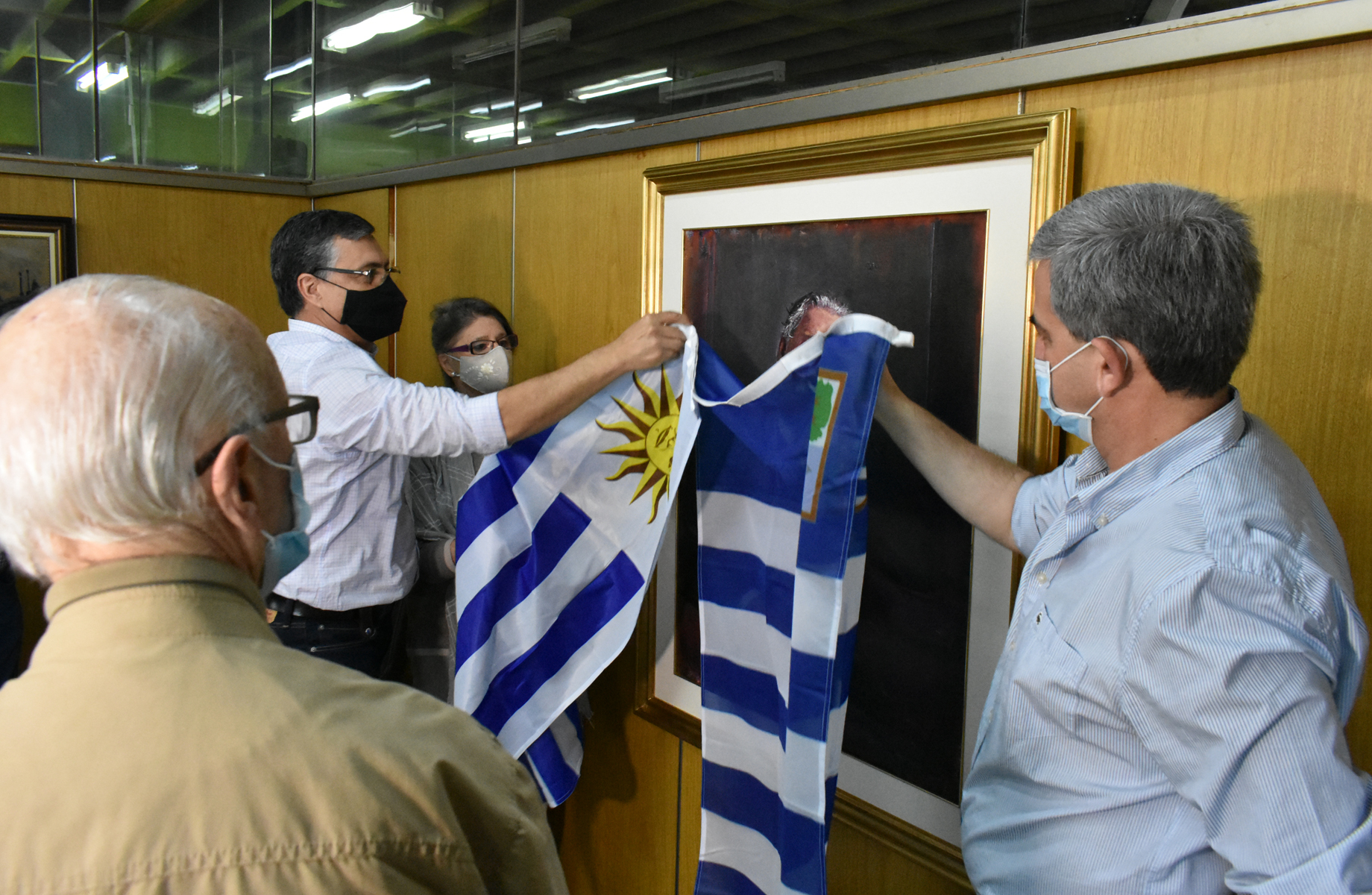 En el despacho de la señora intendente, se encontraba el cuadro cubierto con el pabellón nacional y la bandera de Rivera, en una ceremonia íntima con periodistas ofreció unas palabras al respecto, junto al secretario general de la IDR, Arq. José Mazzoni, el diputado Marne Osorio y el director del Museo de Artes Plásticas, Dr. Hugo Lagos, quien a su vez presentó el cuadro y habló de sus características.