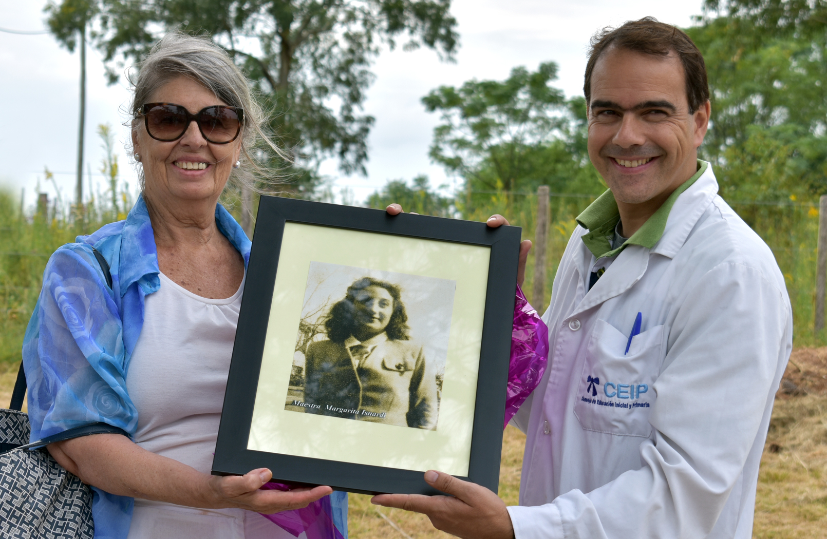 Recordaron a la Mtra. Margarita Isnardi, primera maestra de jardinera de Rivera, nacida en 1921 en Capón Alto, “le trajimos a la Escuela, al Mtro. y a la propia comunidad, un retrato con la foto de la Mtra. Margarita Isnardi, para que sea un referente mujer”.