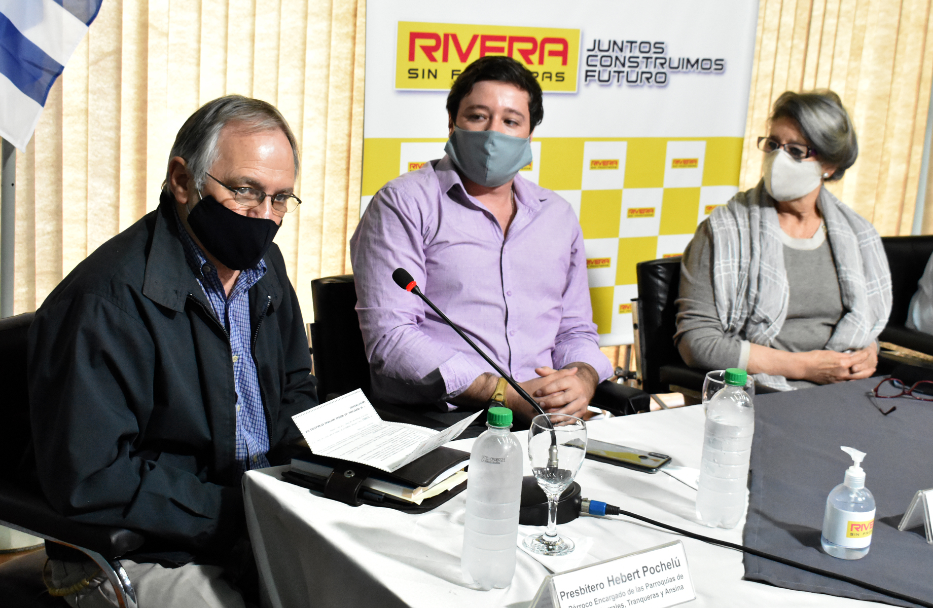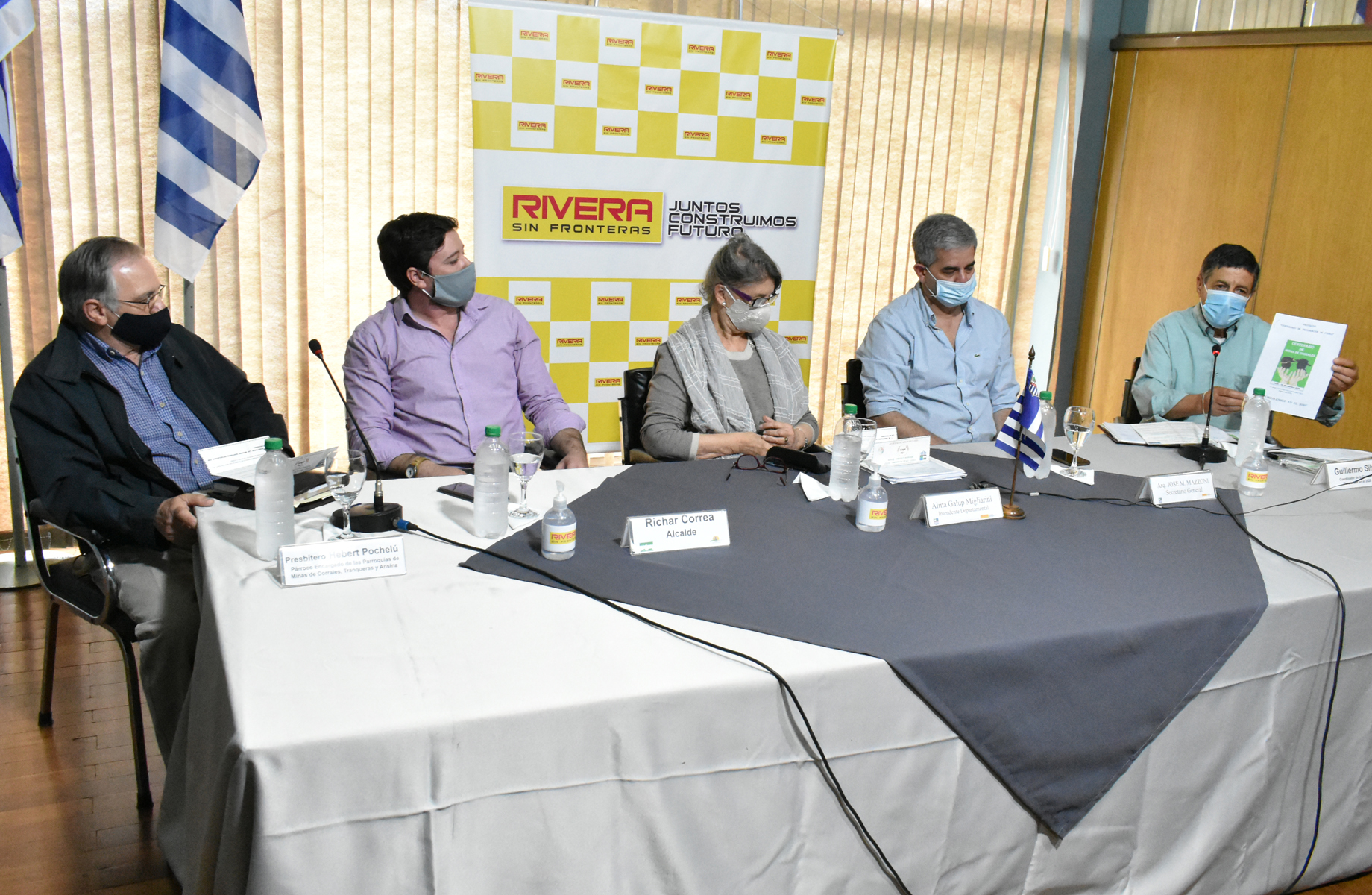 En el acto protocolar, que se realizó en el 3er piso de la IDR, en la mañana de este martes 20 de octubre, estaban presentes junto a la intendente departamental de Rivera, Alma Galup Migliarini, el secretario general de la IDR, Arq. José Mazzoni, el alcalde de Minas de Corrales, Richar Correa, el coordinador de la Comisión Corralenses en el 2020, Guillermo Silva, el presbítero Hebert Pochelú (párroco encargado de las parroquias de Minas de Corrales, Tranqueras y Ansina); además los acompañaba el diputado Marne Osorio Lima.