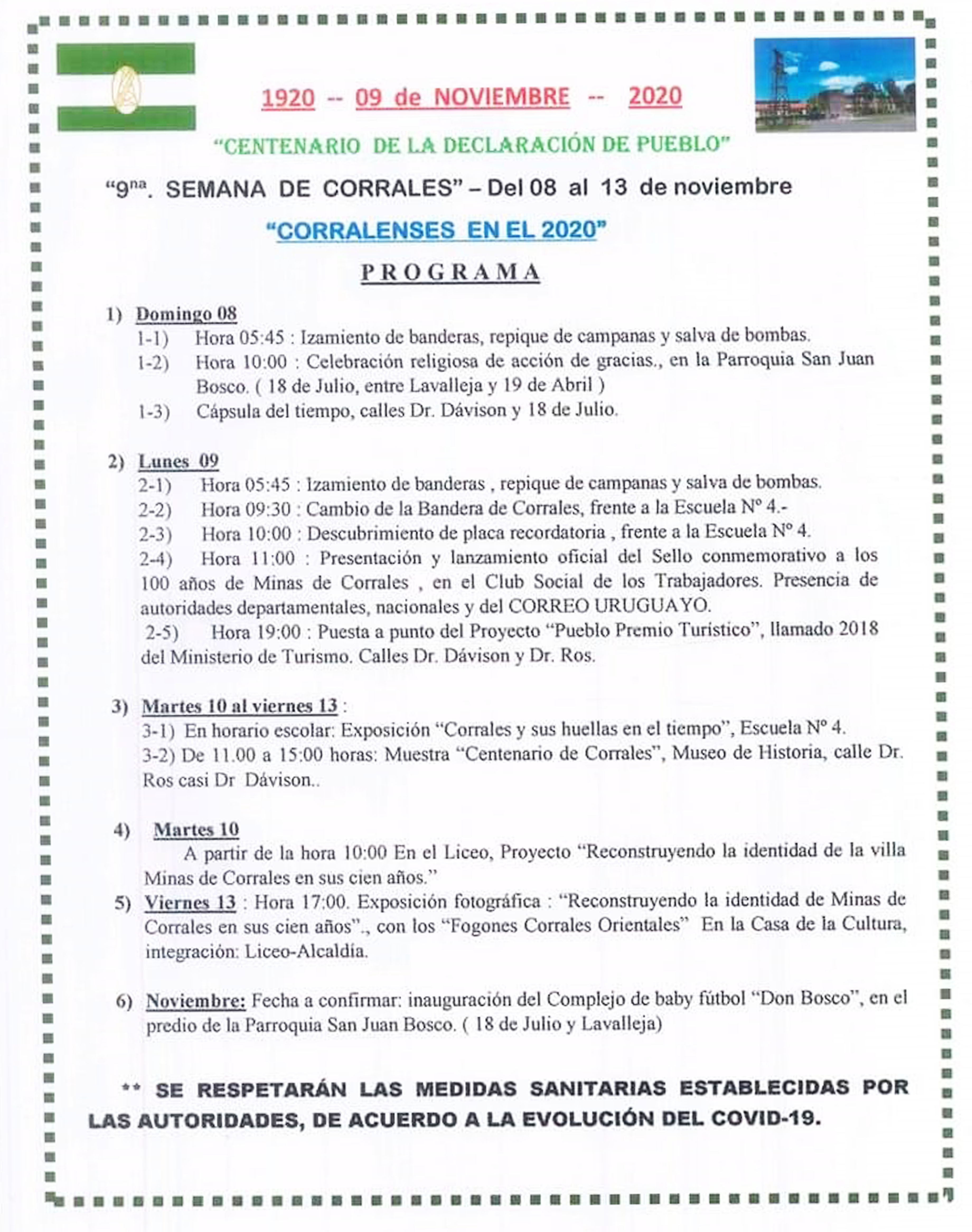 Oficialmente se presentó la 9ª Semana de Corrales, que va desde el domingo 08 al viernes 13 de noviembre, y el Centenario de la declaración de Pueblo (9/10/ 1920-2020).