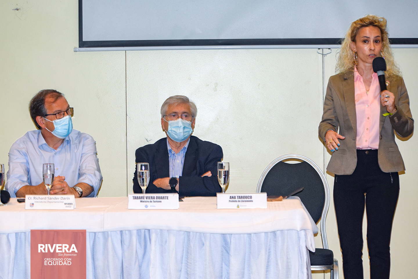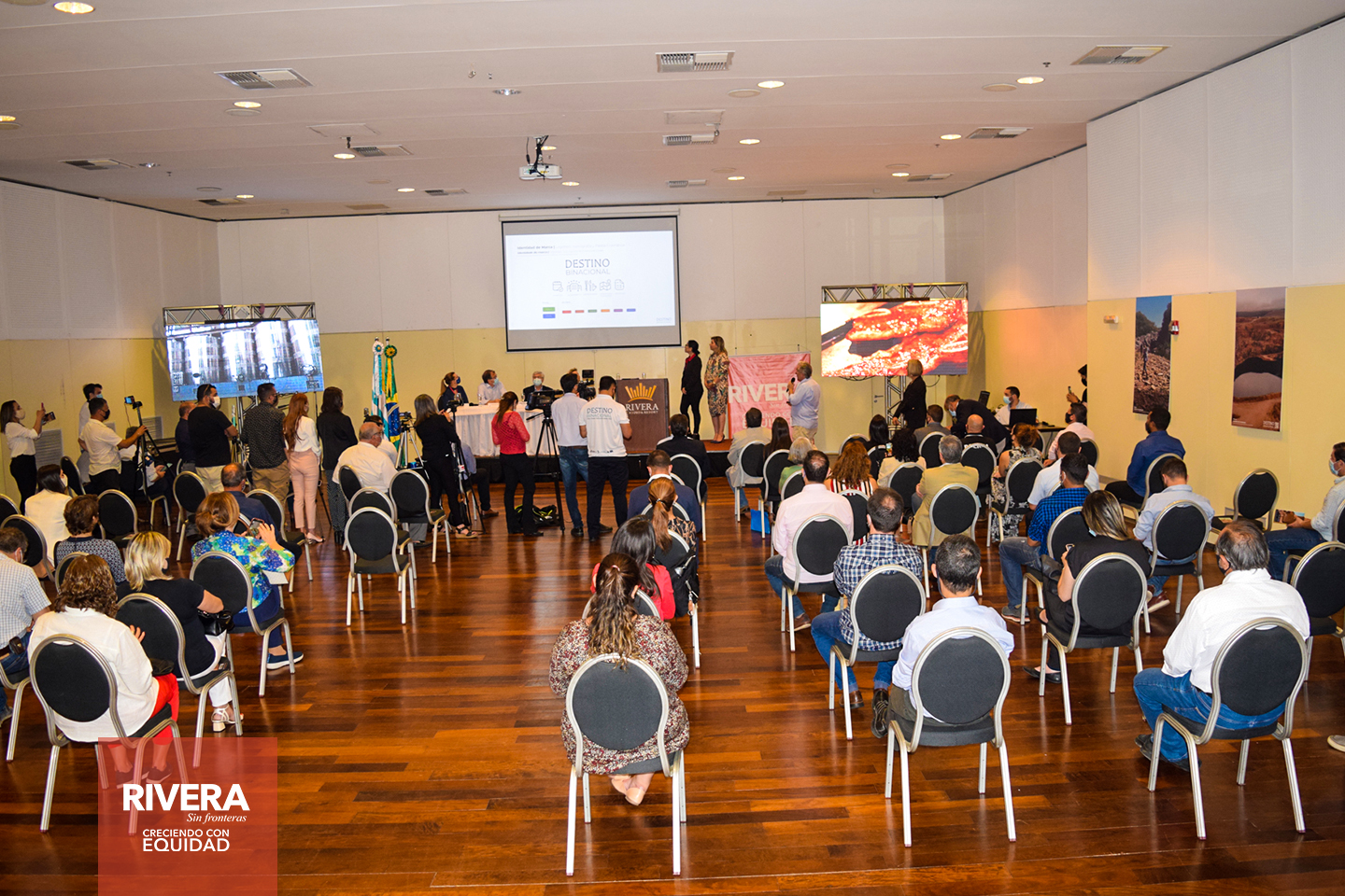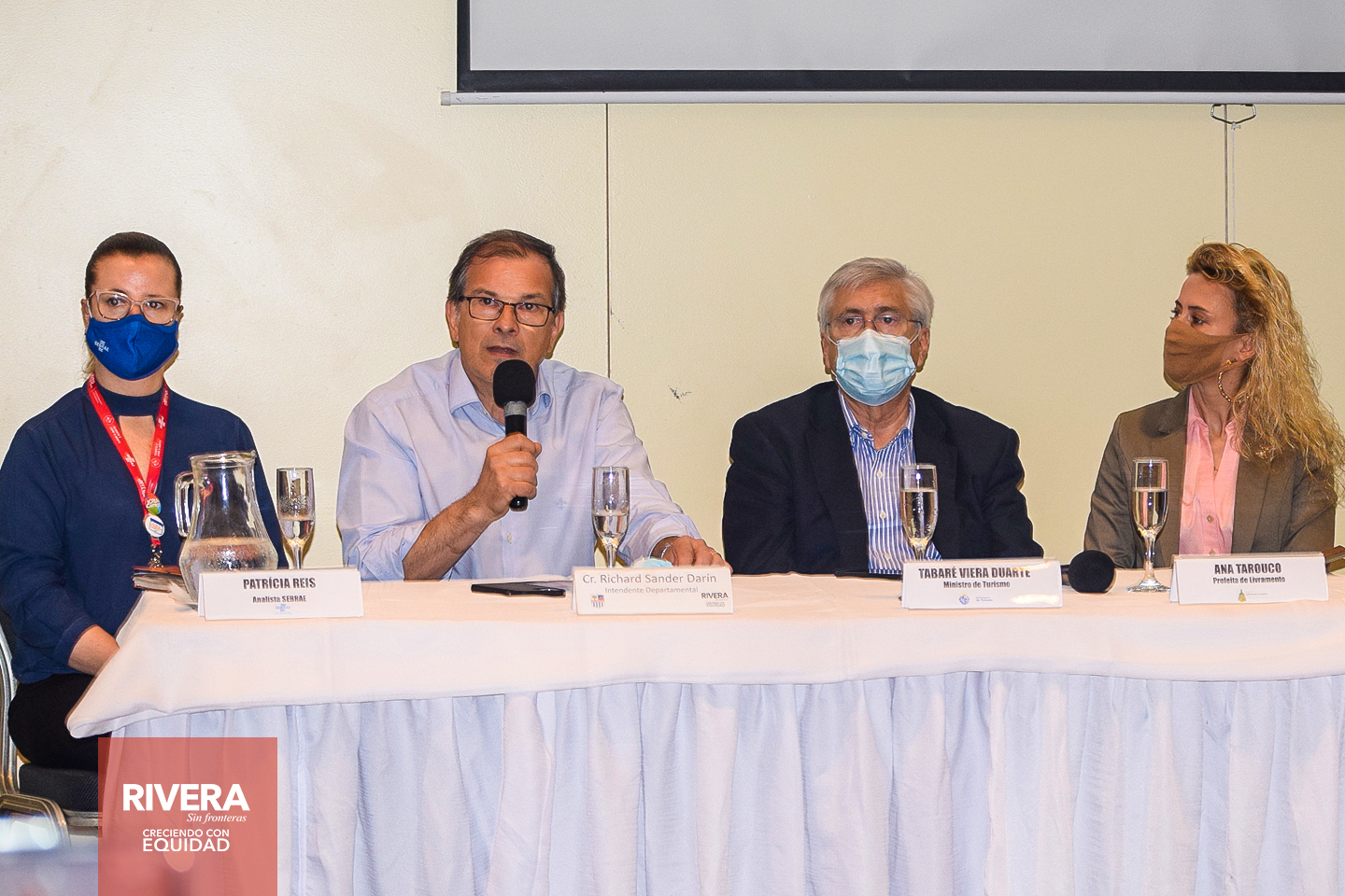 En horas de la mañana del viernes 29, el intendente de Rivera, Cr. Richard Sander, junto a la Prefeita de Santa do Livramento, en presencia del Ministro de Turismo, Tabaré Viera, representantes nacionales, autoridades de Brasil, representantes de Sebrae, participó del lanzamiento de la marca “Destino Binacional”, en el marco del Proyecto “Potenciando una Cultura Turística Responsable en la frontera Rivera/Livramento”, en el Salón Ibicuy del Rivera Casino & Resort.