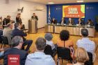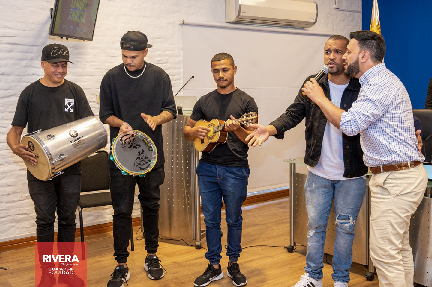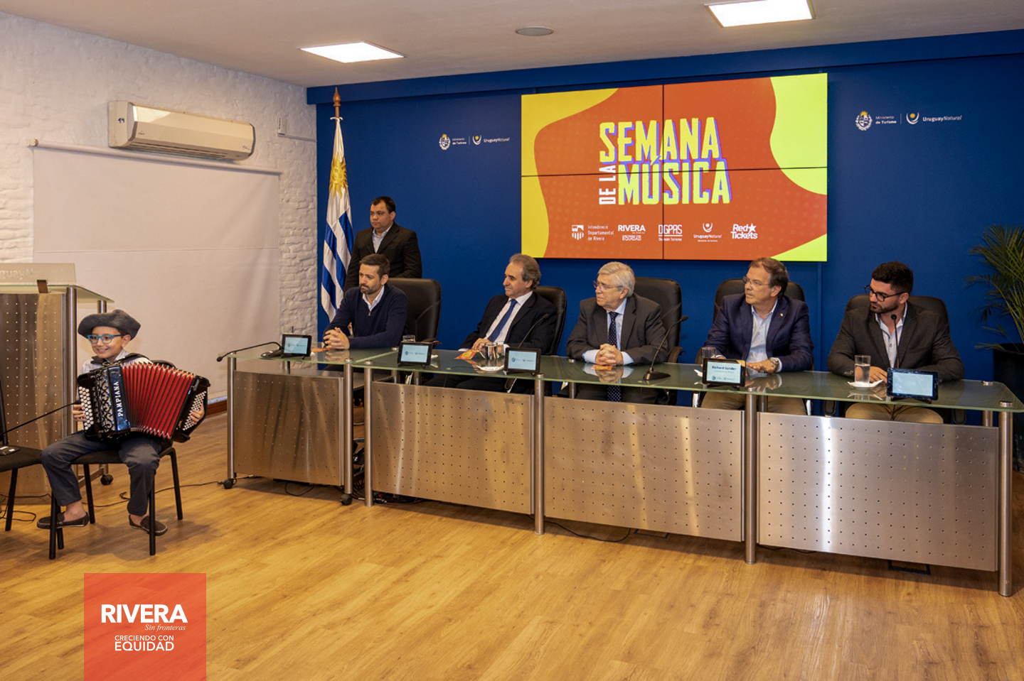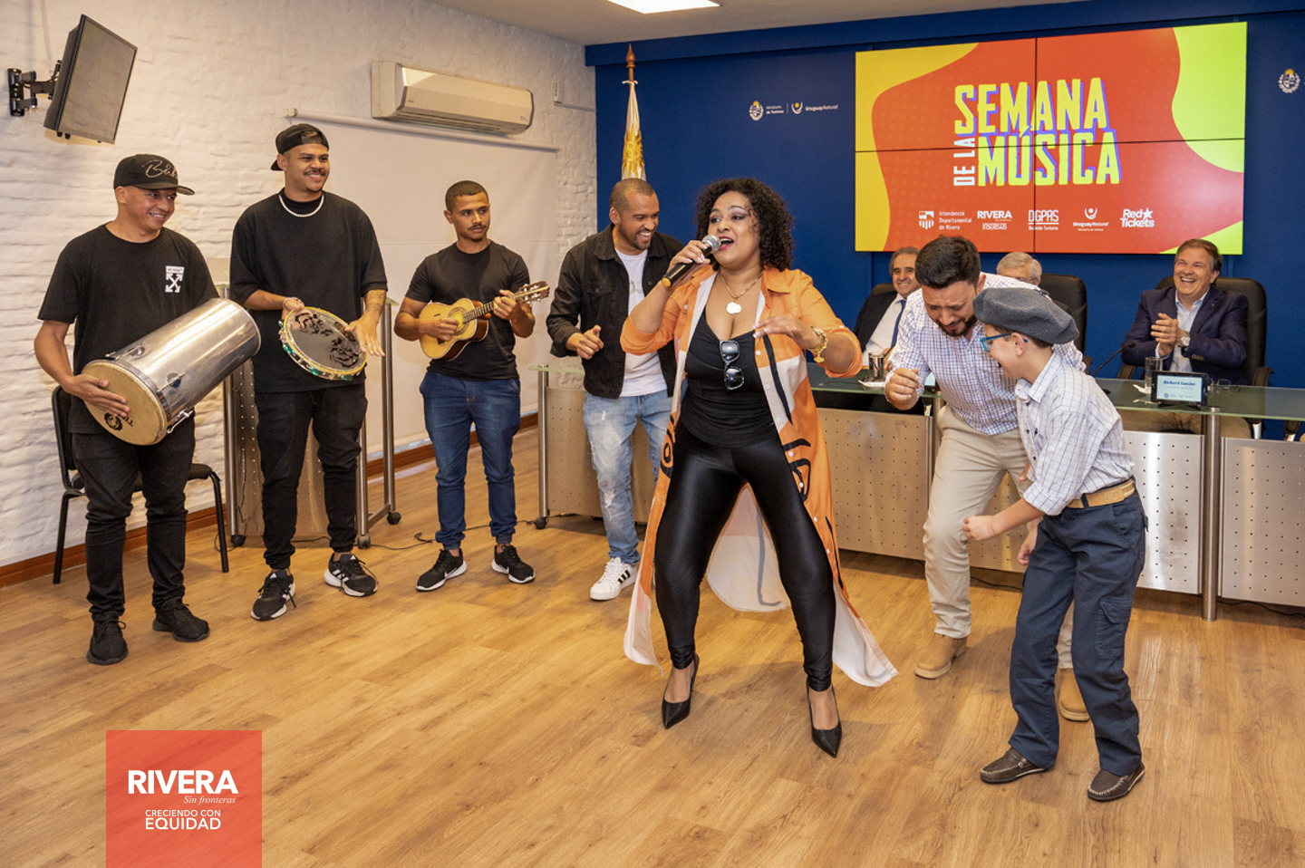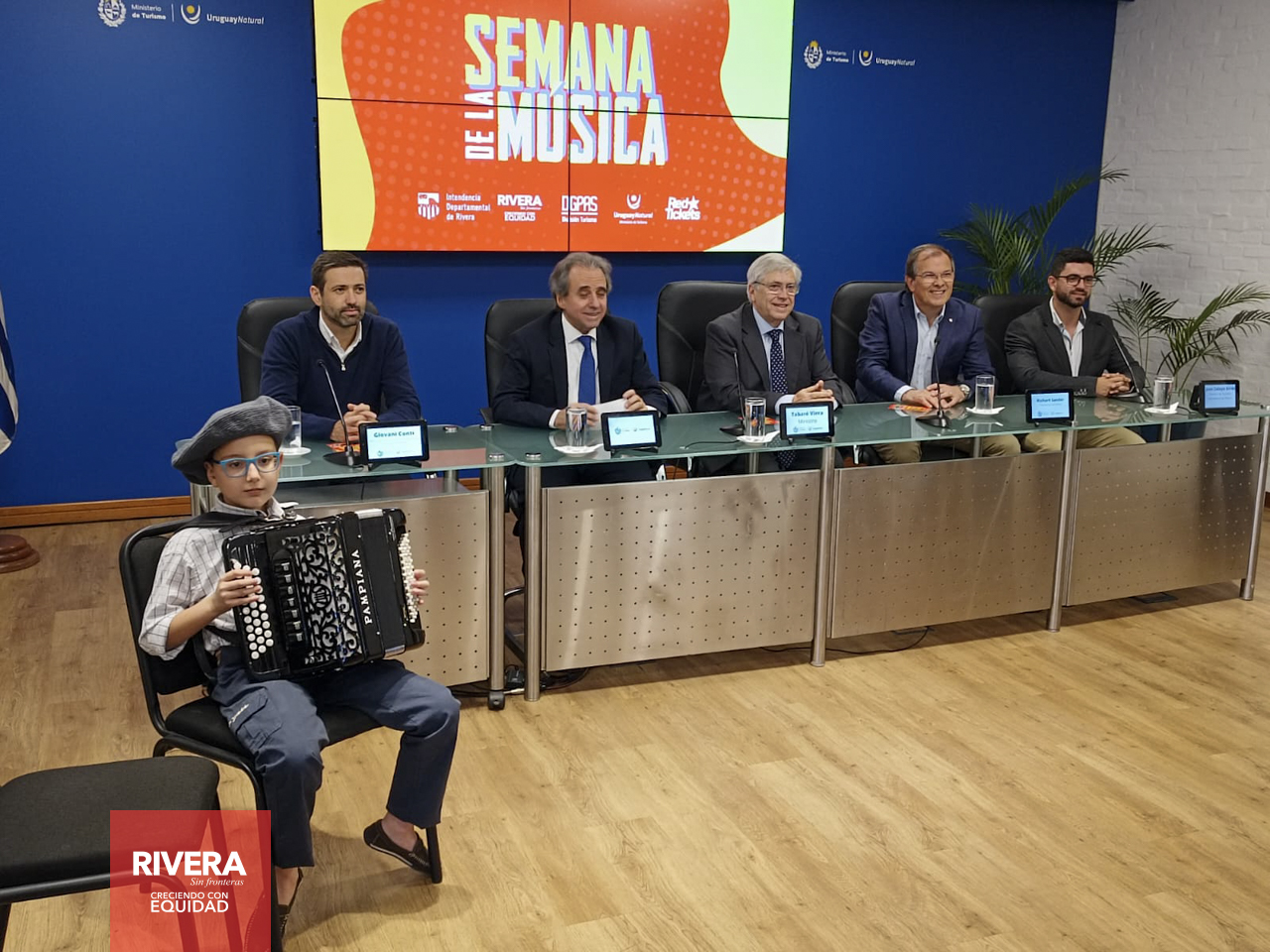 En la Sala Horacio Arredondo del MINTUR, estuvieron presentes autoridades Nacionales, Departamentales, Representantes Nacionales y artistas que forman parte de la grilla de los tres días de la semana de la música, entre ellos Lucas Sugo, Enzo Castro, Miriam Britos y Tardinha do Samba.