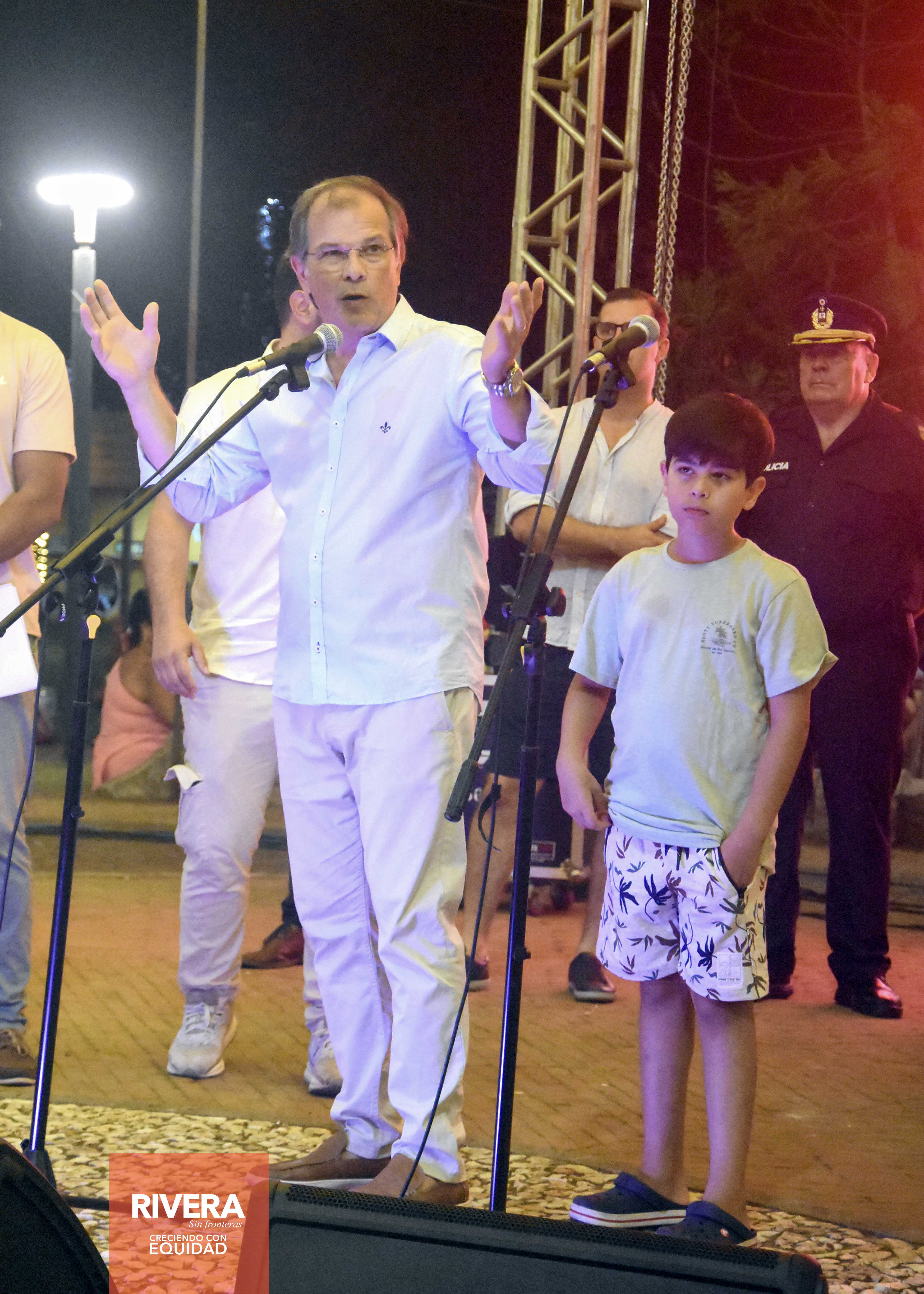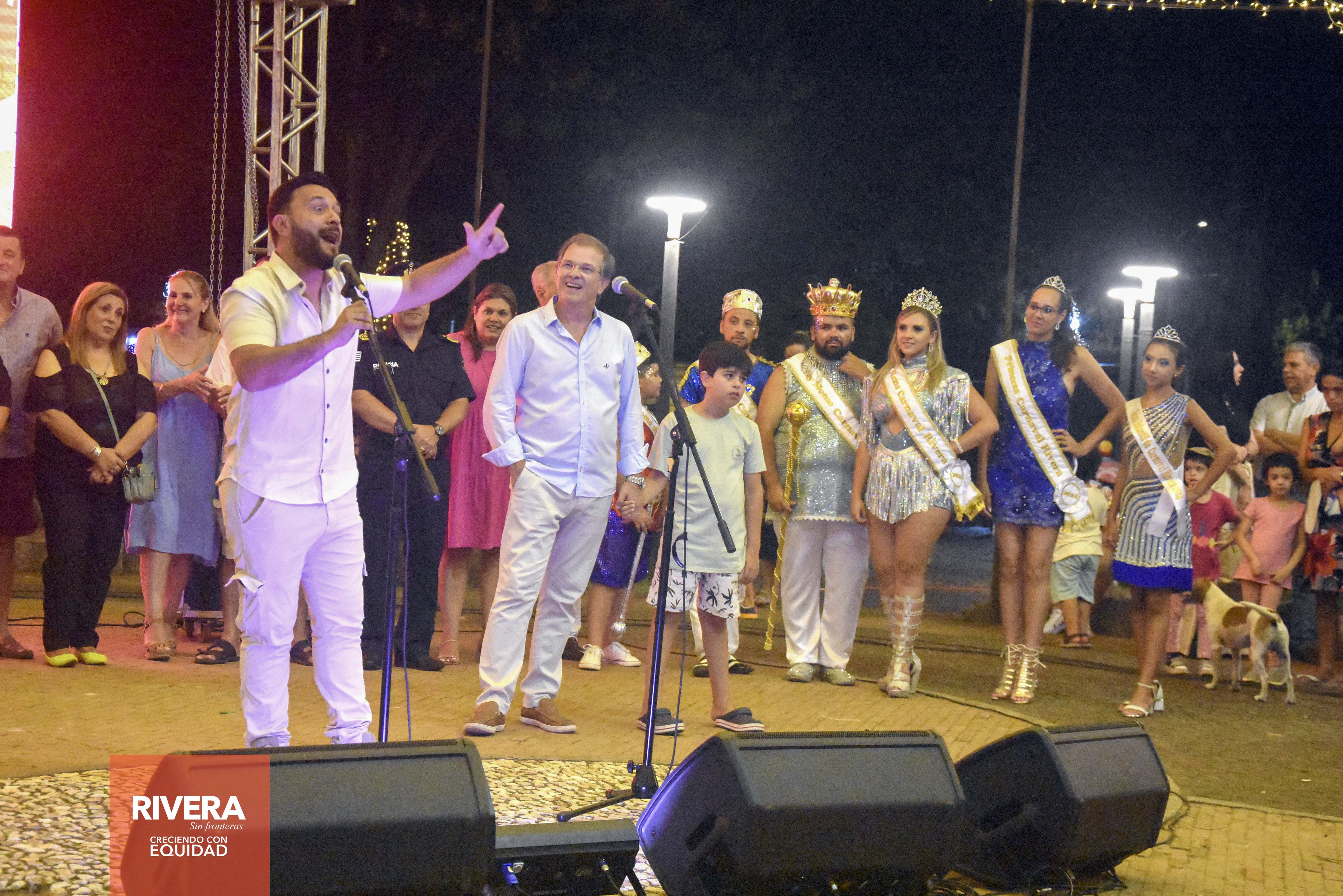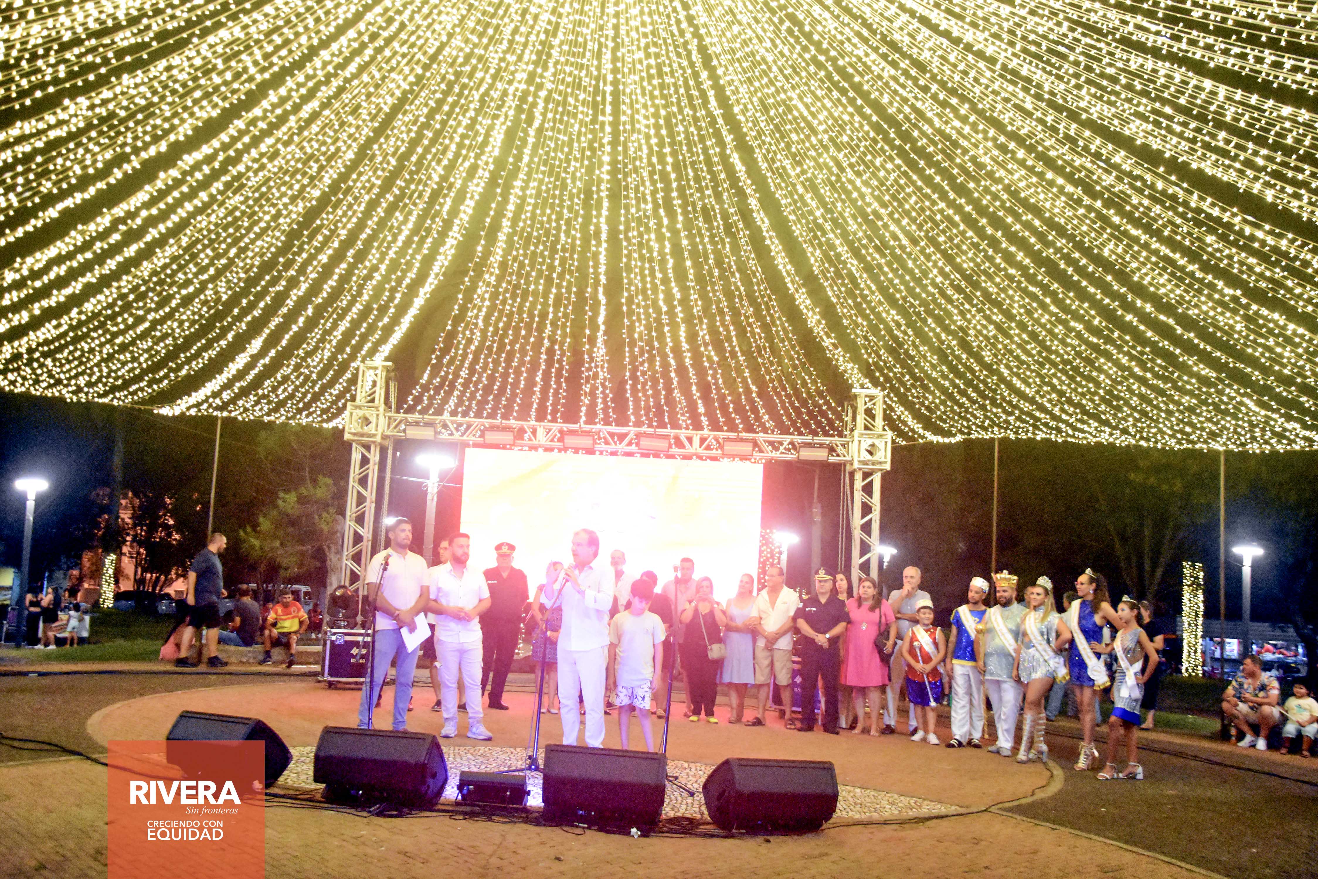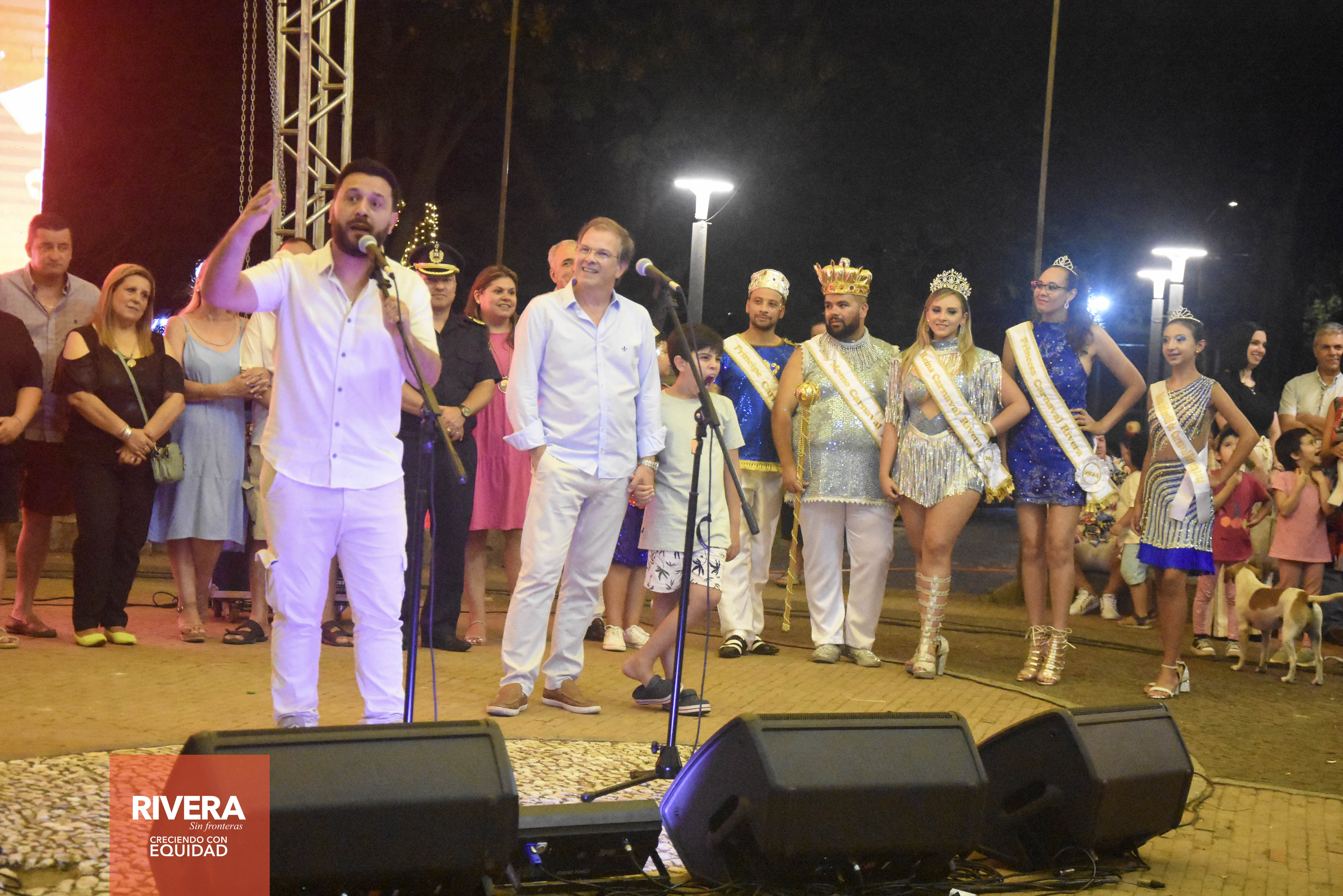 En primera instancia la presentación de los soberanos del carnaval 2024, Rey Momo, Reina, Princesa, Príncipe, Reina y Rey Momo infantil. Luego hizo uso de la palabra el intendente de Rivera Cr. Richard Sander Darín, quien felicitó a todos los que trabajaron para lograr un evento exitoso, recalcando que es totalmente gratuito para asistir a la amplia cartelera con variada oferta.