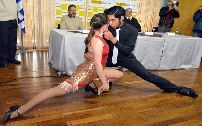 La mesa de conferencia estuvo conformada por el Director de la Dirección General de Promoción y Acción Social, Cr. Giovani Conti, Director de Cultura Alex Alvez, Secretario de Cultura, Esporte e Lazer de la Prefeitura de Santa Ana do Livramento, Airton Costa Leites y el Coordinador Municipal de Danzas de la Prefeitura, Adán Eyle Lópes.