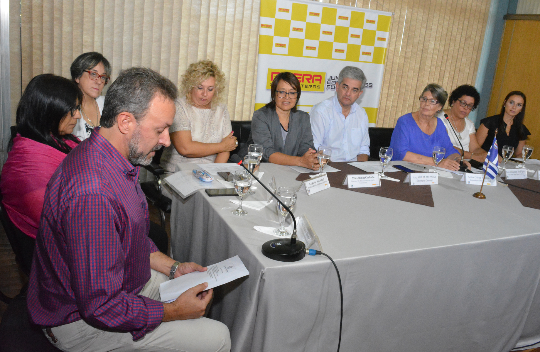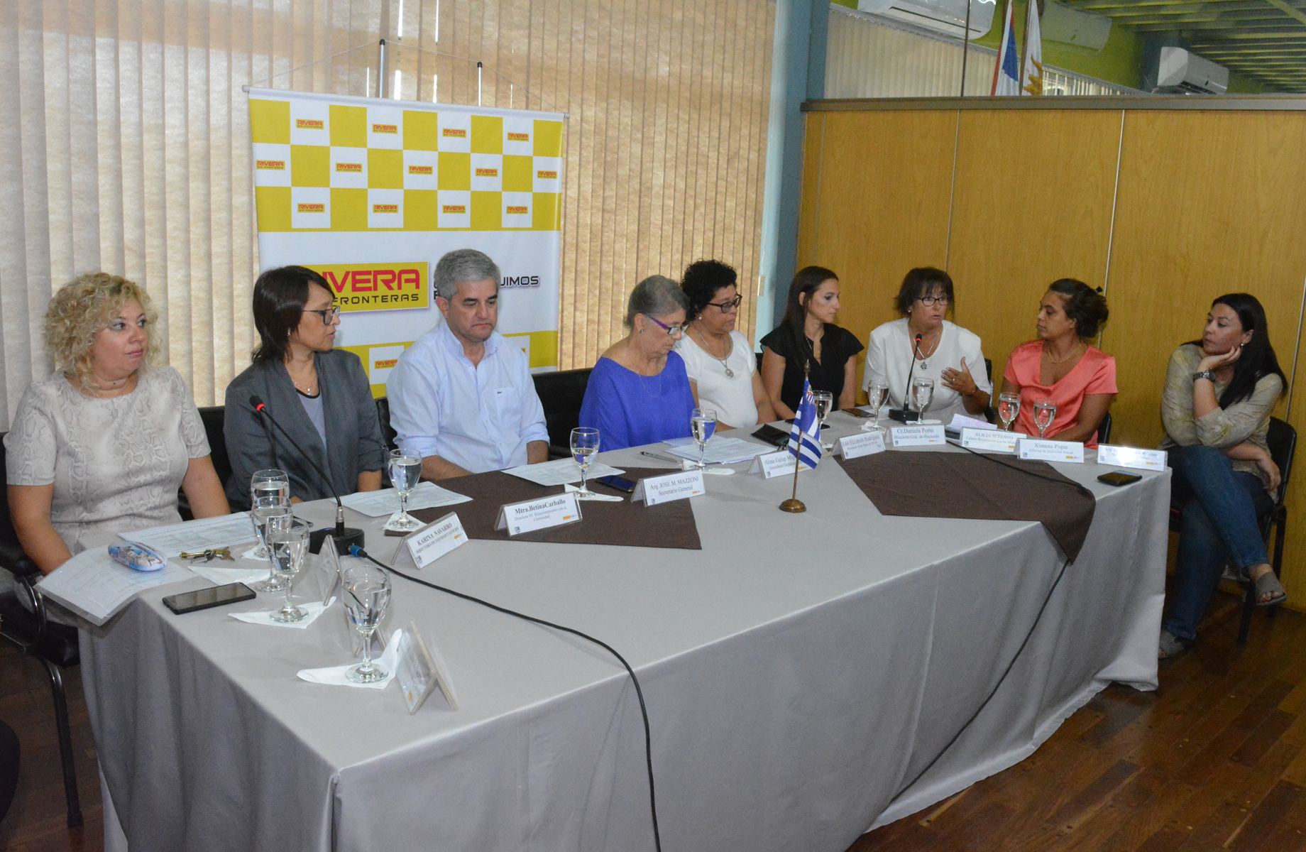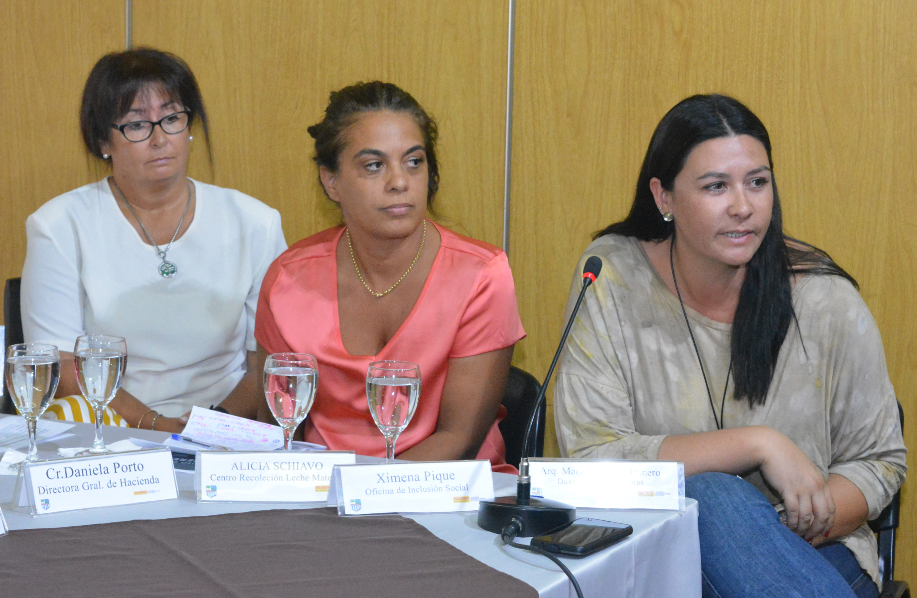 Conformaron la mesa: la directora General de Hacienda, Cr. Daniela Porto, la directora de la oficina Relacionamiento con la Comunidad, Mtra. Betina Carballo, la directora de la oficina de Equidad y Género, Karina Navarro, Alicia Schiavo representando el Centro Recolección de Leche Materna, la directora de la oficina de Inclusión Social, Ximena Pique, desde la dirección General de Obras, Arq. María Eugenia Romero, Rosario Lara en representación del Museo Artes Plásticas, la Presidente de la ONG Mujeres Celebran la Vida, Arch. Sonia Días y la Presidente de la Junta Departamental de Rivera, Elízabeth Rodríguez.