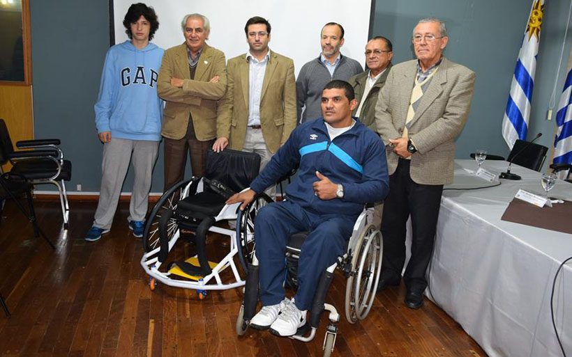 En un momento muy emotivo, se le hizo entrega al deportista Martín Pecheto, la silla especial profesional para que pueda seguir desarrollando sus actividades en la Selección Uruguaya de Basketball en silla de ruedas.
