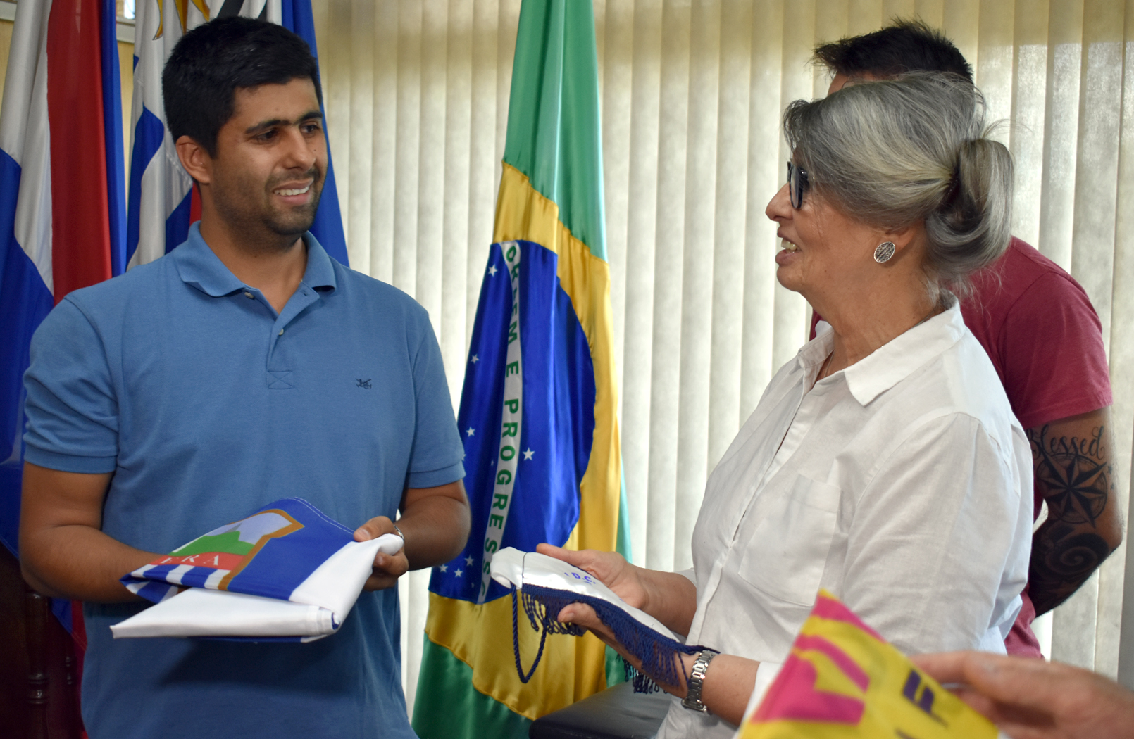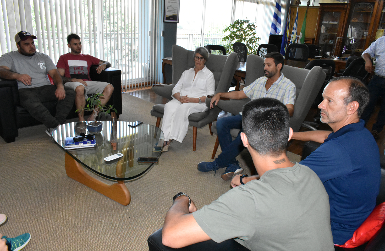 En la mañana del miércoles 19, la Sra. intendente de Rivera, Alma Galup Migliarini, recibió en su despacho a los actuales campeones nacionales de fútbol siete, un equipo riverense conformado por deportistas uruguayos y brasileros, quienes representarán a Uruguay en Tandil (Argentina); e hizo entrega de las banderas de Rivera y del Gobierno Departamental; “se la han ganado” fueron las palabras de Alma Galup.