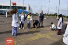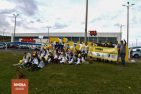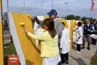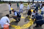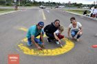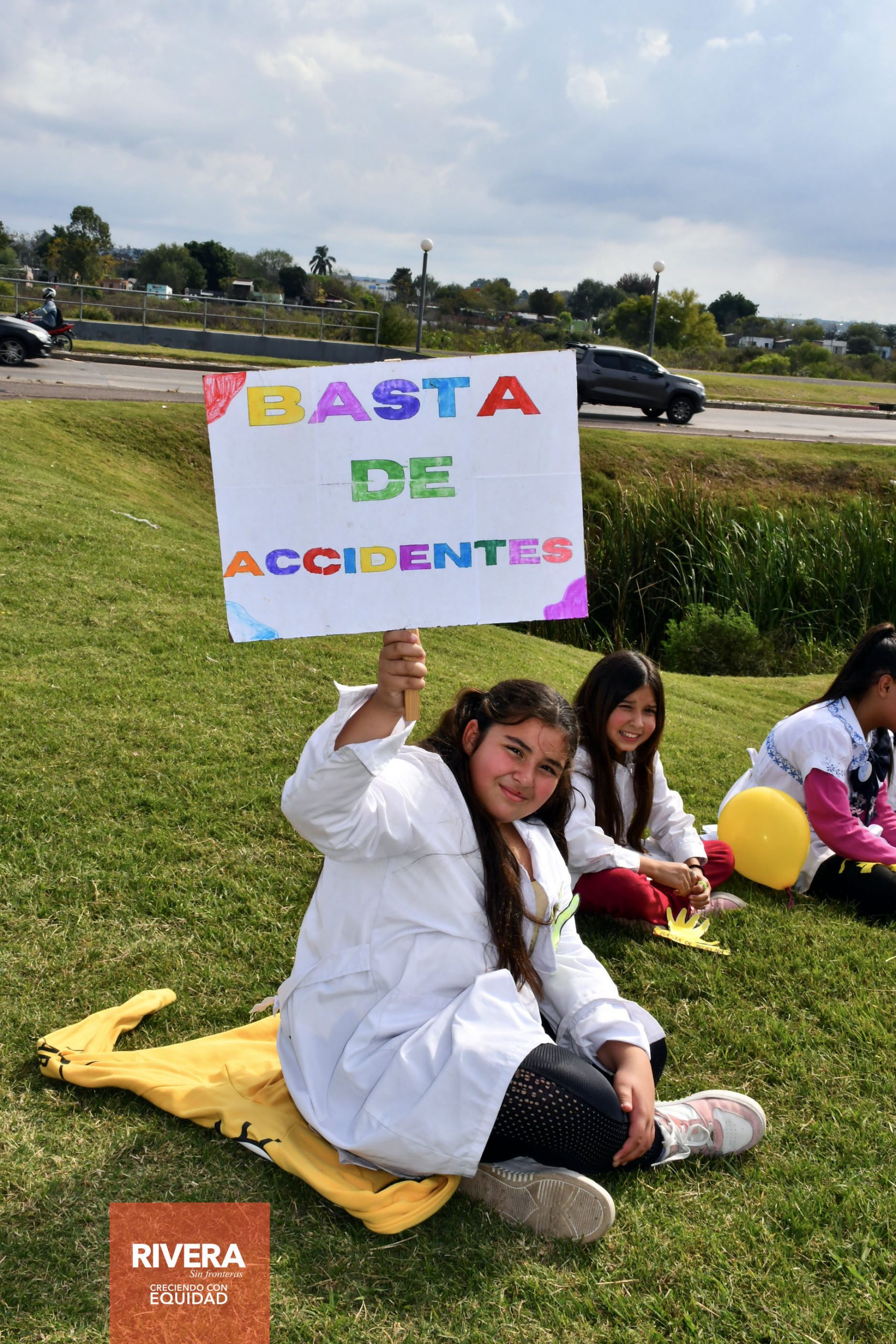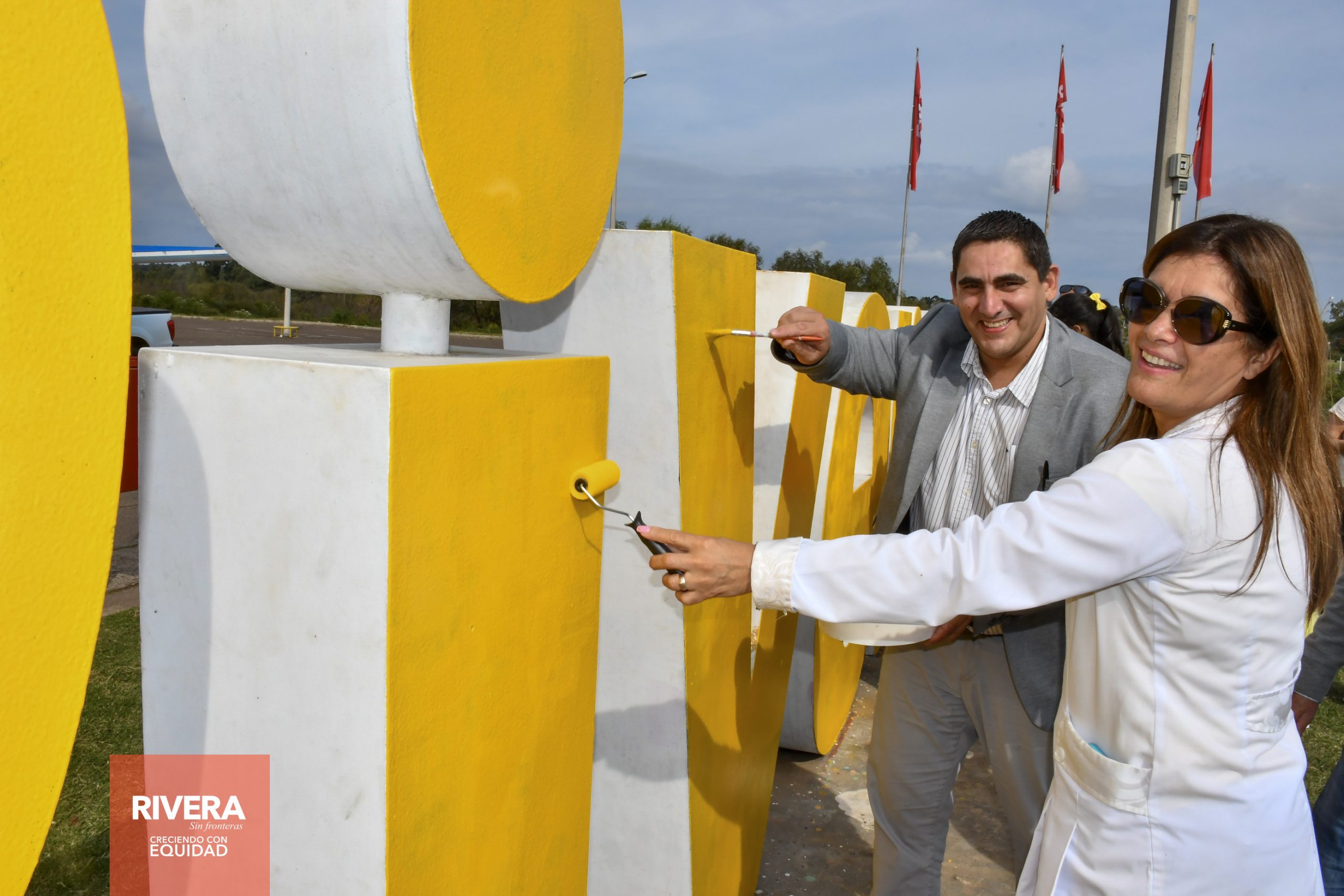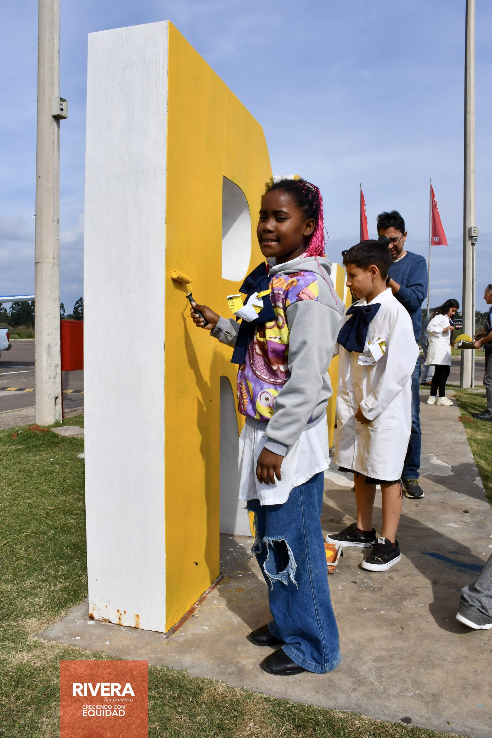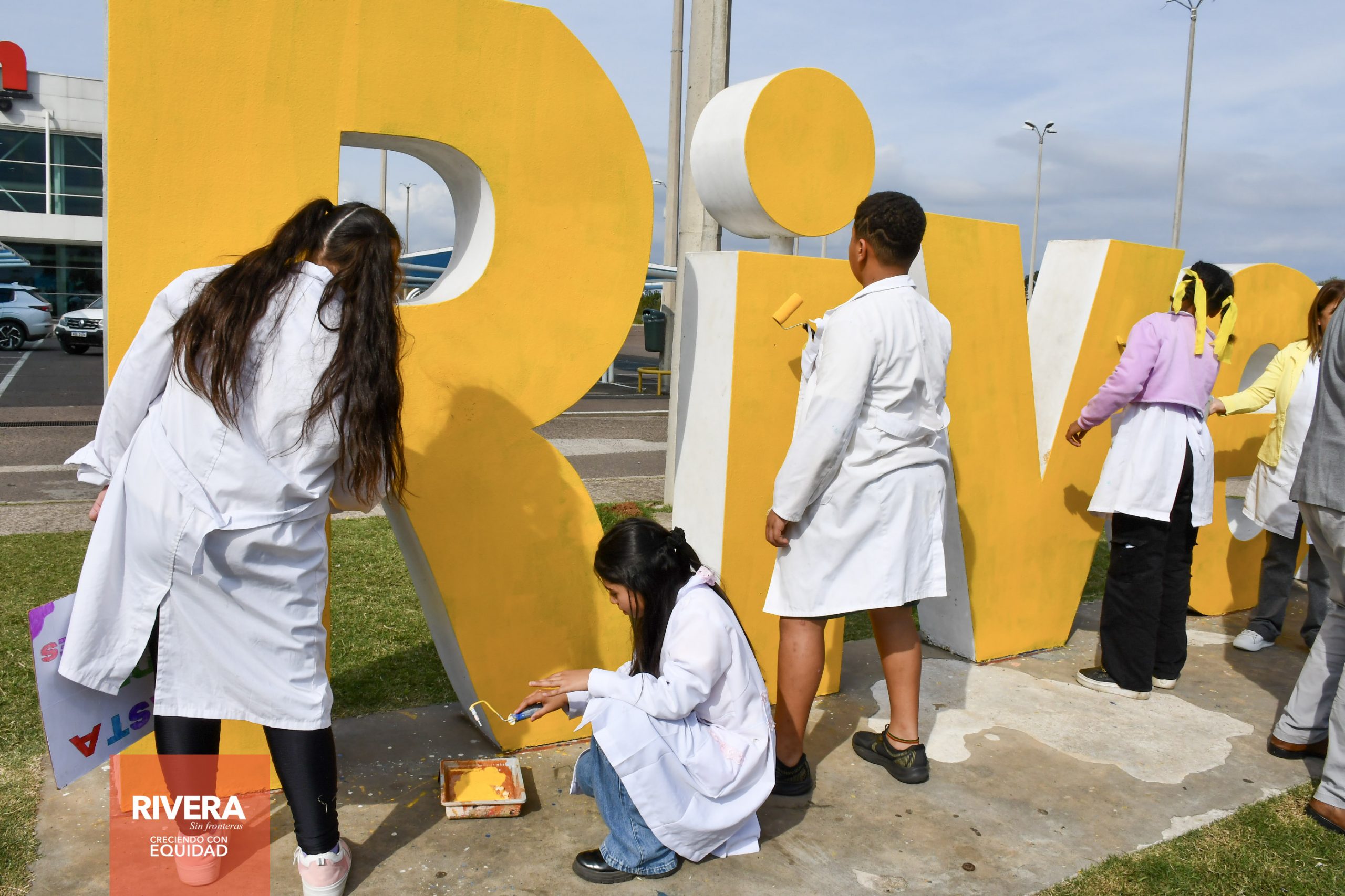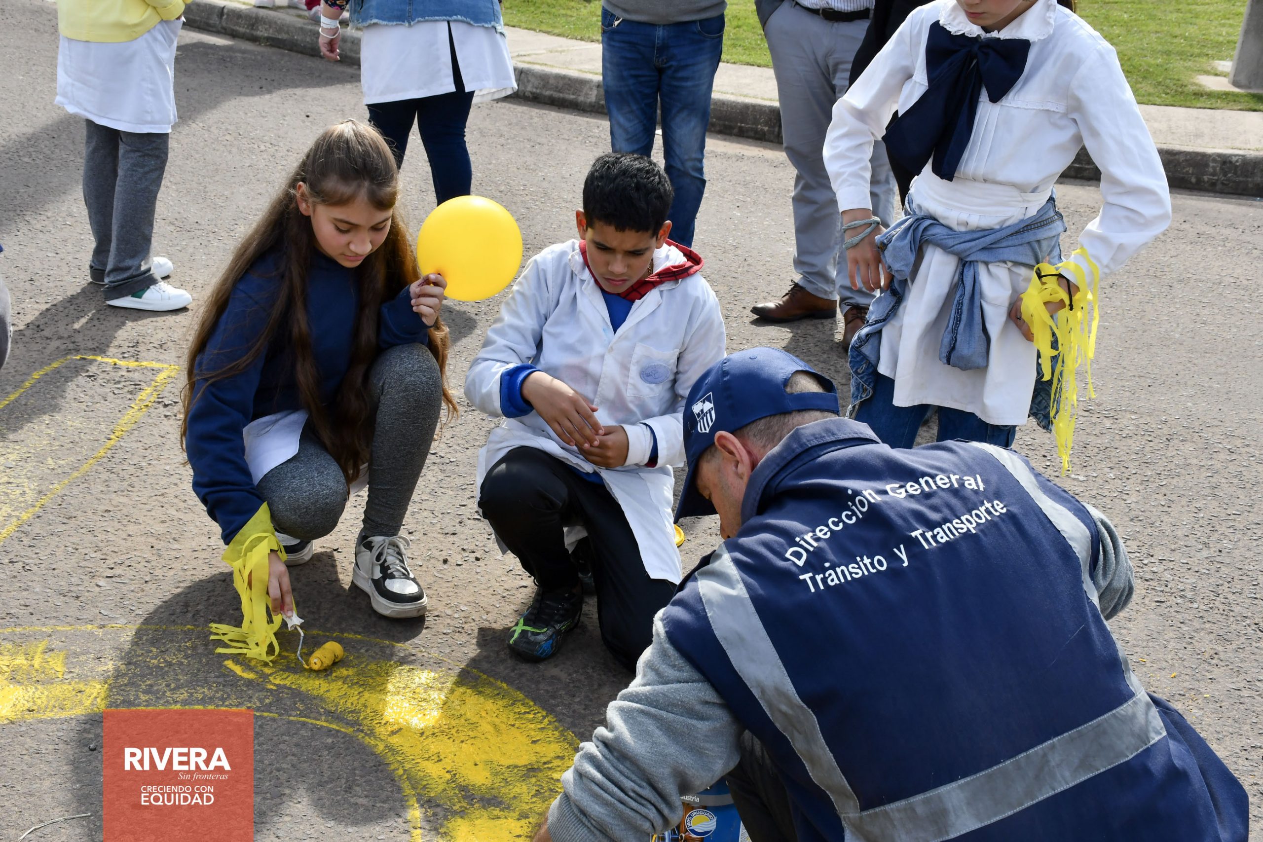 En horas de la tarde de hoy, alumnos y docentes de la escuela Nº 44 República de Italia, autoridades de la Dirección General de Tránsito y Transporte y de instituciones asociadas, pintaron un lazo en la entrada del supermercado Macro Mercado y las letras corpóreas que forman la palabra RIVERA en color amarillo dentro del marco de Mayo Amarillo 2025.Las actividades relacionadas a la prevención de siniestros de tránsito, se realizan en la ciudad de Rivera y en las alcaldías durante el mes de mayo.