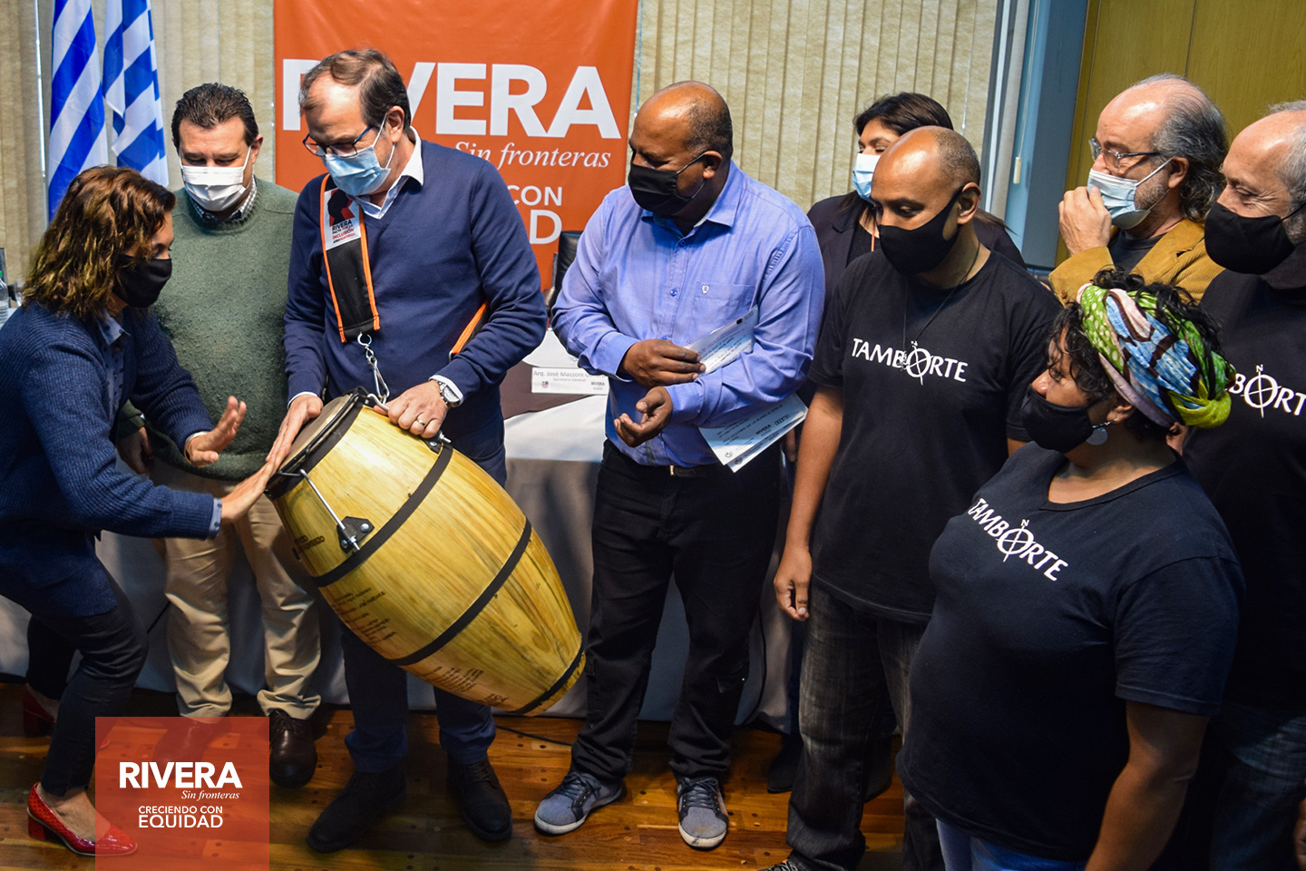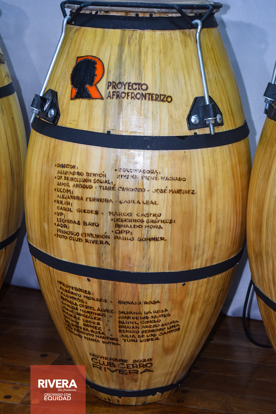 En el marco del “Mes de la afrodescendencia”, se invitó a los representantes de las cuatro comparsas riverenses, quienes recibieron de los alumnos del Proyecto AfroFronterizo, un tambor a cada comparsa, construido artesanalmente por los mismos; a su vez los integrantes de la oficina de Inclusión Social junto a los alumnos y autoridades presentes, hicieron entrega de más tambores, uno al intendente de Rivera y otro al director de Cultura.