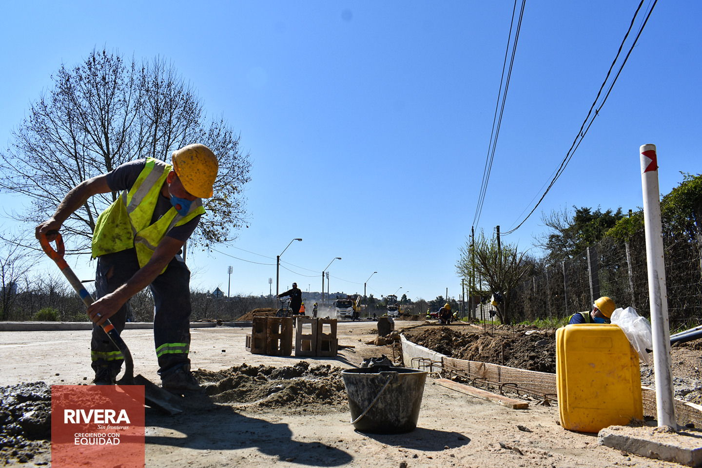 El cruce de las calles Oscar Riera y Avda. Italia, las cuales están con obras de hormigonado, están finalizadas; actualmente se está trabajando en la construcción de veredas y una ciclovía con algunas particularidades que la diferencian de las construidas en otras obras.