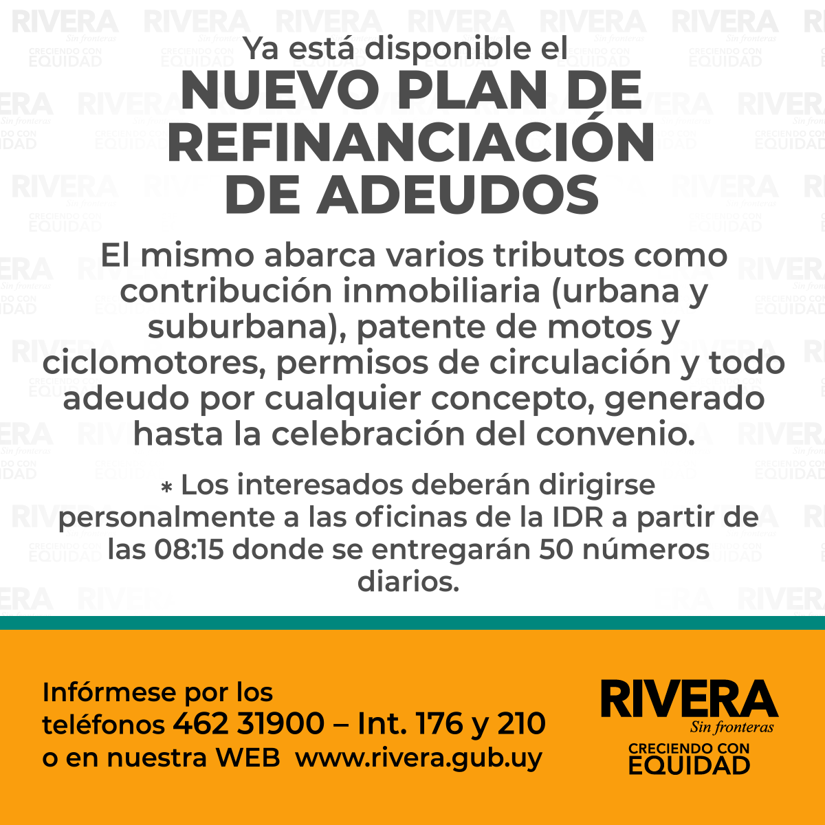 Los interesados en adherirse deberán presentarse en las oficinas de Tributos (planta baja) y Tributos de tránsito (segundo subsuelo), en Agraciada 570 de lunes a viernes en horario de oficinas.