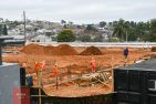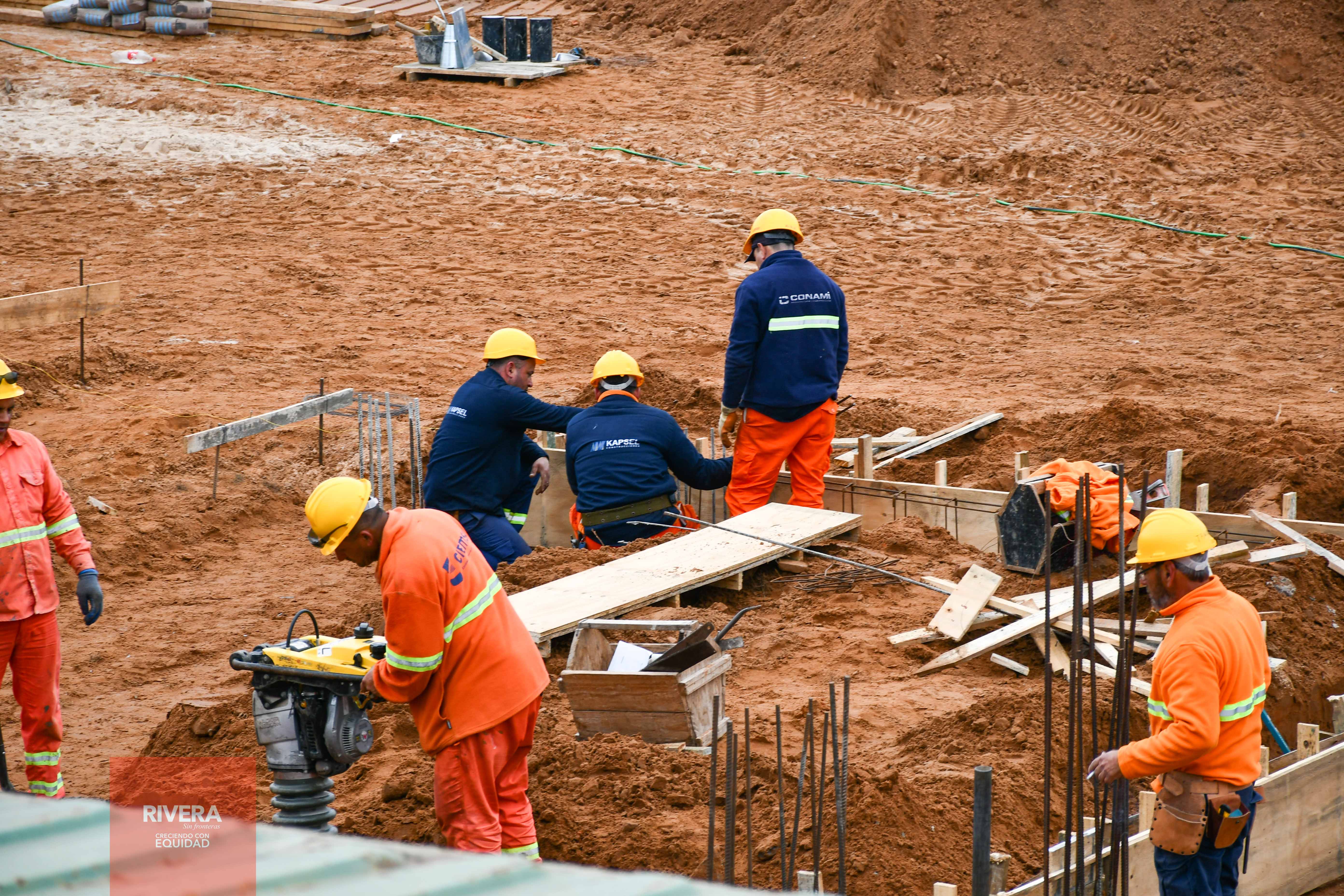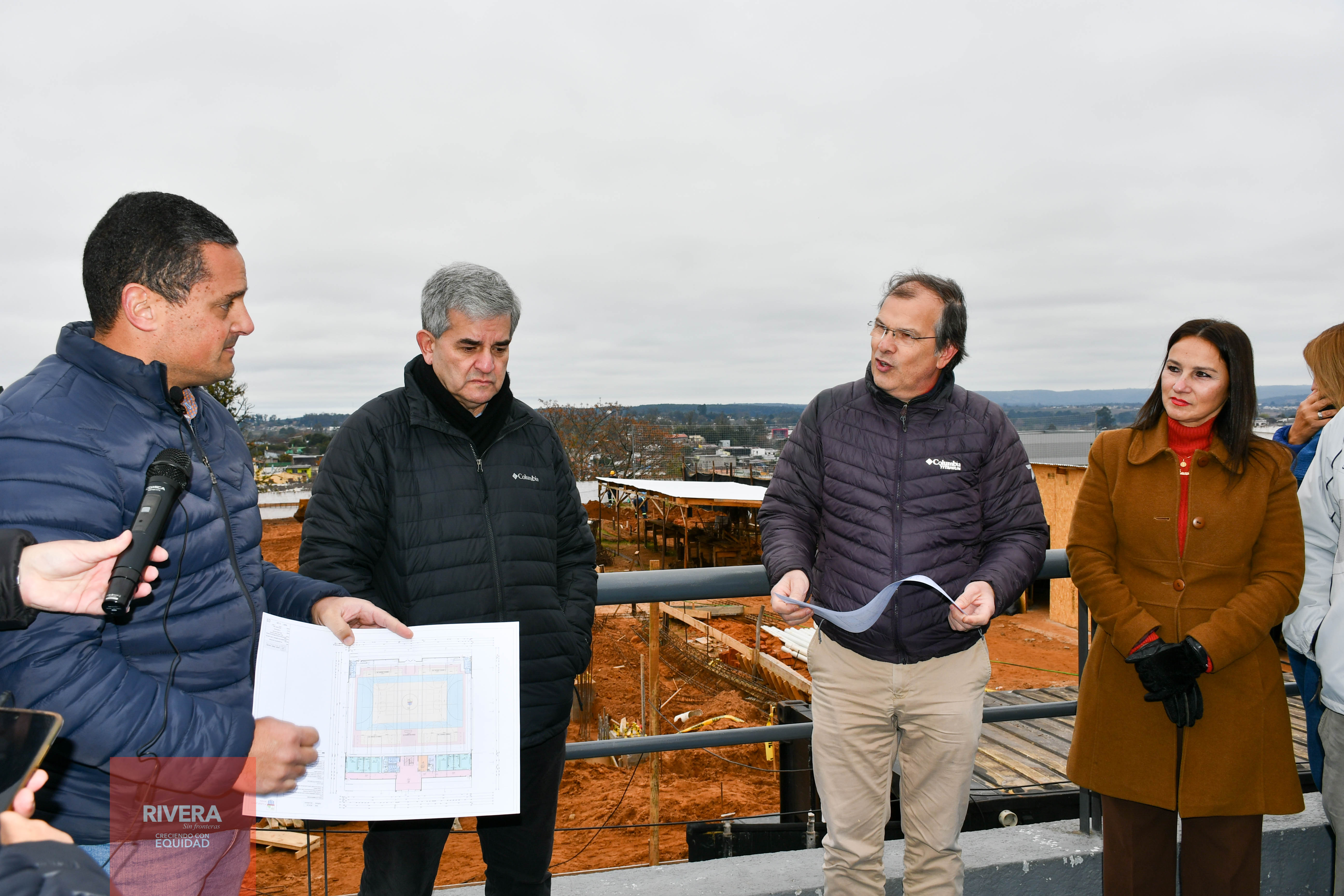 La primera obra que visitada fue la de construcción del Polideportivo Don Bosco (Luis Alberto de Herrera entre Lavalleja y Reyles).