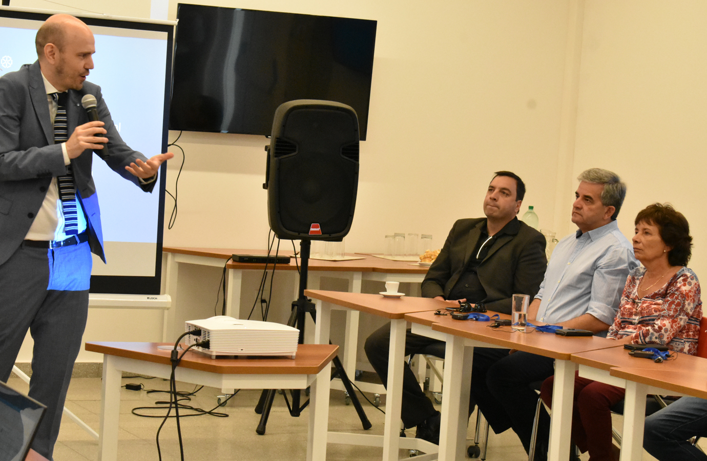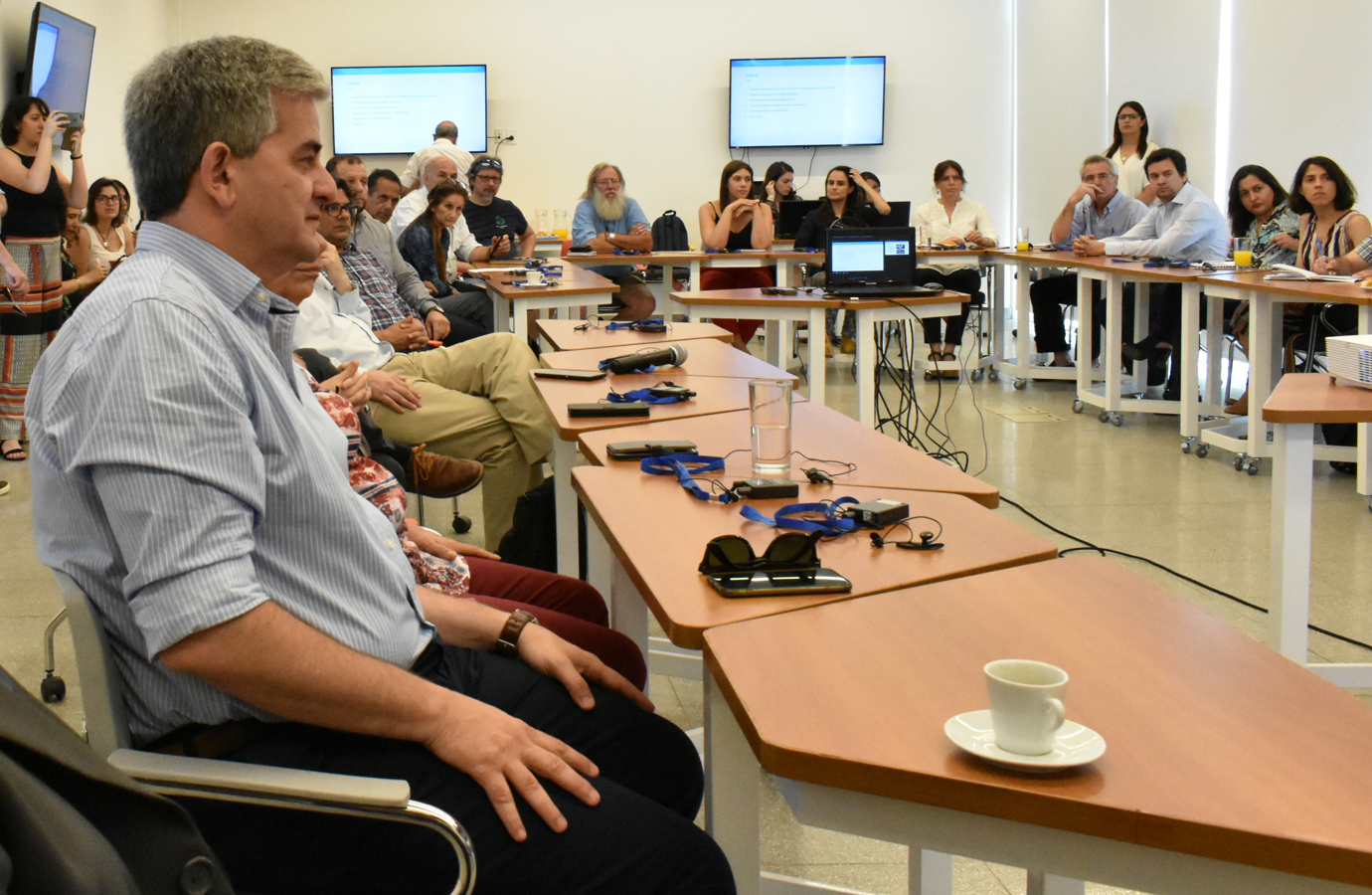 La presentación se hizo antes de la conferencia de Prensa, donde estaban presentes por la IDR,el director General de Desarrollo y Medio Ambiente, Q.F. Alejandro Bertón, el coordinador de la Unidad de Desarrollo (IDR), Lic. Santiago Esteves y la Bioquímica Melina Leites de división Empresas; además representantes de UTEC, UDELAR, IFSUL, representantes Nacionales, y empresarios.