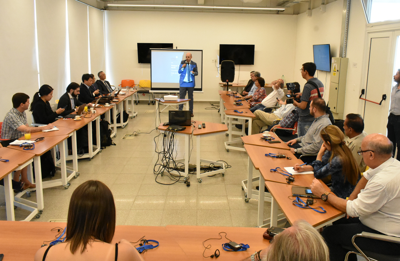 En la mañana del miércoles 11, el Intendente (I) Departamental, Arq. José Mazzoni, participó de un desayuno de trabajo, seguido de una conferencia de prensa, en las instalaciones de la Universidad Tecnológica (UTEC), donde el grupo consultor coreano-español, presentó los avances para consolidar un Parque Tecnológico, basado en su experiencia y con conocimiento previo específico en esa área, proyectada en la región, llegando a la conclusión que “Rivera es una región interesante para su desarrollo”.