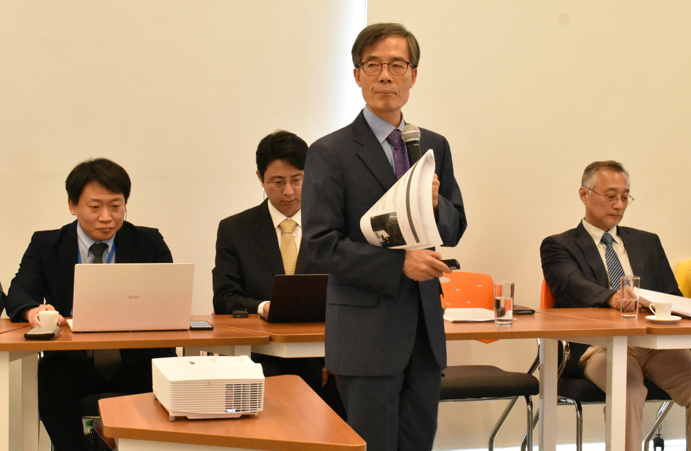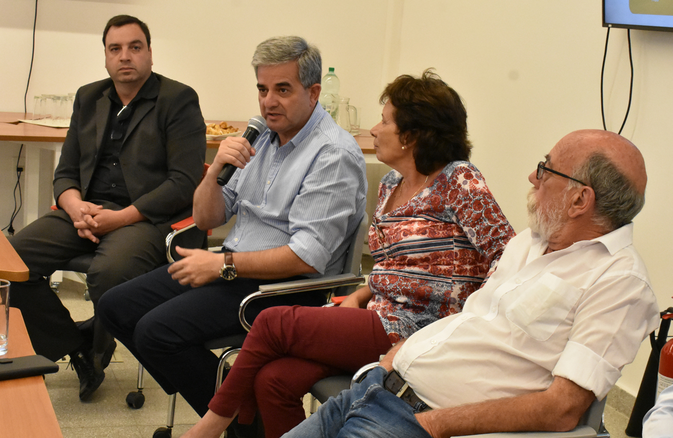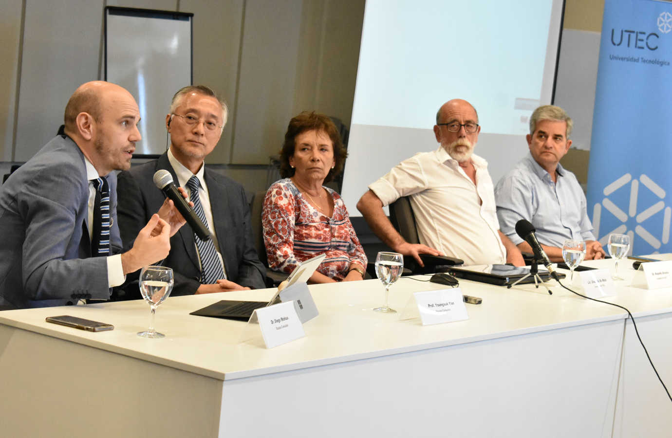 En la conferencia de Prensa, la mesa la conformaron el Intendente Departamental, el Prof. Yang y Dr. Diego Moñux (consultores), consejeros de la UTEC, Graciela Do Mato y Rodolfo Silveira.