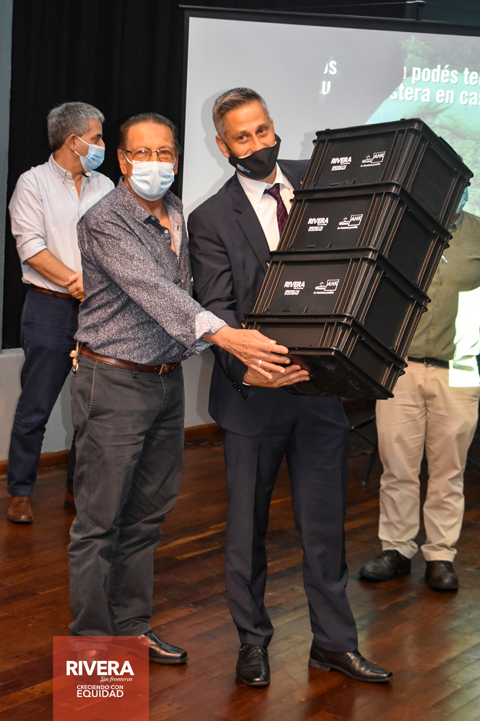 Con la presencia del intendente departamental, Cr. Richard Sander Darín, del secretario general de la IDR, Arq. José Mazzoni Gollardía, del director general de Desarrollo y Medio Ambiente, Q.F Alejandro Bertón, y de la Cámara de Comercio e Industria Uruguayo-Alemana (AHK por sus siglas en Alemán) , el gerente general, Mischa Groh y la representante de Comercio Exterior para Uruguay, Sra. Franziska Gruber, el pasado martes 14 de diciembre, se entregaron composteras, a los presidentes de las Comisiones Vecinales.