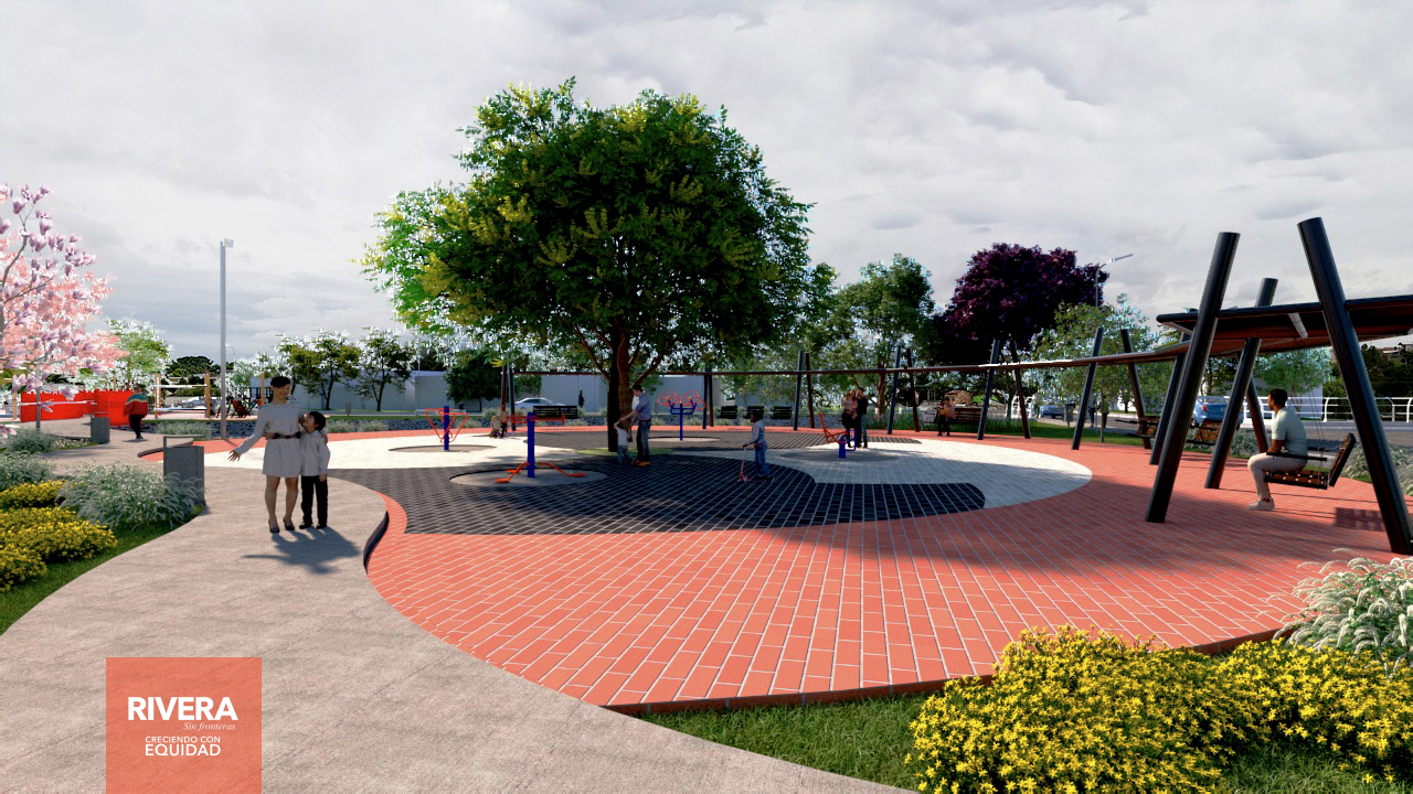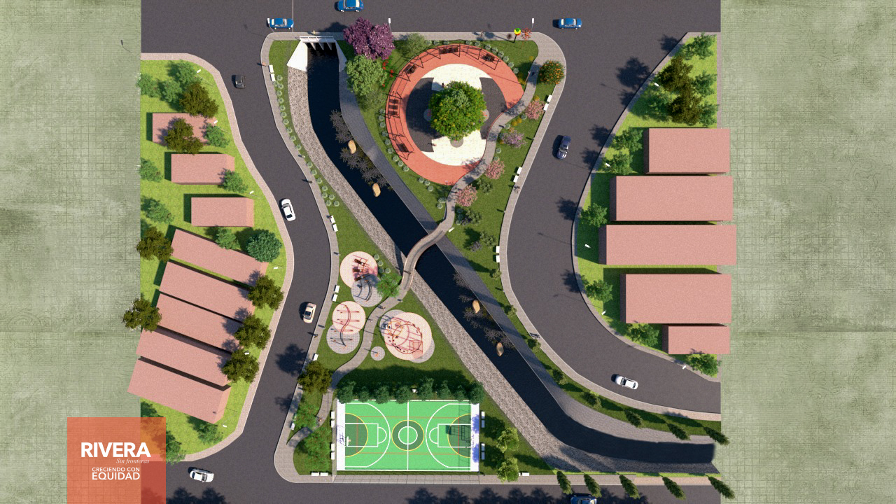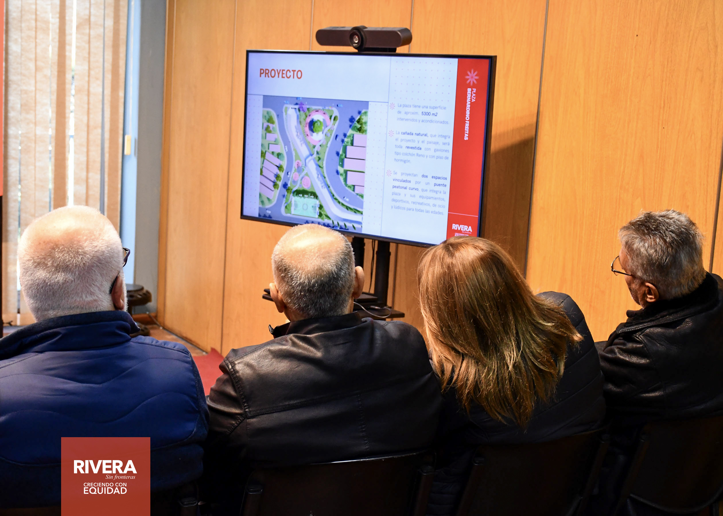 En la mañana de hoy el intendente de Rivera, Cr. Richard Sander Darín, acompañado por el secretario general de la IDR, Arq. José Mazzoni Gollardía, el director general de Obras, Arq. Martín García y la Arq. María Eugenia Romero, presentó oficialmente el Proyecto “Plaza Bernardino Freitas”, de la Zona Este de la ciudad.