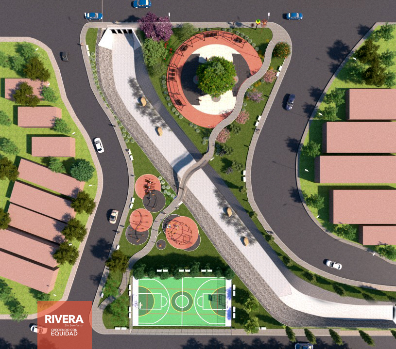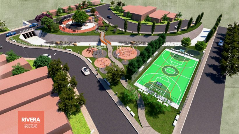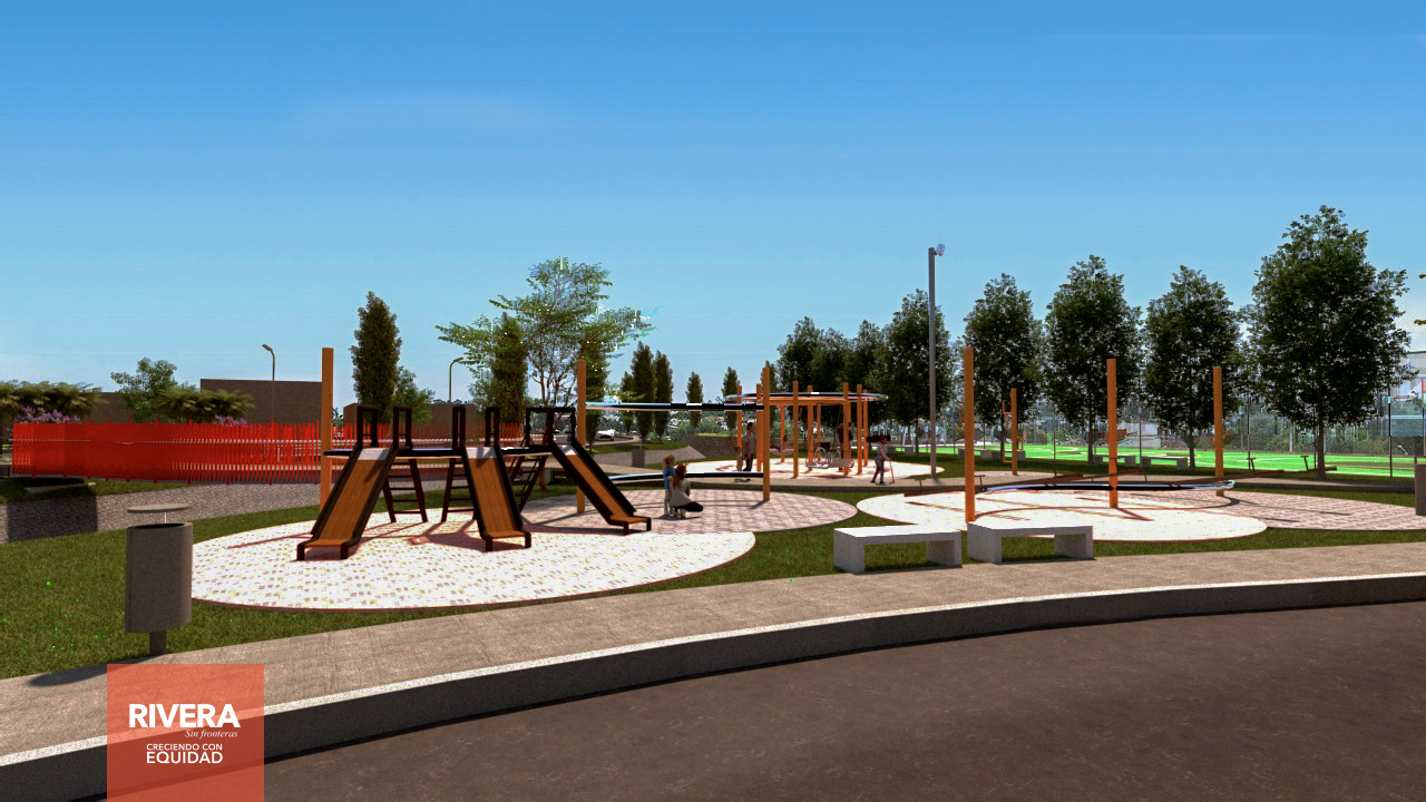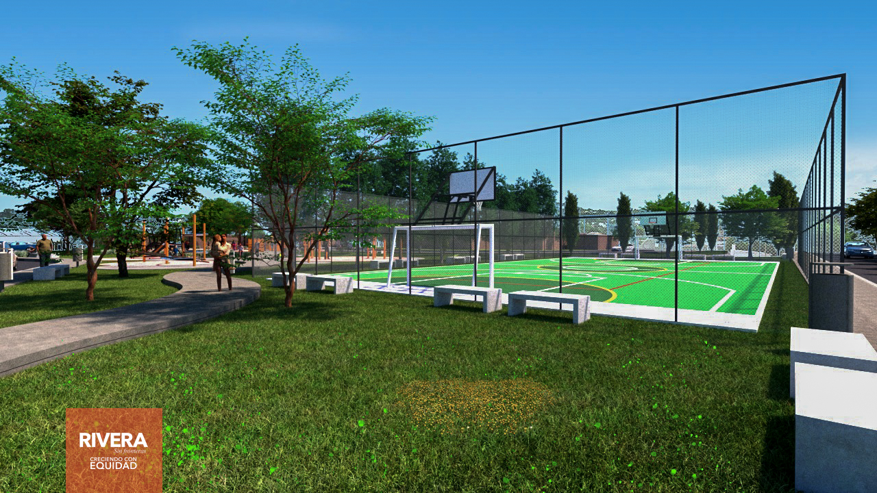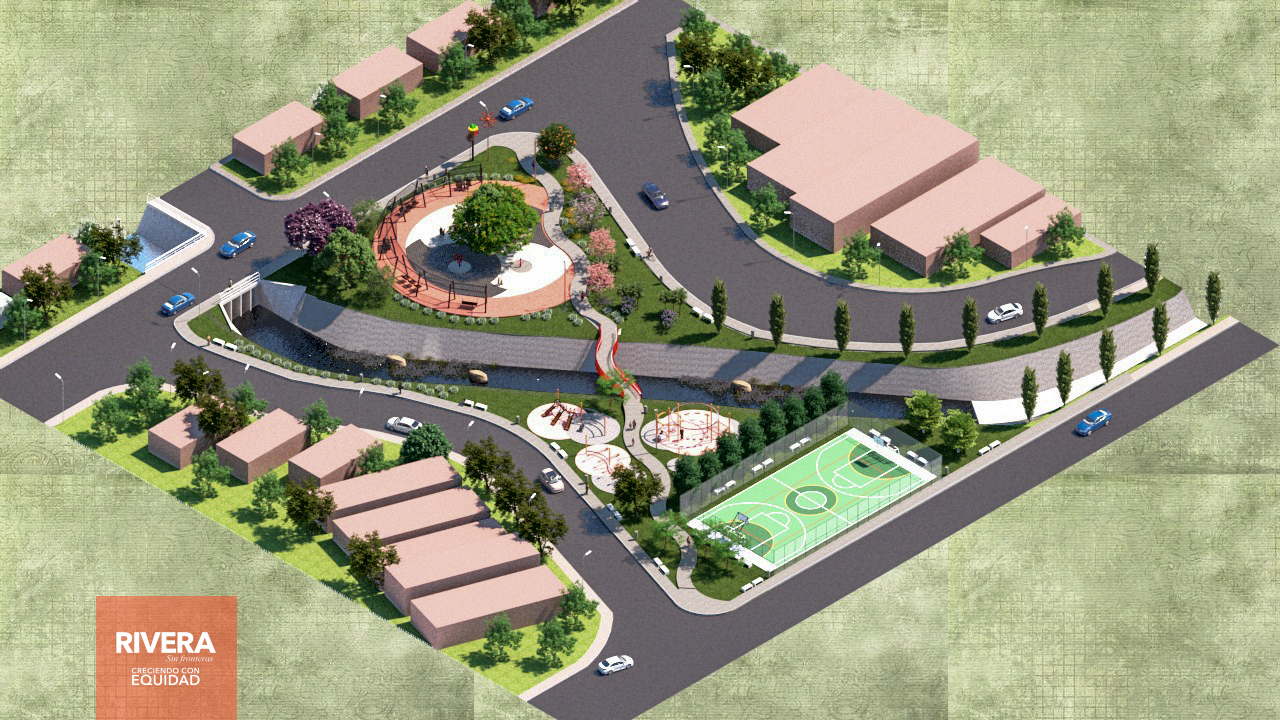 En la mañana de hoy el intendente de Rivera, Cr. Richard Sander Darín, acompañado por el secretario general de la IDR, Arq. José Mazzoni Gollardía, el director general de Obras, Arq. Martín García y la Arq. María Eugenia Romero, presentó oficialmente el Proyecto “Plaza Bernardino Freitas”, de la Zona Este de la ciudad.