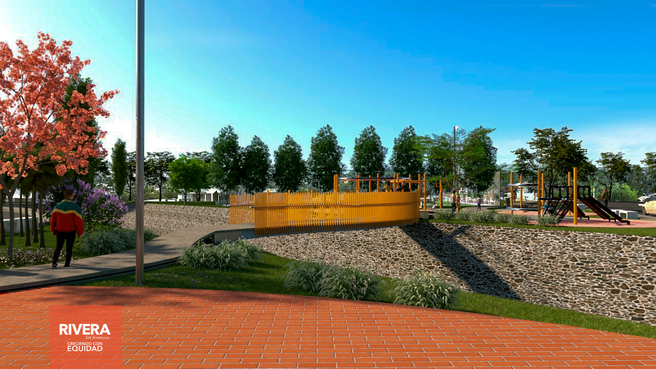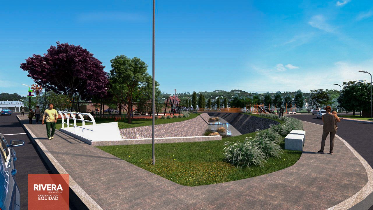 García detalló sobre el equipamiento, caminería, áreas verdes con jardines y nuevos árboles. Nueva iluminación y un puente serán un símbolo de este proyecto que encara la Intendencia de Rivera en ese importante punto de la ciudad.