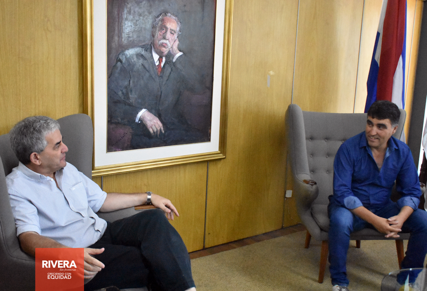 El intendente interino de Rivera Arq. José Mazzoni Gollardía recibió en su despacho al intendente de Salto Andrés Lima.