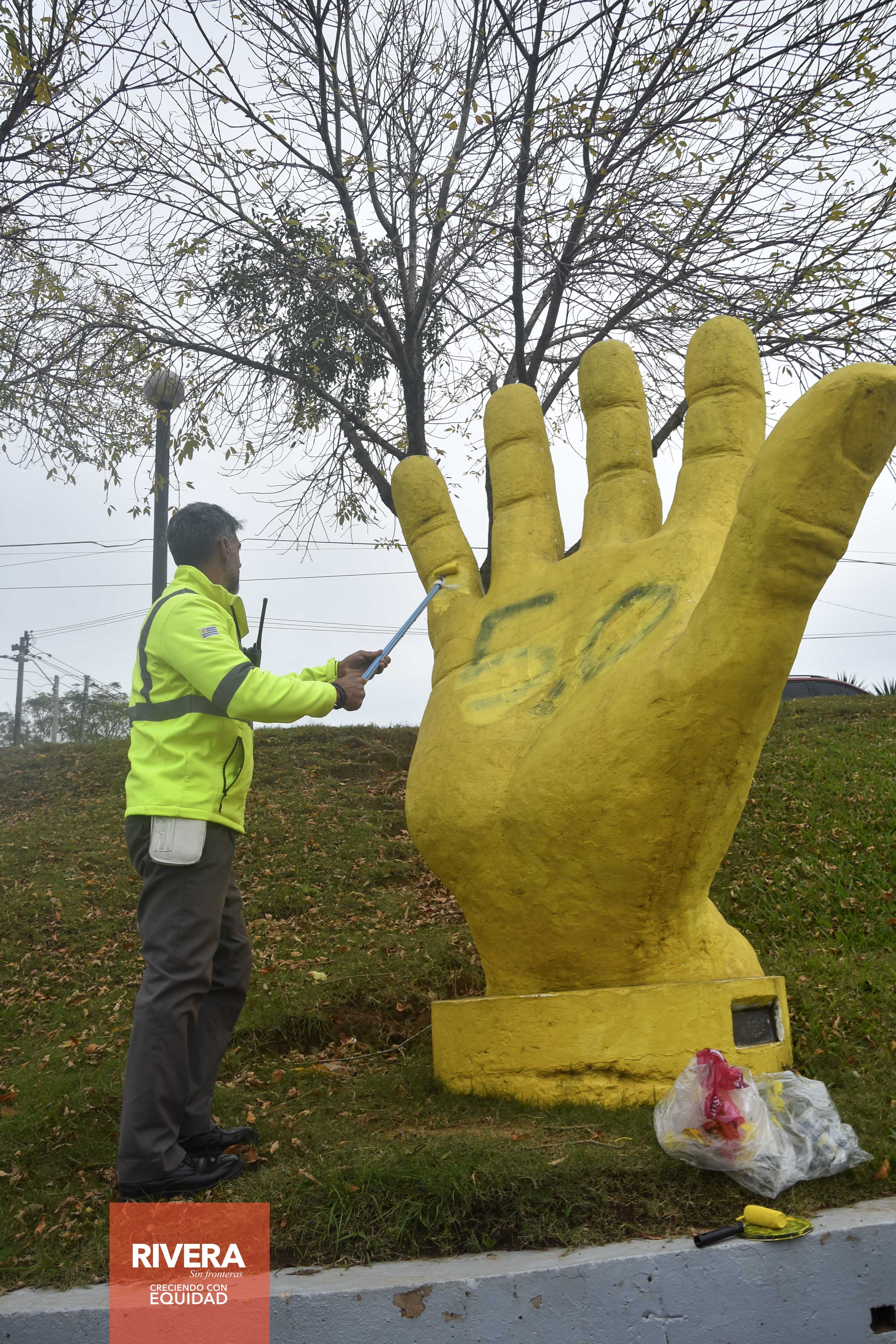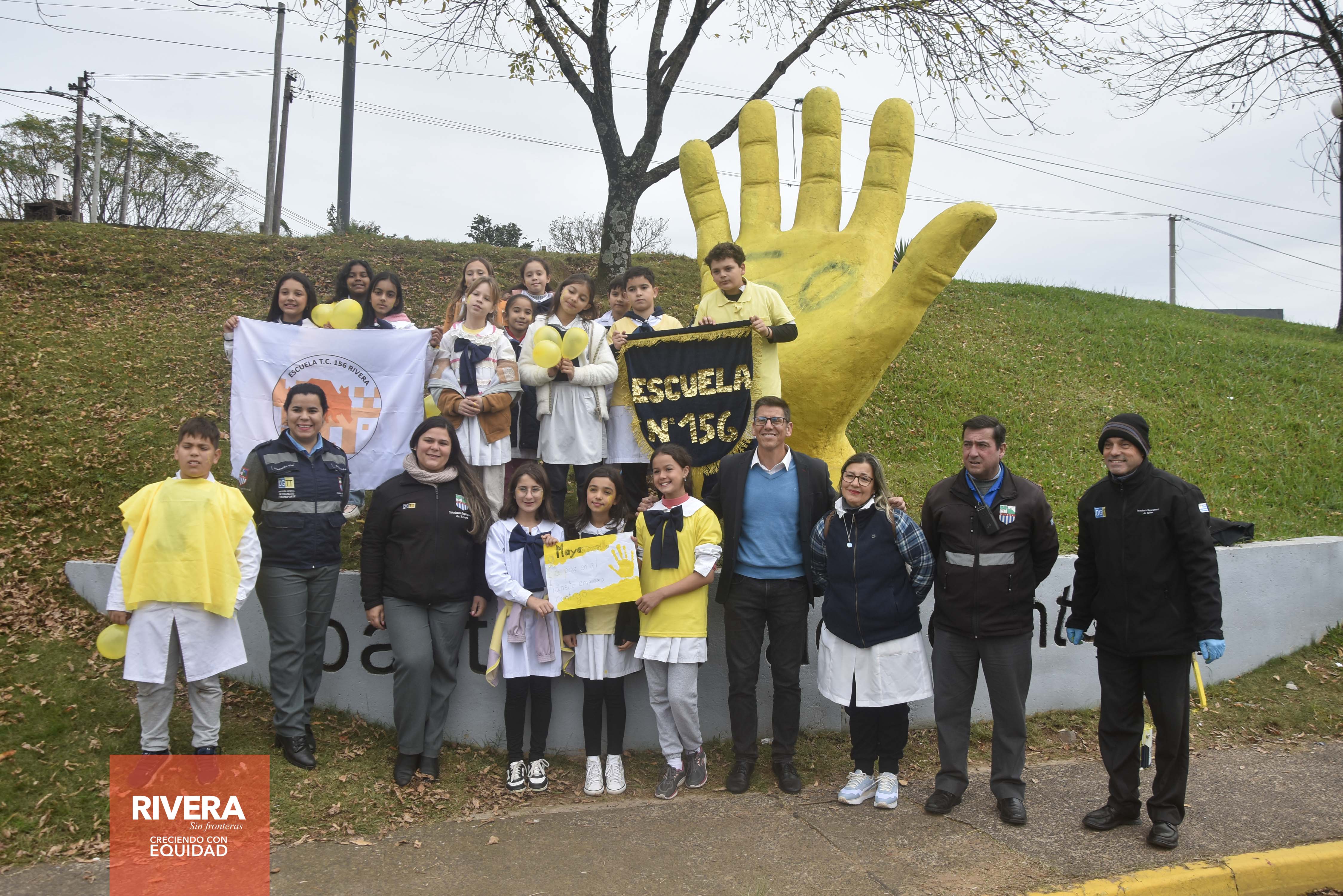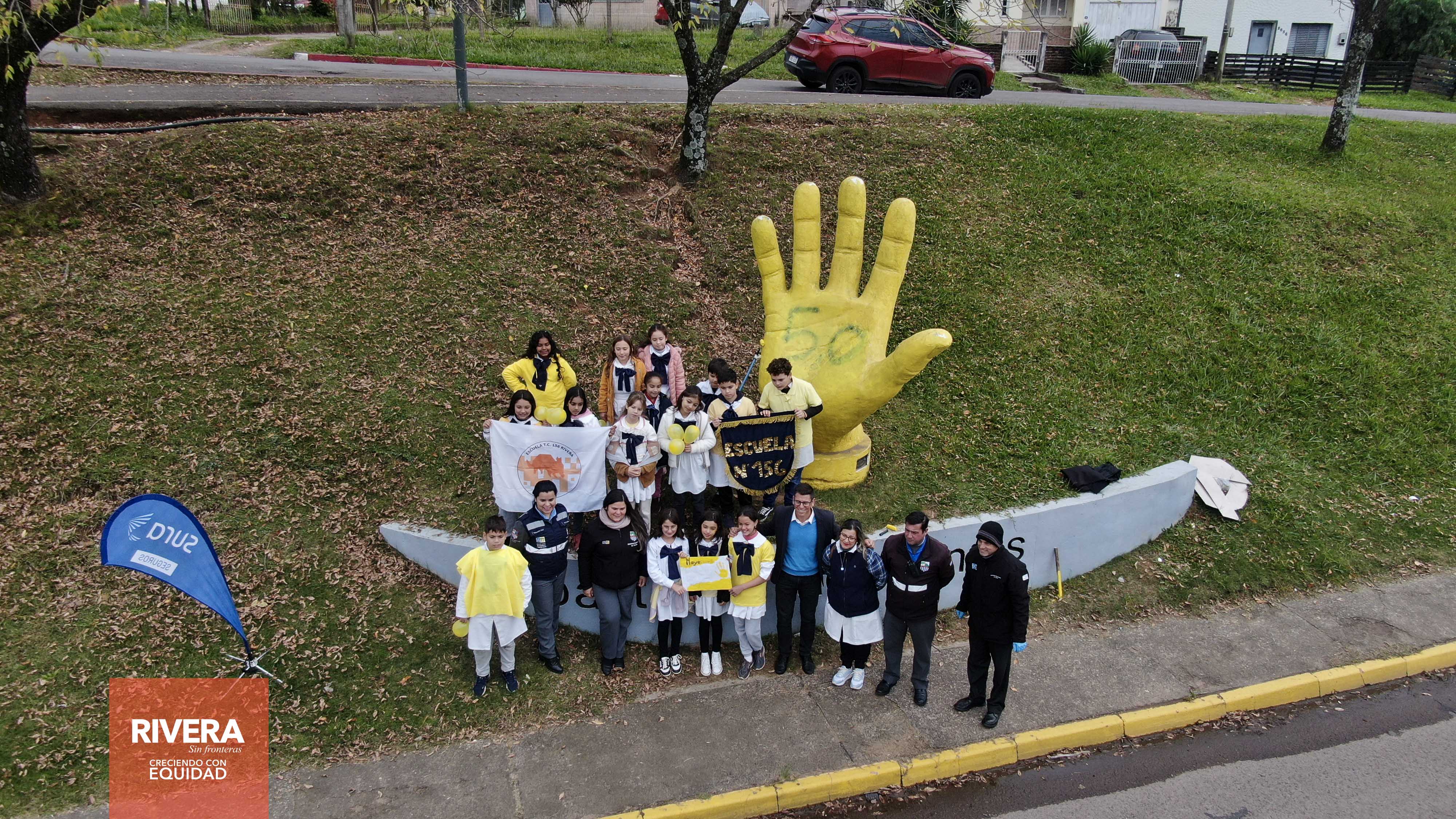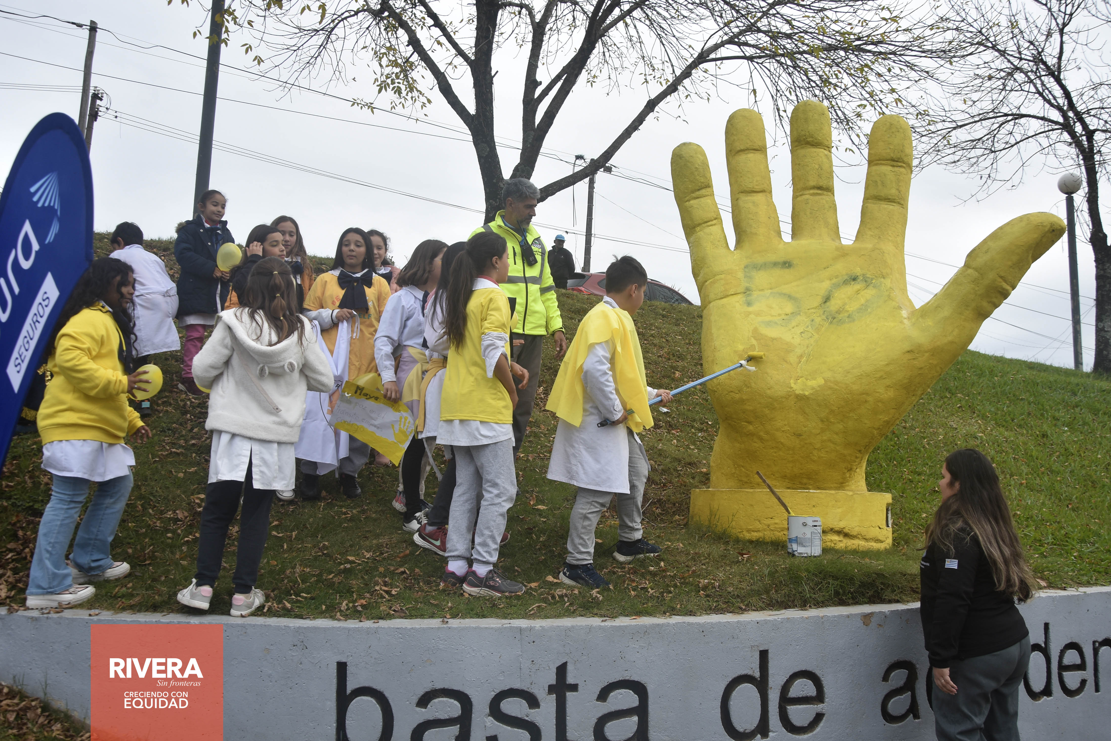 En horas de la mañana de éste jueves 16 de mayo, alumnos y docentes de la escuela Nº 156 de barrio La Virgencita, autoridades de la Dirección General de Tránsito y de instituciones asociadas, pintaron un lazo amarillo en el pavimento de la entrada para buses que se ubica cerca del empalme de Rutas Nº 5 y Nº 27 y seguidamente pintaron el monumento a la mano que lleva la frase “Basta de Accidentes” instalado en la misma zona a la entrada de la ciudad.Las actividades relacionadas a la prevención de siniestros de tránsito, se realizan en la ciudad y en las alcaldías durante el mes de mayo. Para el día sábado 18 está previsto un ciclo-paseo con salida hora 09.00 desde plaza Artigas. El domingo 19 (si el tiempo lo permite), a la hora 09.00 habrá una competencia ciclística con circuito por calle Manuel Oribe.