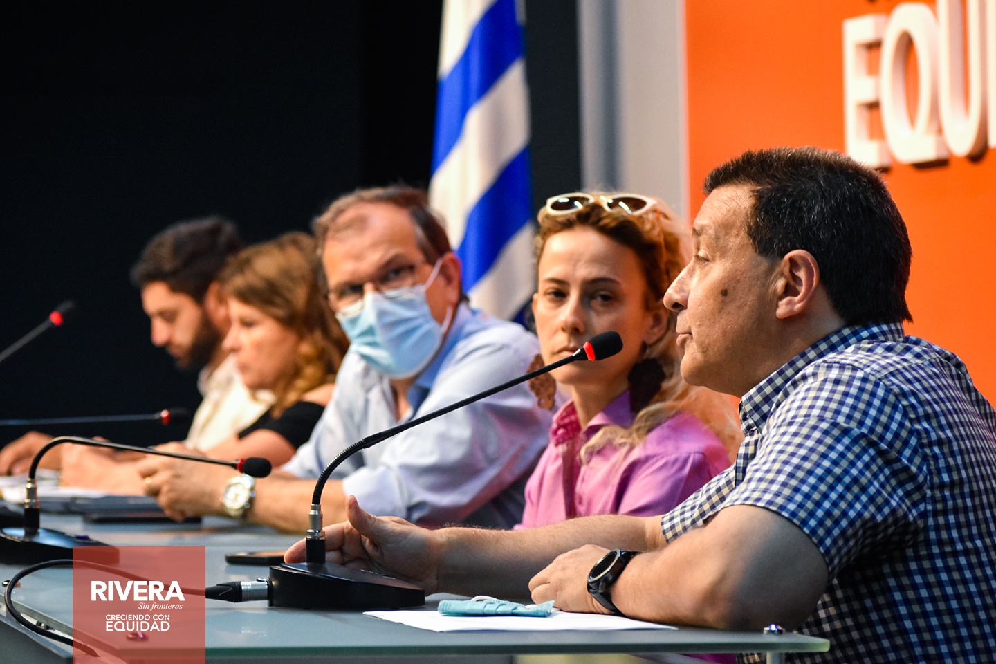 El director general de Desarrollo y Medio Ambiente de la Intendencia Departamental de Rivera, Q.F. Alejandro Bertón, informa sobre el proyecto en ejecución, en una jornada donde se presentaron los equipos que trabajaran en la creación de la agenda urbana.