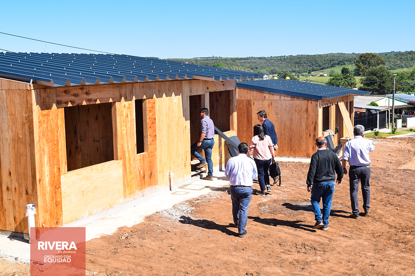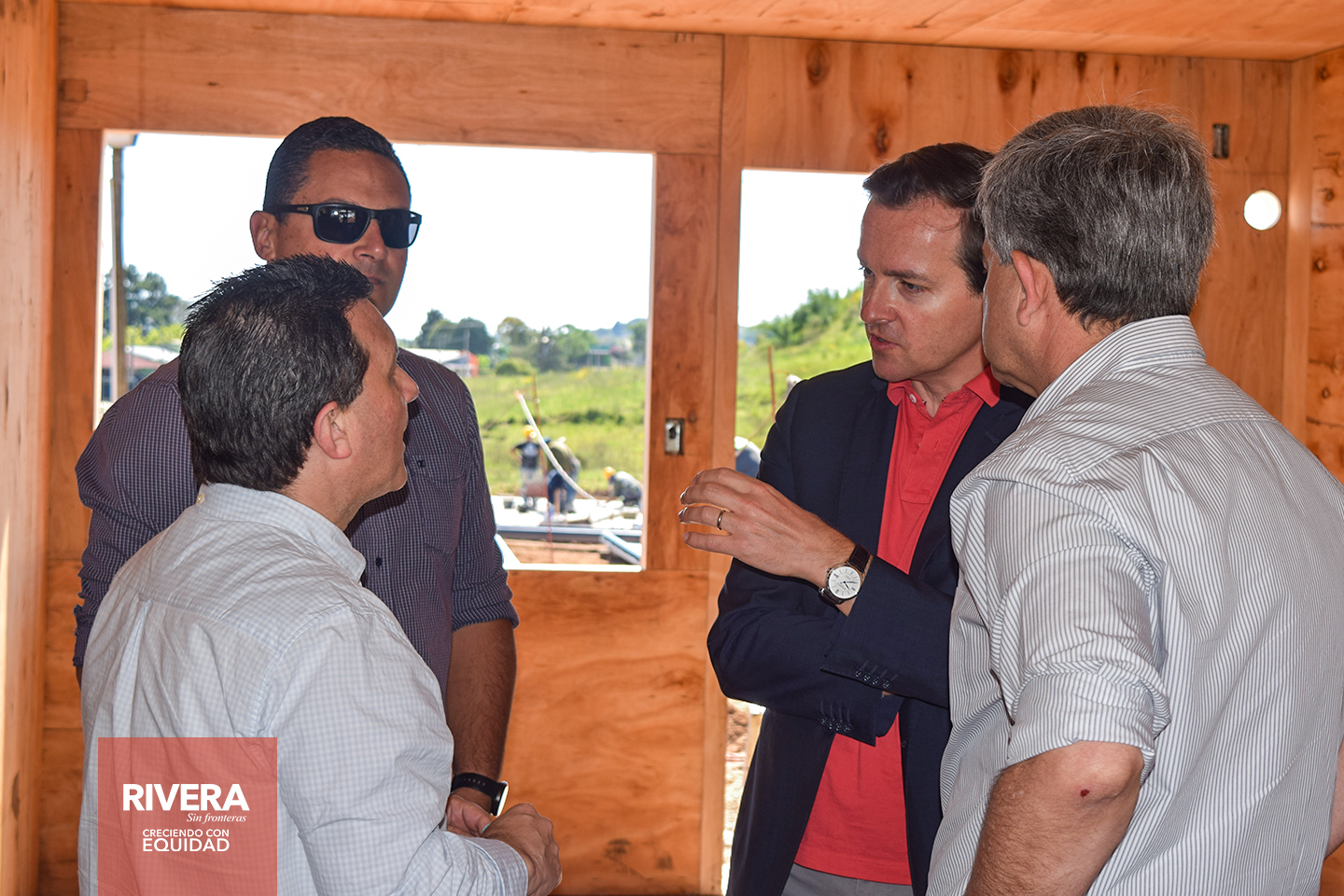 El viernes 22 de octubre, el secretario general de la Intendencia de Rivera, Arq. José Mazzoni, junto a los directores generales de Obras y de Desarrollo y Medio Ambiente, visitaron las obras de construcción de viviendas de madera en barrio Progreso, proyecto que lleva adelante la Intendencia y Mevir. Los acompañaron desde la Unión Europea, el jefe de la sección Económica y Comercial, Damian Kaminski, y la asesora Económica y Comercial, Sra. Carolina Gervaz.