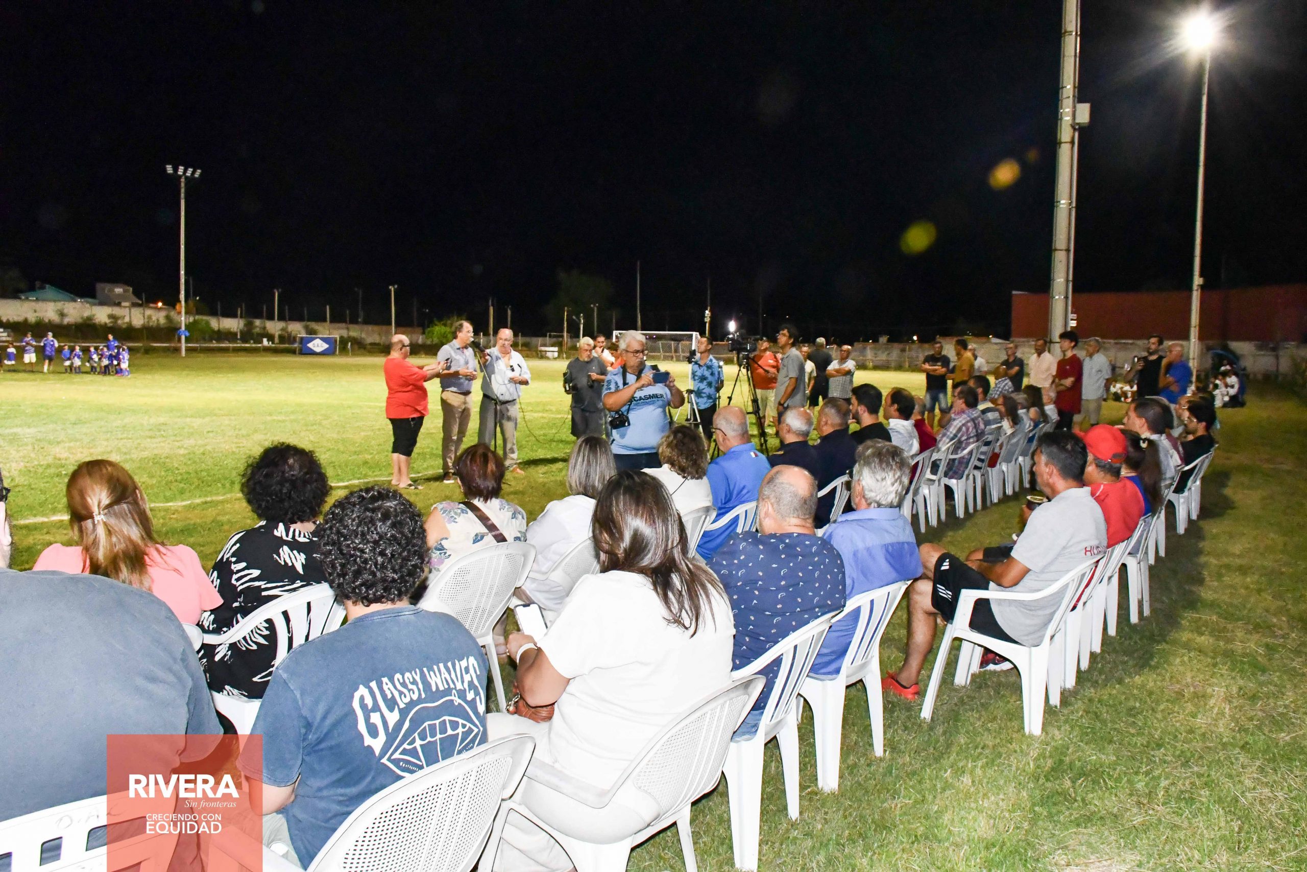 “Con el sueño de poder apoyar el enorme esfuerzo que hacen los dirigentes, que hace la familia dedicada al club, que le ponen horas, plata del bolsillo que le ponen el esfuerzo, muchas décadas, y desde la intendencia donde manejamos la plata de todos los riverenses decíamos – como podemos ayudar a los clubes-” manifestó Sander quien recalcó que “en un par de días seguimos lo mismo con la cancha de Huracán..hoy es un día de felicidad” .