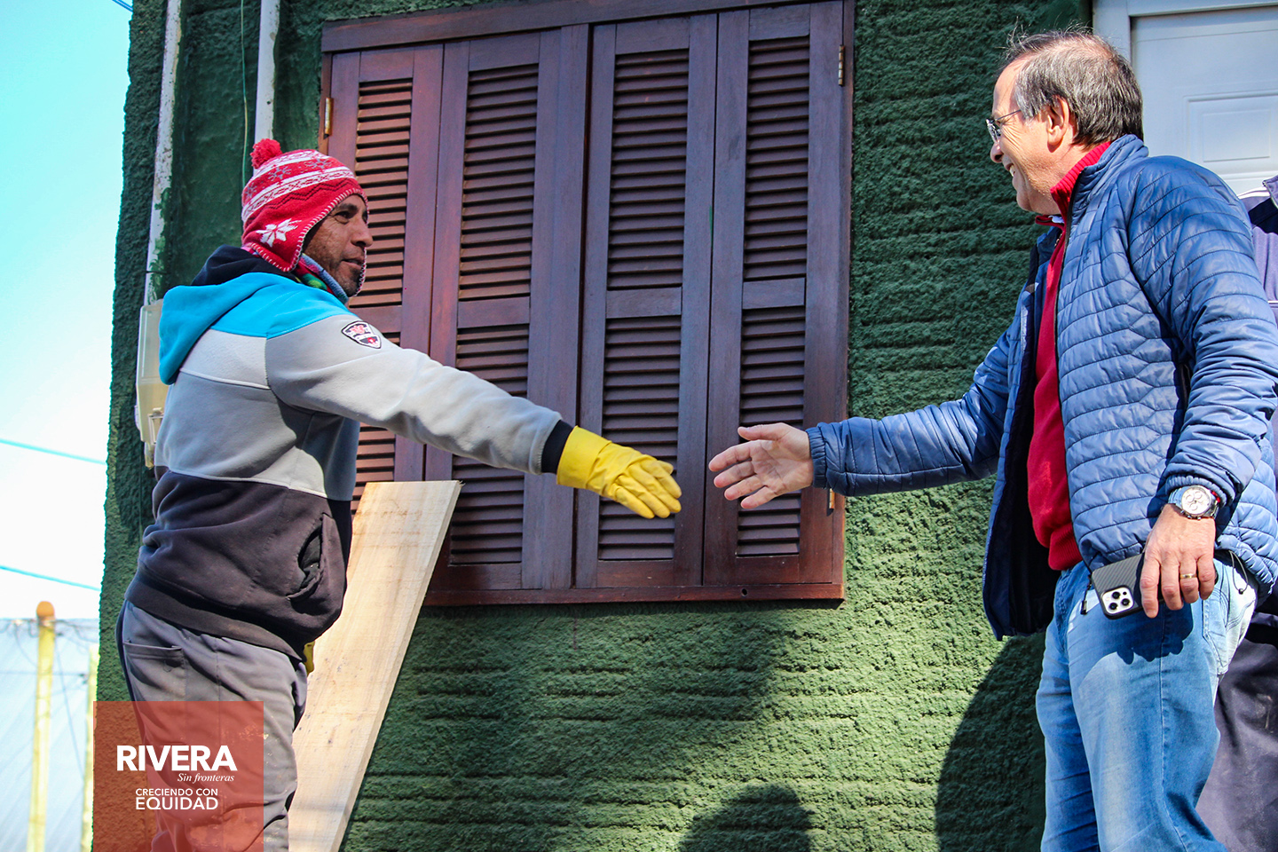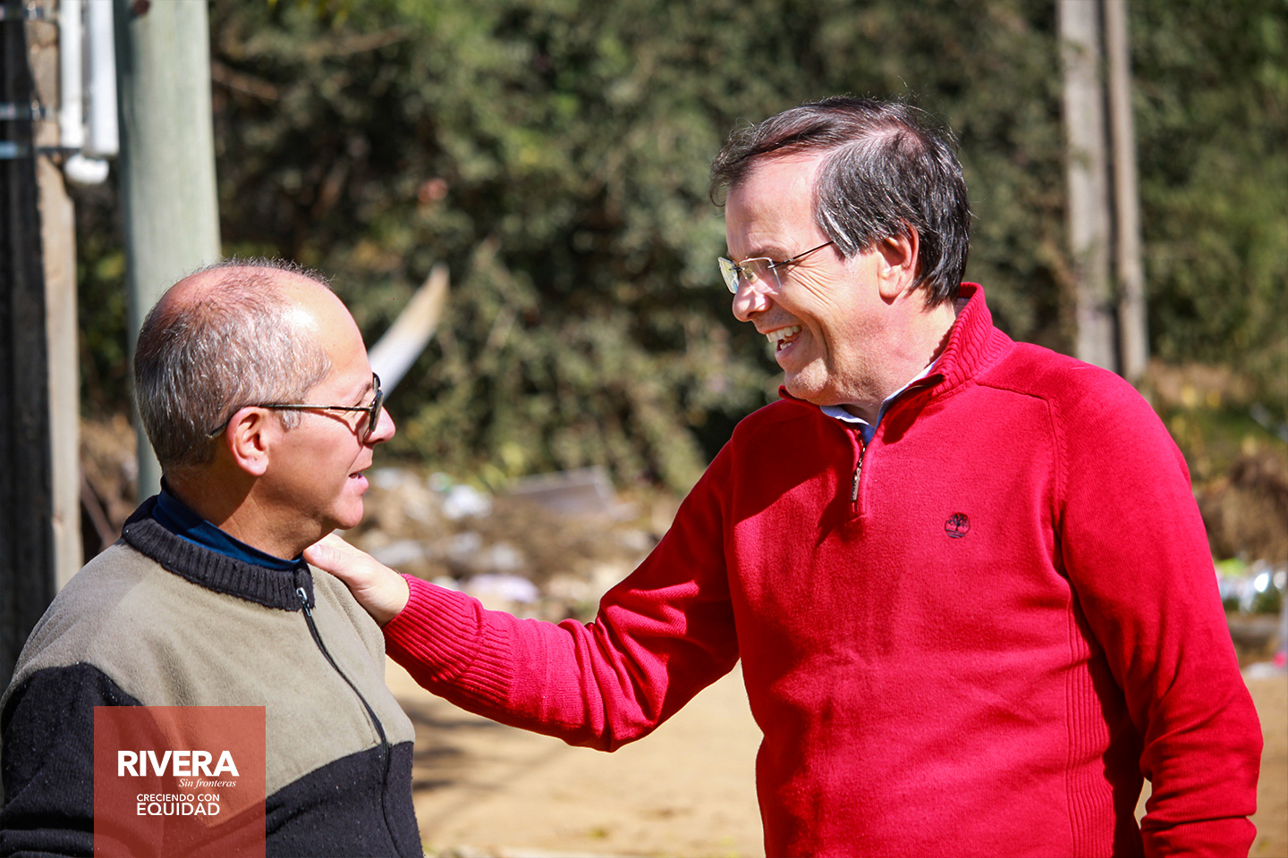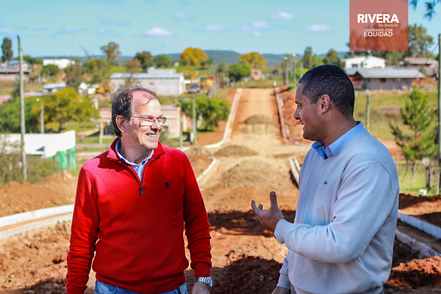 En horas de la mañana del jueves 12 de mayo, el intendente departamental de Rivera, Cr. Richard Sander Darín, recorrió las obras en barrio Recreo, al oeste de la ciudad de Rivera, junto al director general de Obras Arq. Martín García.