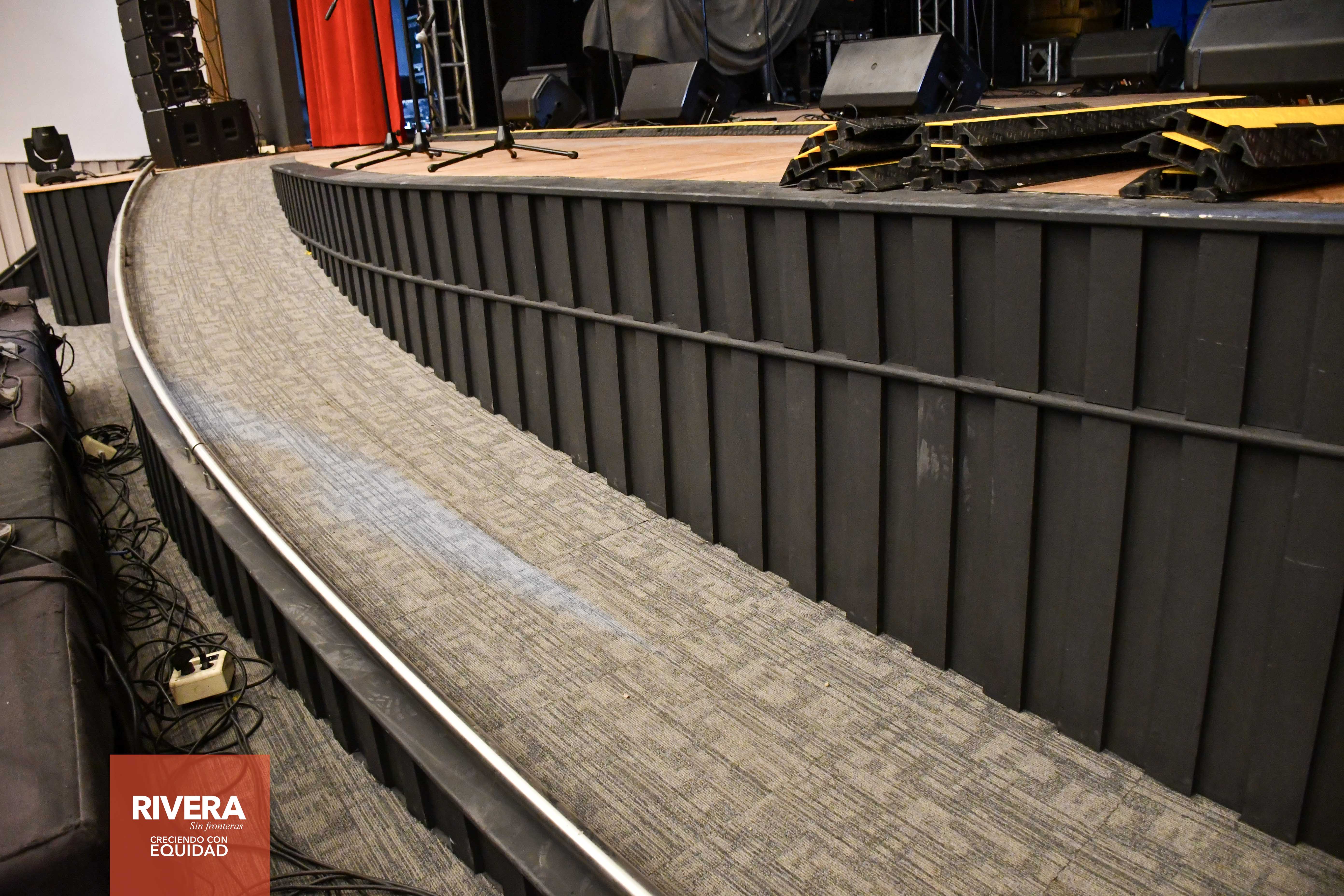El escenario fue equipado con nuevas cortinas ignífugas, pintura adaptada a requerimientos técnicos y piso de madera de excelente calidad.