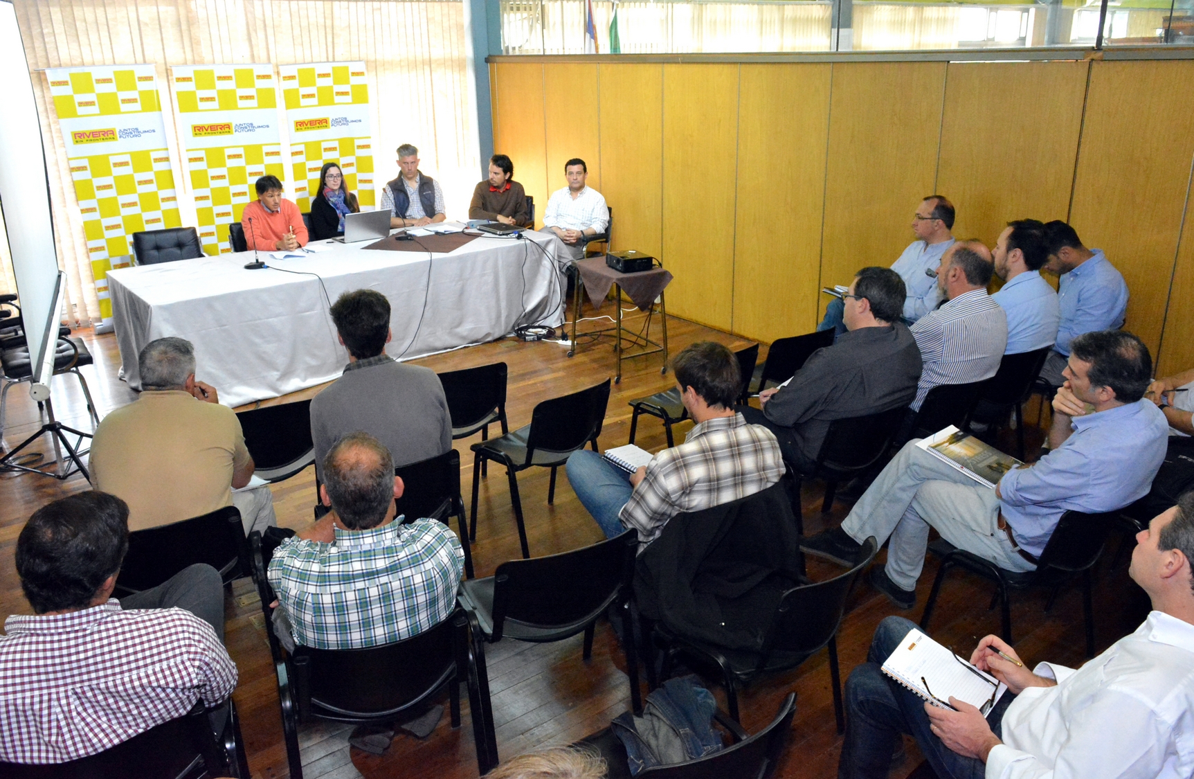 El martes 7 de octubre se realizó en Sala de Conferencias de la Intendencia Departamental de Rivera, una reunión de interés departamental, donde participaron el Director General de Desarrollo y Medio Ambiente QF. Alejandro Bertón, con empresas interesadas de llevar adelante la construcción y/o operación o la construcción solamente, del nuevo sitio de disposición final, que es un proceso de licitación internacional que se estará dilucidando, en el mes de diciembre.