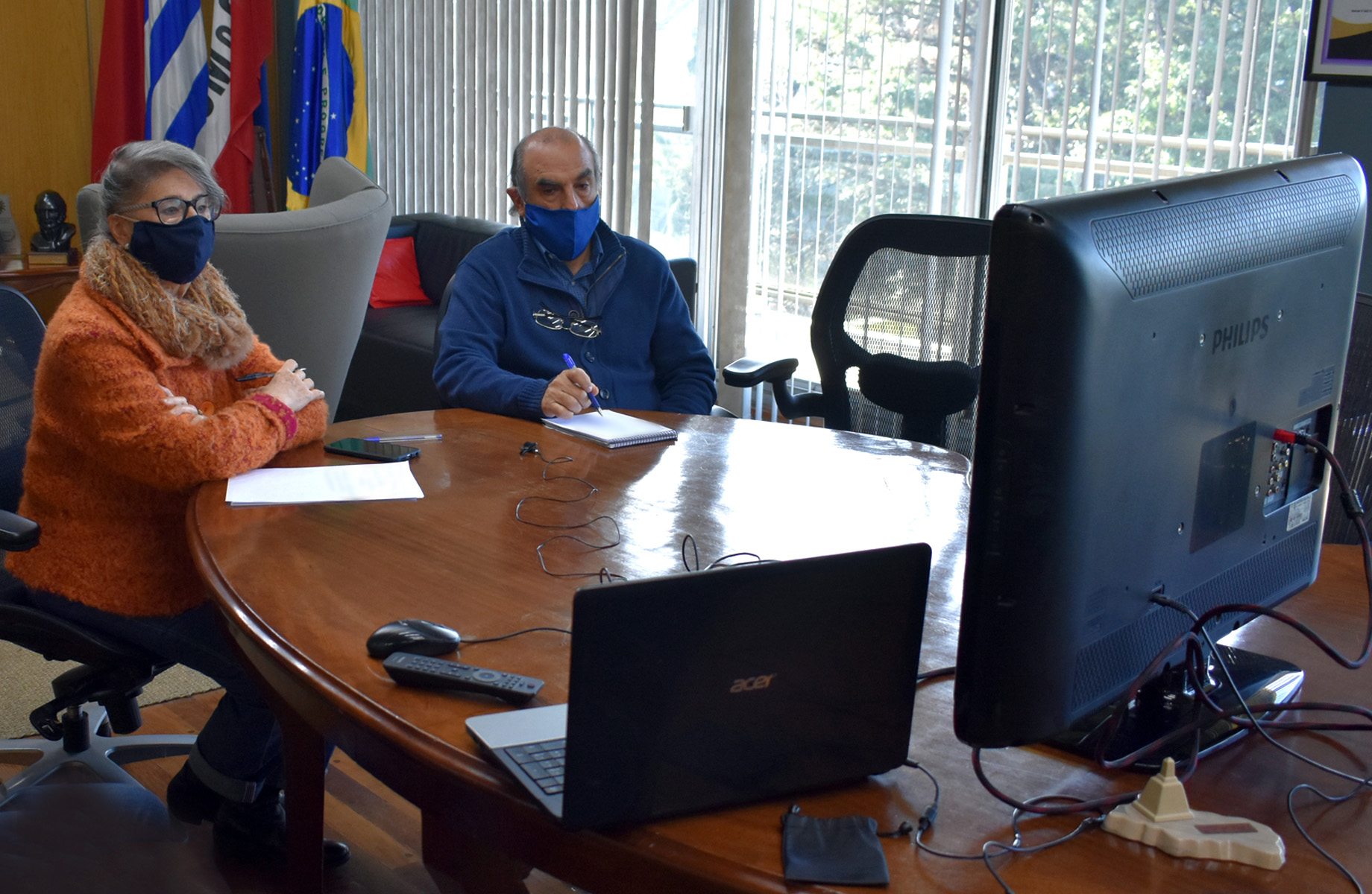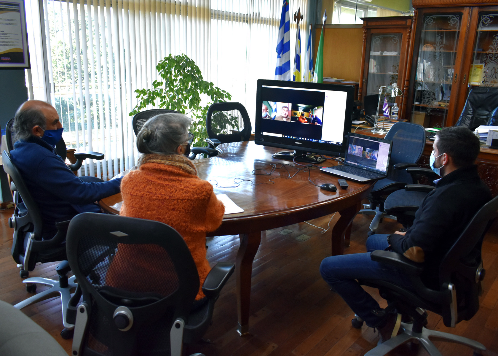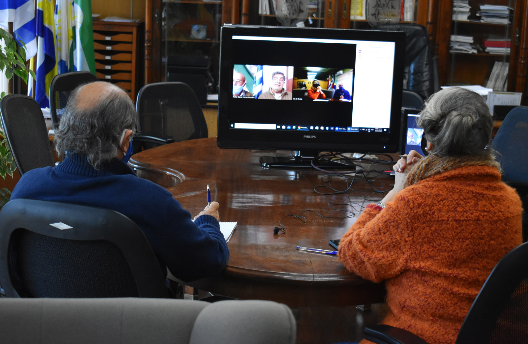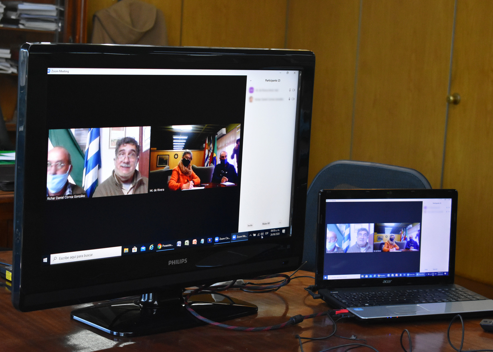 A través de una plataforma digital, la intendente Departamental de Rivera, Alma Galup Migliarini, y el pro secretario de la IDR, Esc. Nelson Gutiérrez, mantuvieron una muy productiva reunión de trabajo con el equipo de la Alcaldía de Minas de Corrales, en la mañana de hoy.