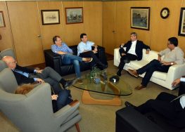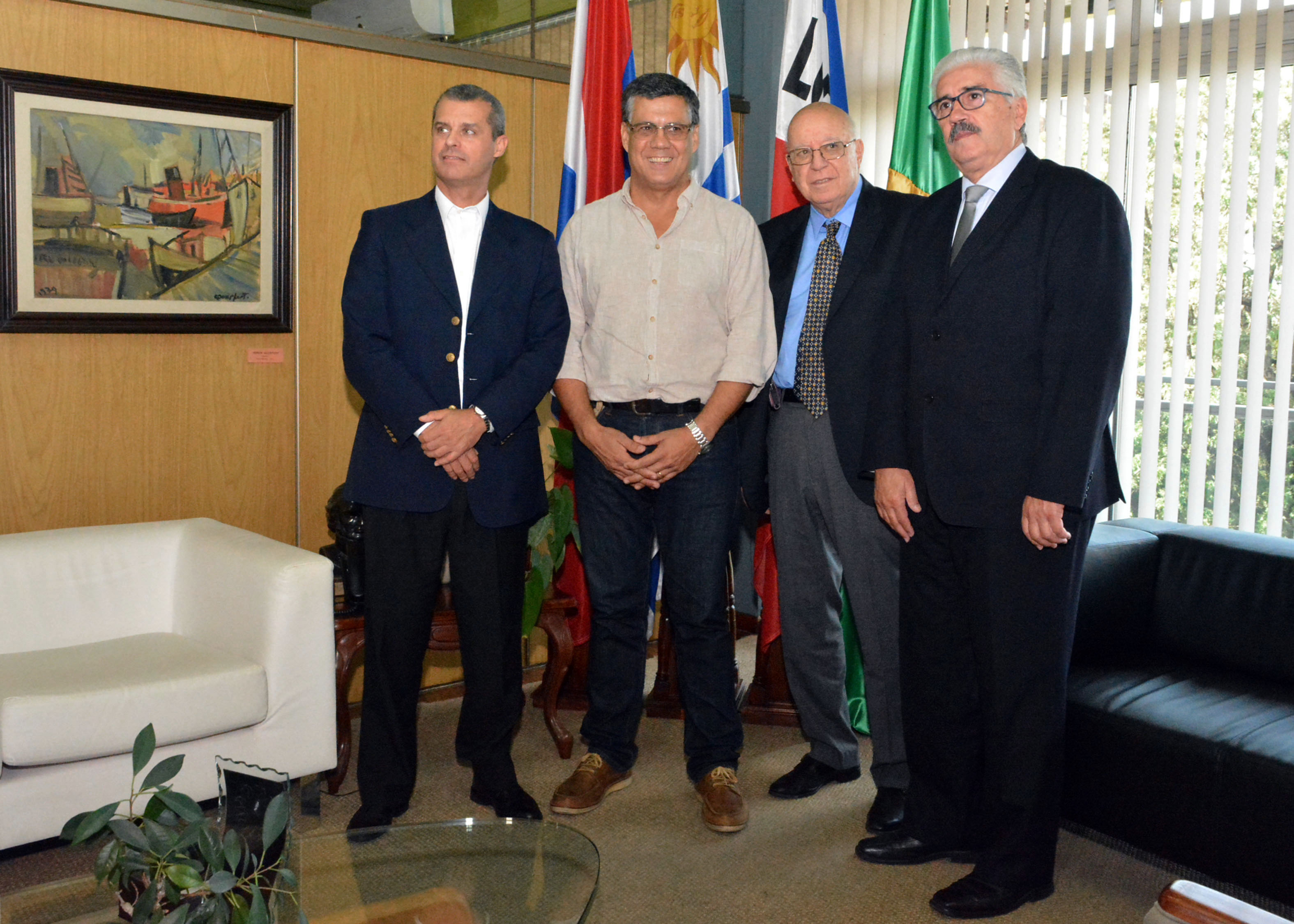 El intendente departamental de Rivera, Dr. Marne Osorio Lima, junto al gran Maestro de la Masonería del Uruguay, Dr. José Garchitorena y el titular de la empresa forestadora, FYMNSA, Lorenzo Balerio, se reunieron en el despacho del mandatario para abordar temas de necesidad para el departamento.