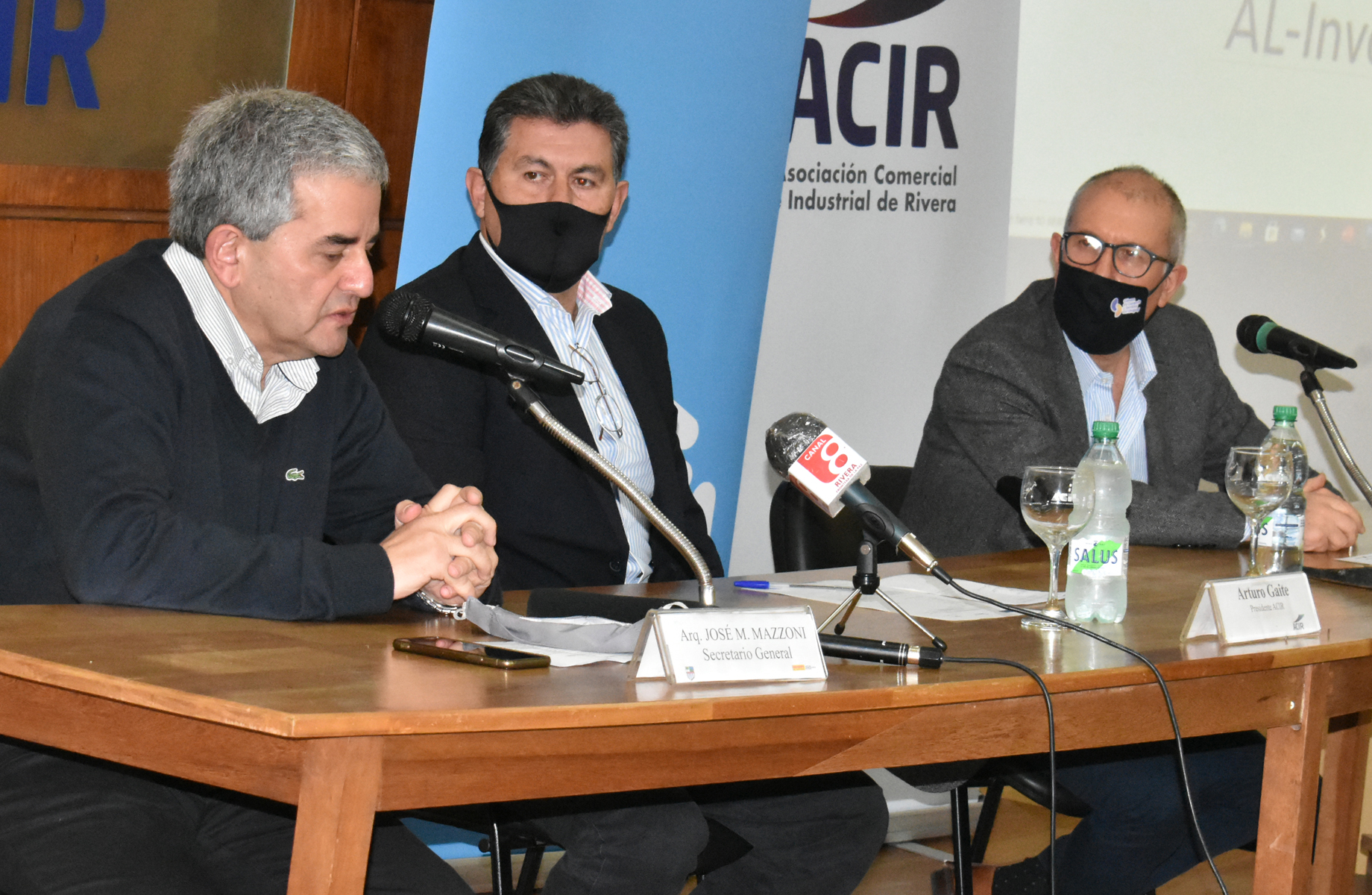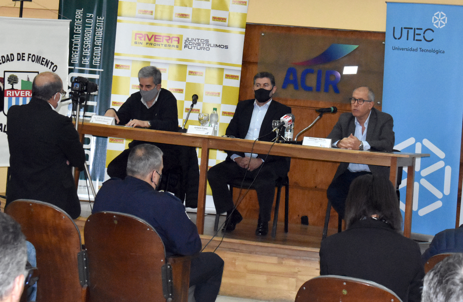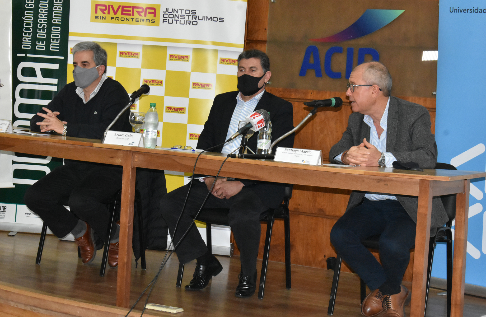 El secretario general de la intendencia departamental de Rivera, Arq. José Mazzoni Gollardía, estuvo presente y formó parte de la mesa, junto al presidente de ACIR, Arturo Gaite y Santiago Macció, representando a la Cámara nacional de comercio y servicios del Uruguay.