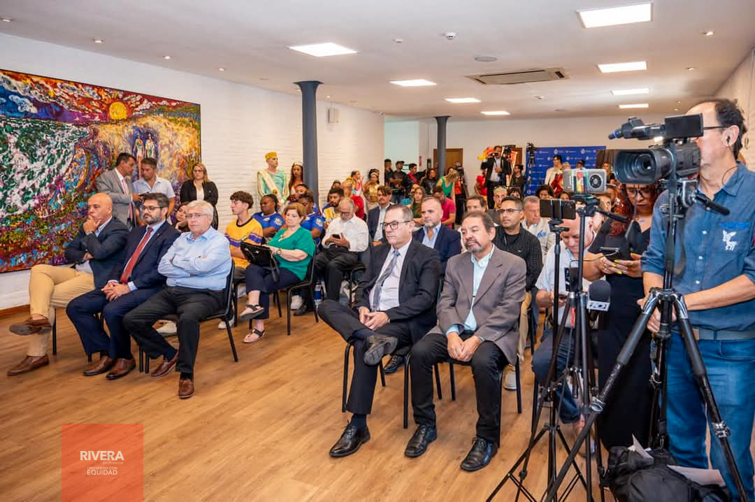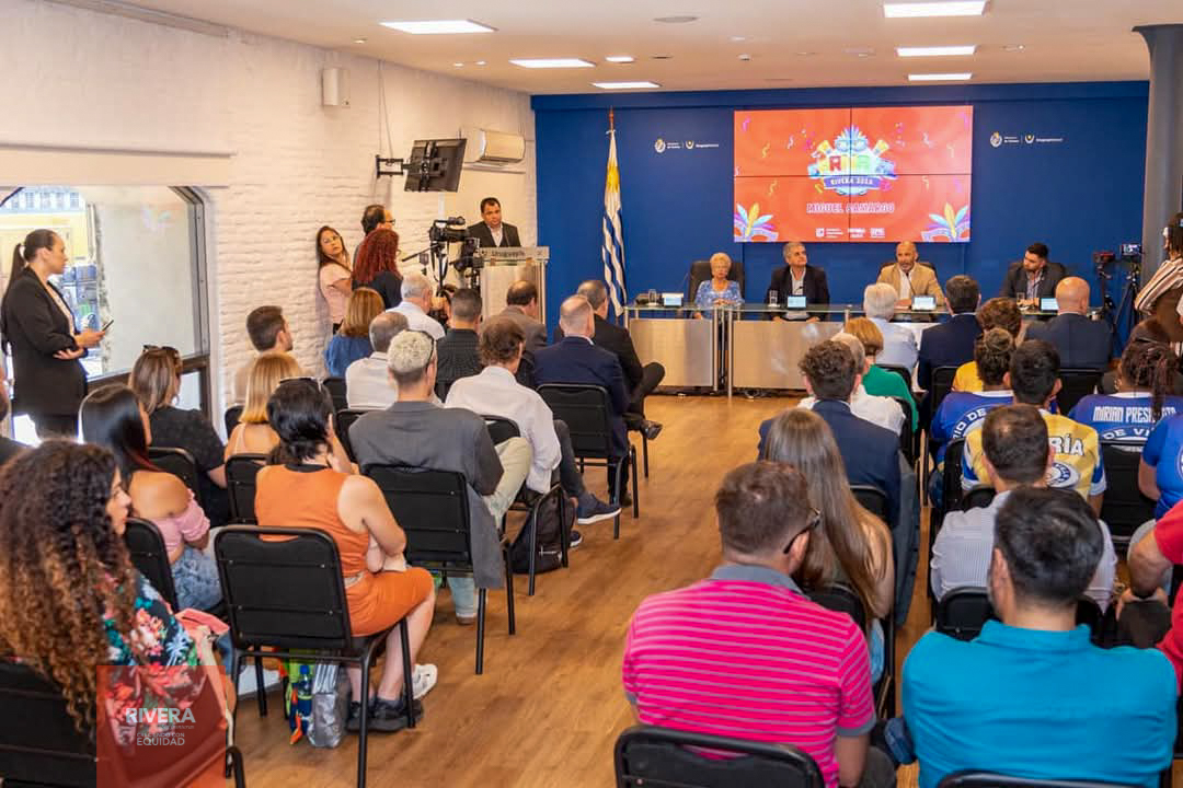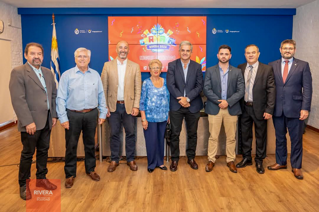 En la sede del Ministerio de Turismo se procedió a la presentación nacional del Carnaval de Rivera 2025, instancia que tuvo como anfitrión al Dr. Eduardo Sanguinetti, titular de la Secretaría de Estado, junto al Intendente Departamental de Rivera, Arq. José Mazzoni Gollardía; al Director de Turismo (IDR) Jean Celaya Alves; la Presidente de la Comisión de Carnaval, Sra. Yolanda Machado, integrando la mesa principal de la promoción de las características de la fiesta popular por excelencia.
