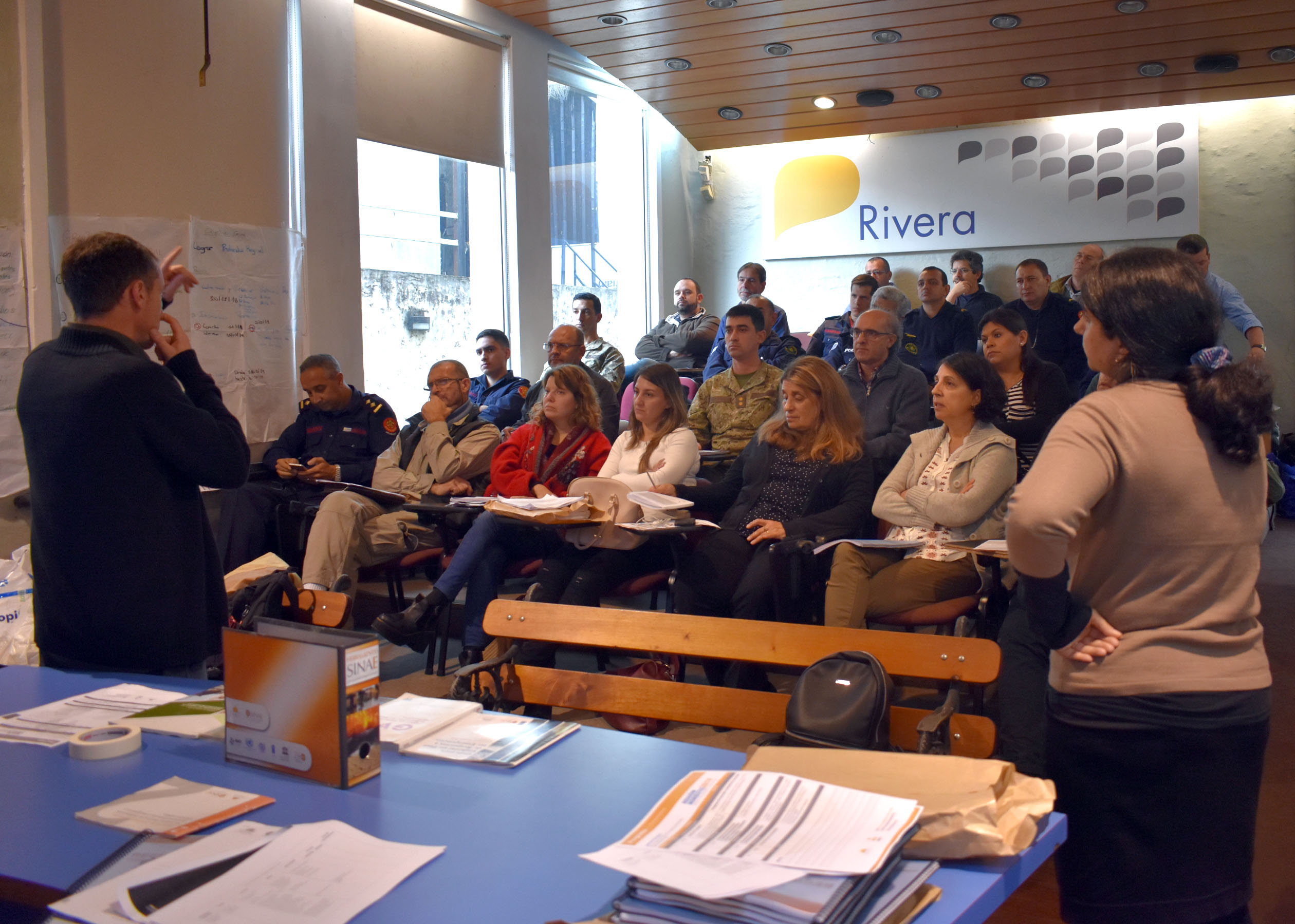 Estuvieron presentes referentes de instituciones públicas, policiales, militares y civiles, de Cerro Largo, Tacuarembó y Rivera, en el local de la Sala Cultural de Antel. En esta oportunidad, participó también, el dir. del Sistema Nacional de Emergencias (SINAE), Magister, Fernando Traversa.