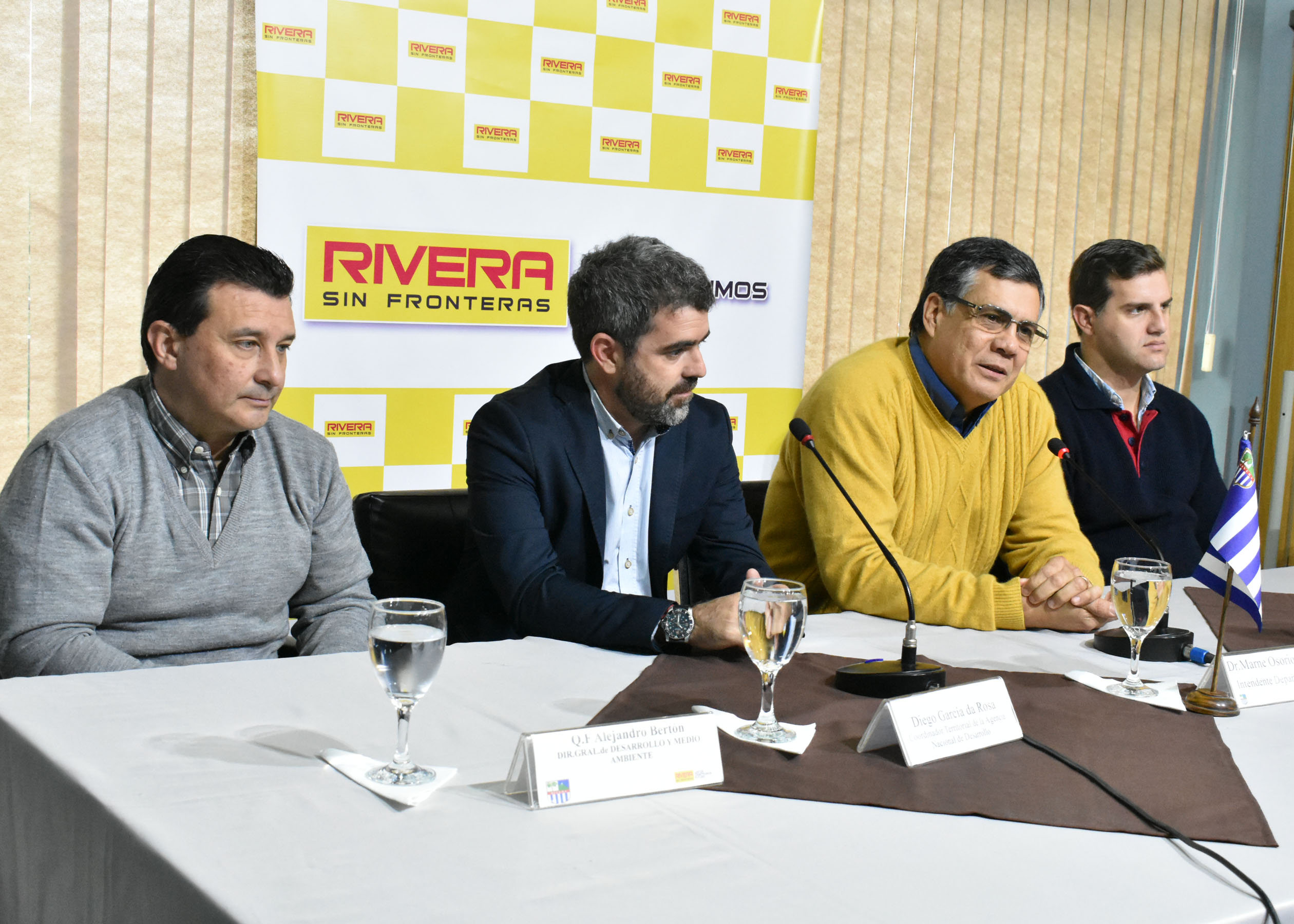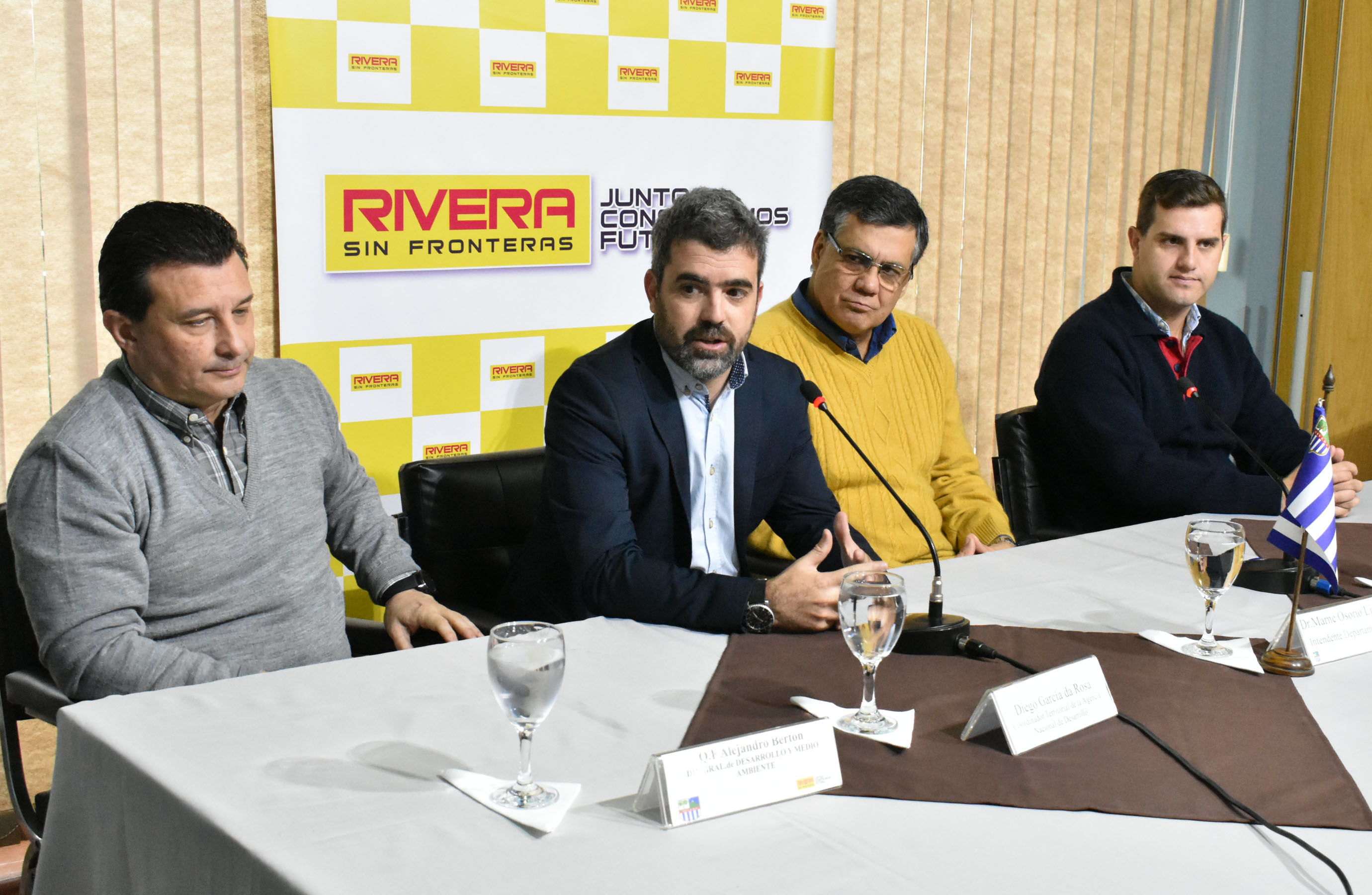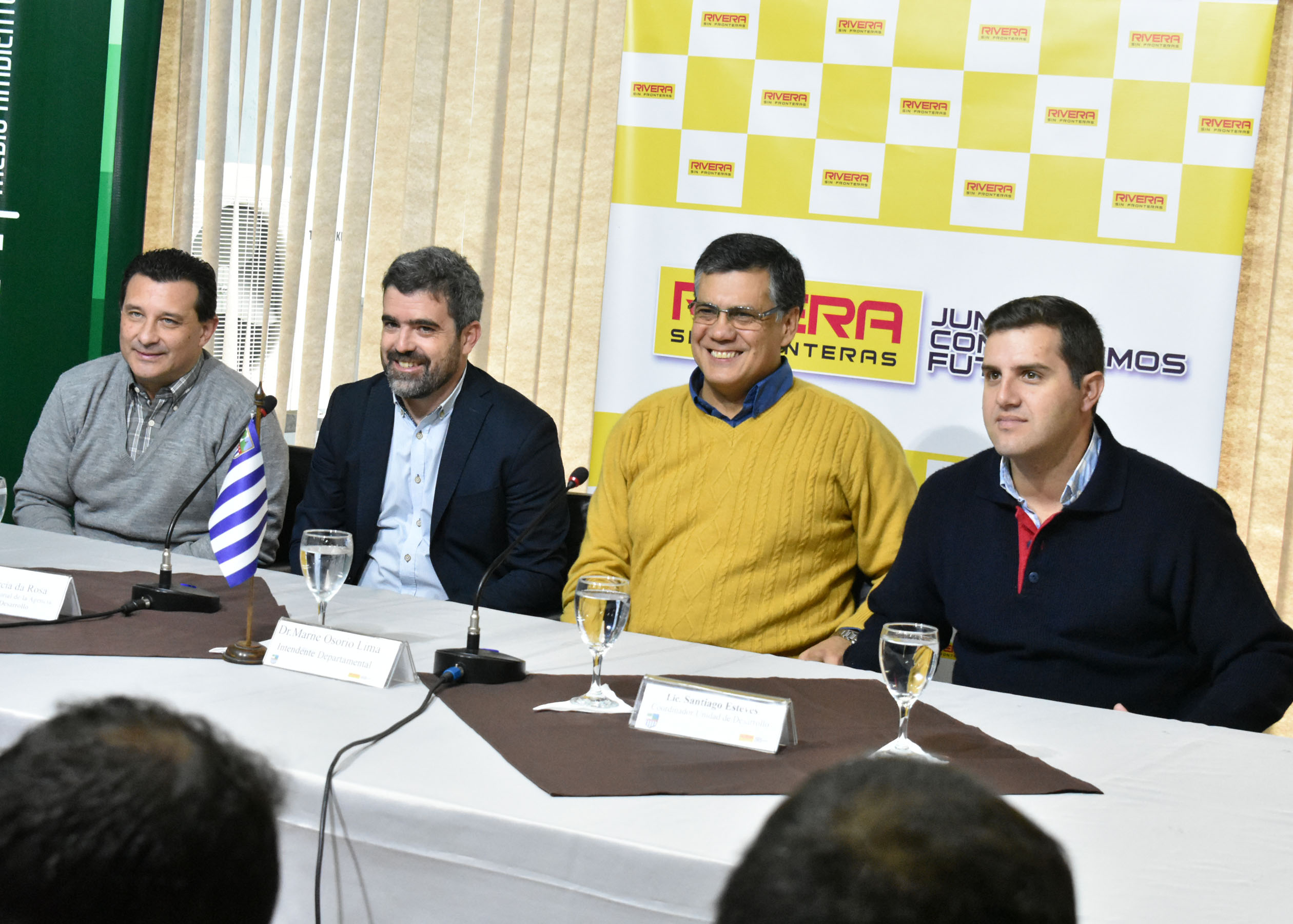 Estuvieron conformando la mesa, el Intendente Departamental de Rivera, Dr. Marne Osorio Lima, el Director General de Desarrollo y Medio Ambiente, Q.F Alejandro Bertón, el Director de la Unidad de Desarrollo, Lic. Santiago Esteves, y el Coordinador Territorial de la Agencia Nacional de Desarrollo , Diego García da Rosa.