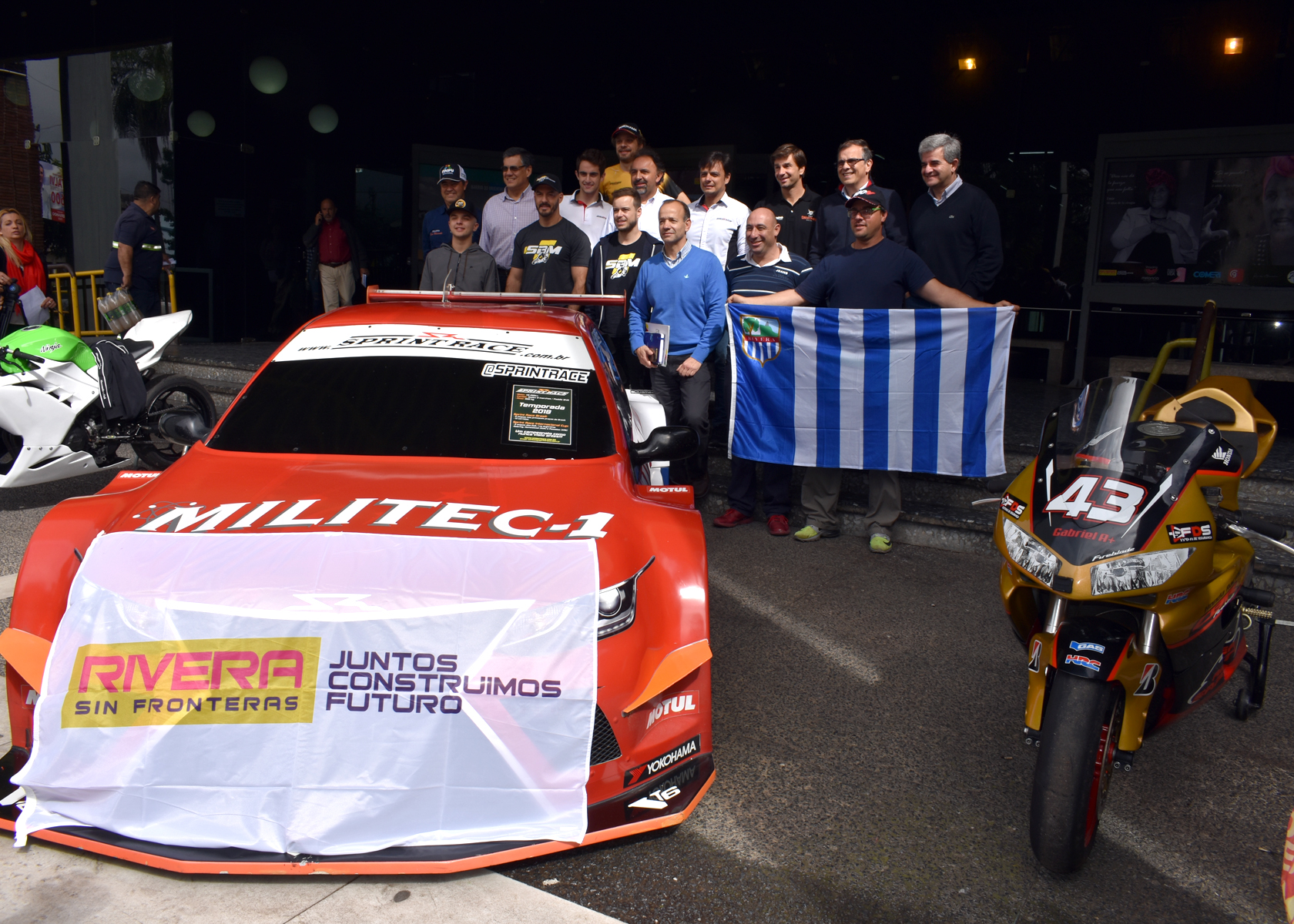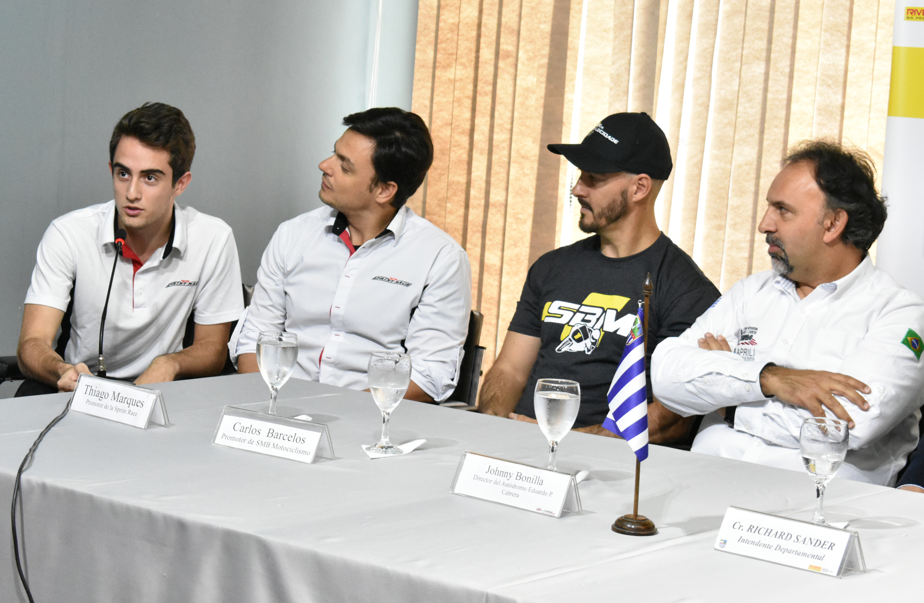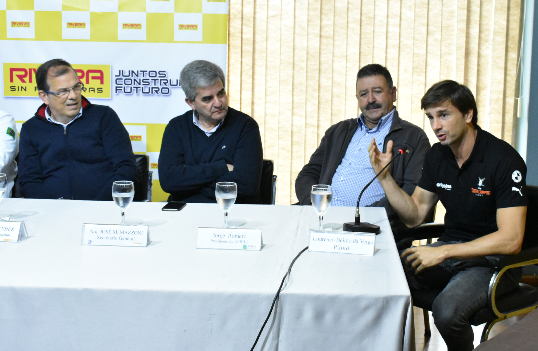 Conformaron la mesa junto al Intendente Departamental de Rivera, el secretario General de la IDR, Arq. José Mazzoni, el director del Autódromo Eduardo P. Cabrera, el presidente de la Asociación de Pilotos Rivera Livramento (APRILI), los Productores del campeonato Sul Brasileiro de Motociclismo y la SPRINT RACE; los pilotos Pedro López y Lourenço Beirao da Veiga.
