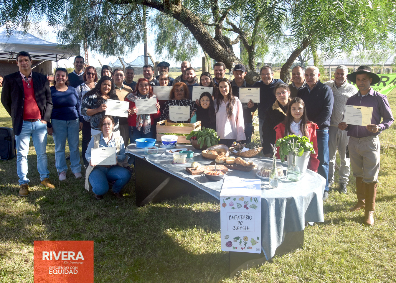 En el Polo de Desarrollo Rural de la IDR; con la presencia del intendente departamental de Rivera, Cr. Richard Sander Darín, el director general de Desarrollo y Medio Ambiente, Q.F Alejandro Bertón y los responsables del Proyecto Hortifrutícola, el coordinador Juan Ignacio dos Santos y la técnica Ing. Agr. Emilia González; entre otros, dieron por culminado el curso de Hortifrutícola con la entrega de certificados.